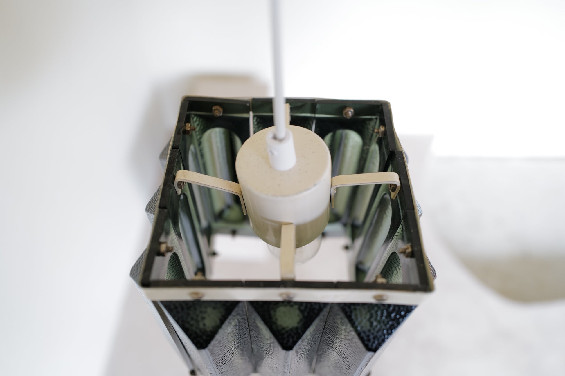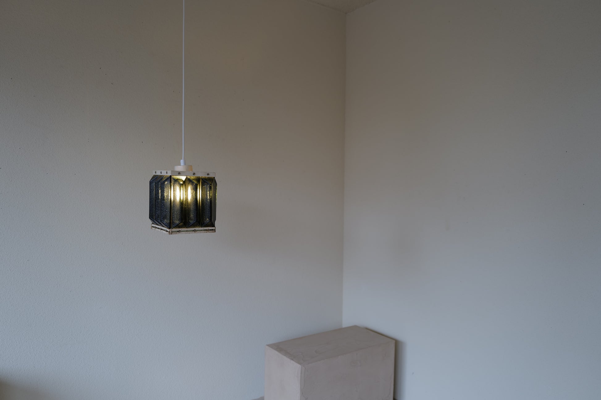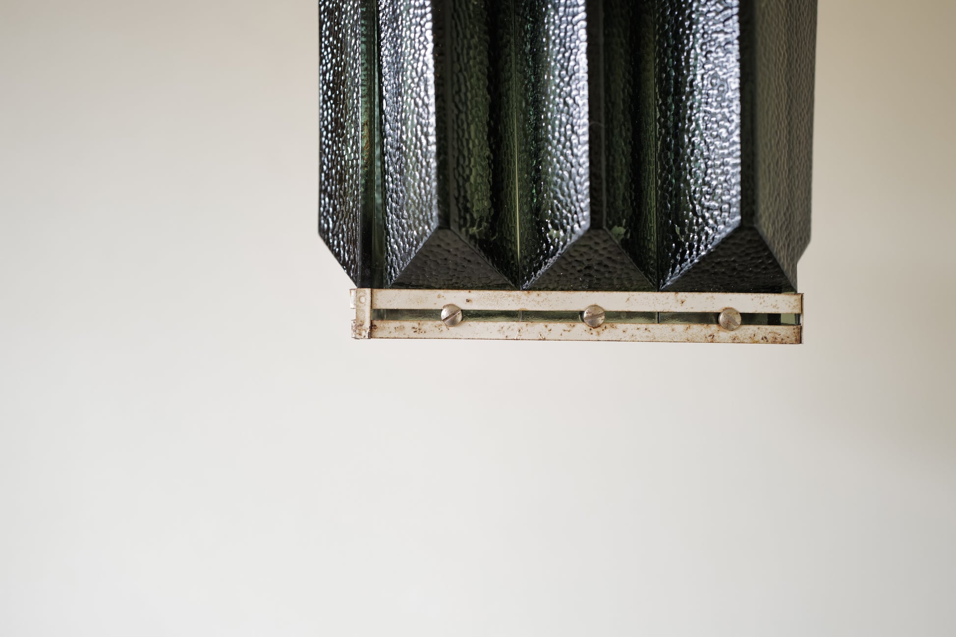 1960年代にスウェーデンで作られたスモークガラスランプ。消灯中は黒色に見えますが電気がつくと薄い緑色のガラスであることが確認できます。インダストリアルな雰囲気が漂う素敵な作品です。少し小さめなペンダントランプになります。大きなダメージはありませんが古い物になりますので錆や細かな傷等、多々ございます。ビンテージの風合いとしてとらえていただきたいものになります。ガラス製になりますので3kgくらいの重さがございます。コードの長さを短くさせて頂くことは可能です。