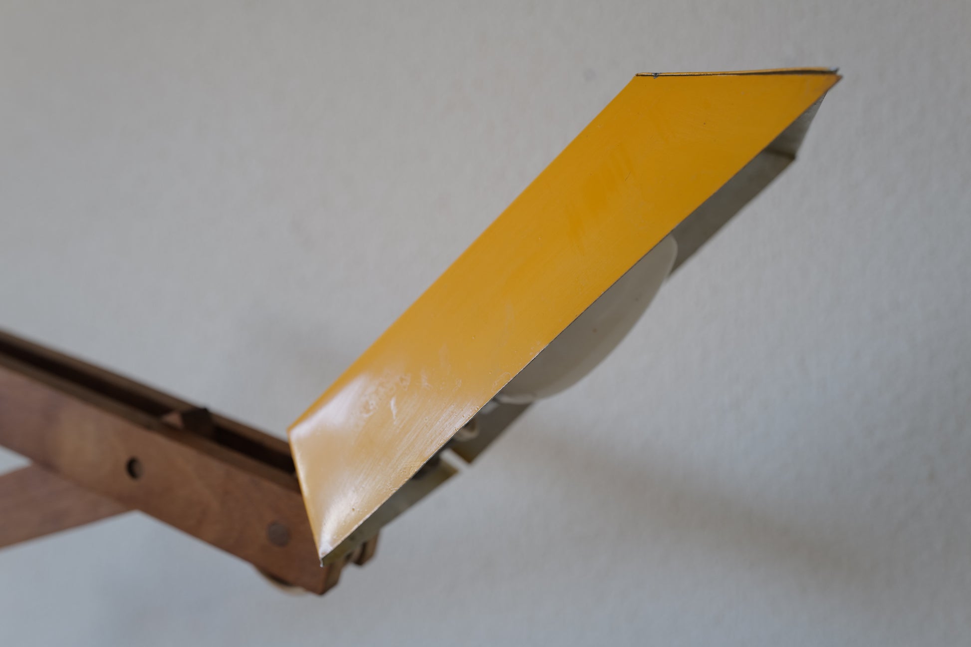 1960年代に北欧でデザインされたデスクランプ。全体はwoodで、シェード部分はスチール。時間の経過を感じさせる飴色に変色したwood、アクセントカラーの赤と黄色、シンプルな仕組みでの高さ調整、そして絶妙なバランスで安定性を保った設計。北欧ミッドセンチュリーのセンスの良さを感じれる、可愛らしく美しい作品になります。