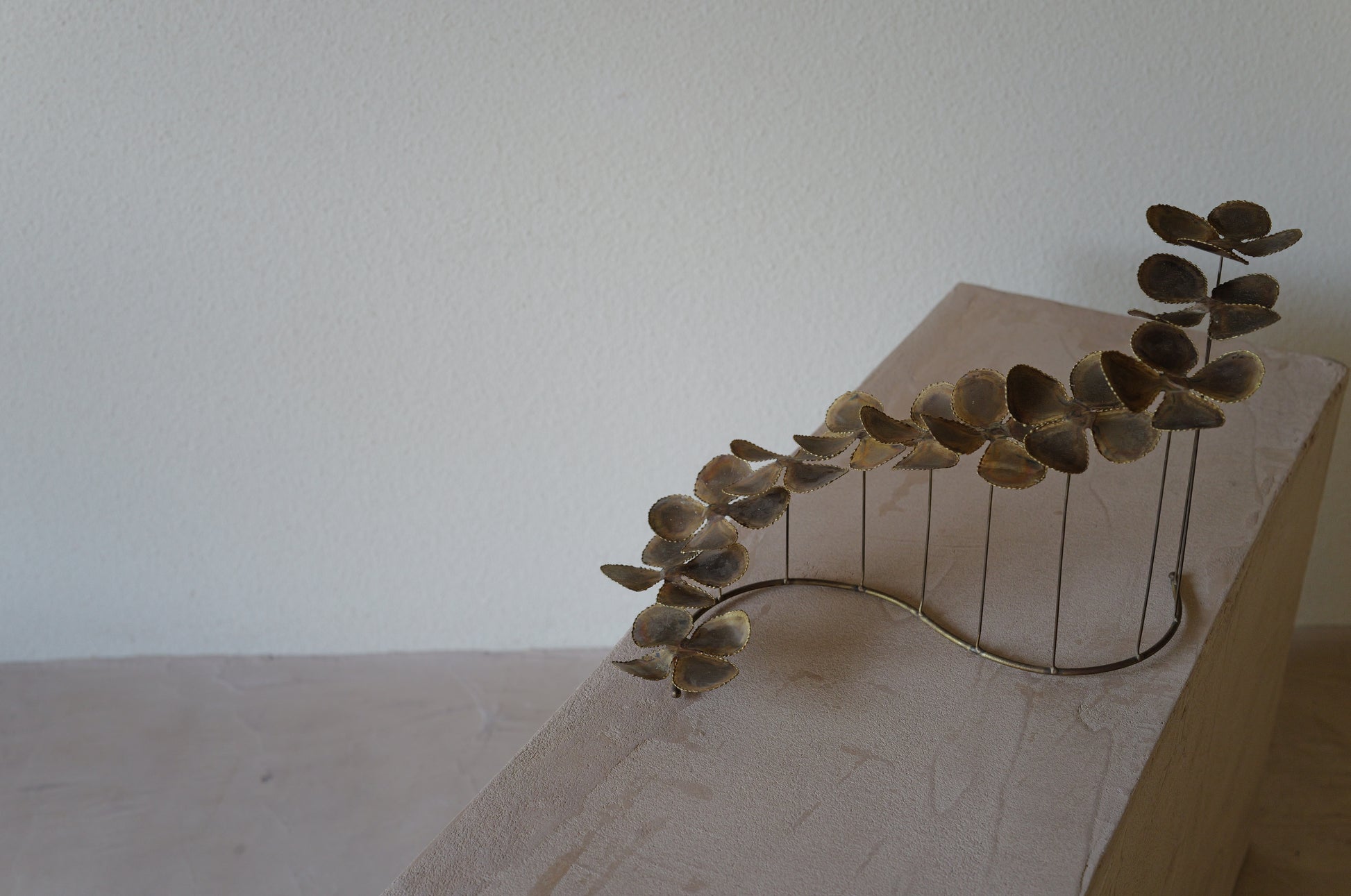 1970年代にアメリカで製作された真鍮の花。70年だから90年代のアメリカでよく見られた真鍮アートの一つです。花びらを階段状にS字で配置、素敵な作品です。