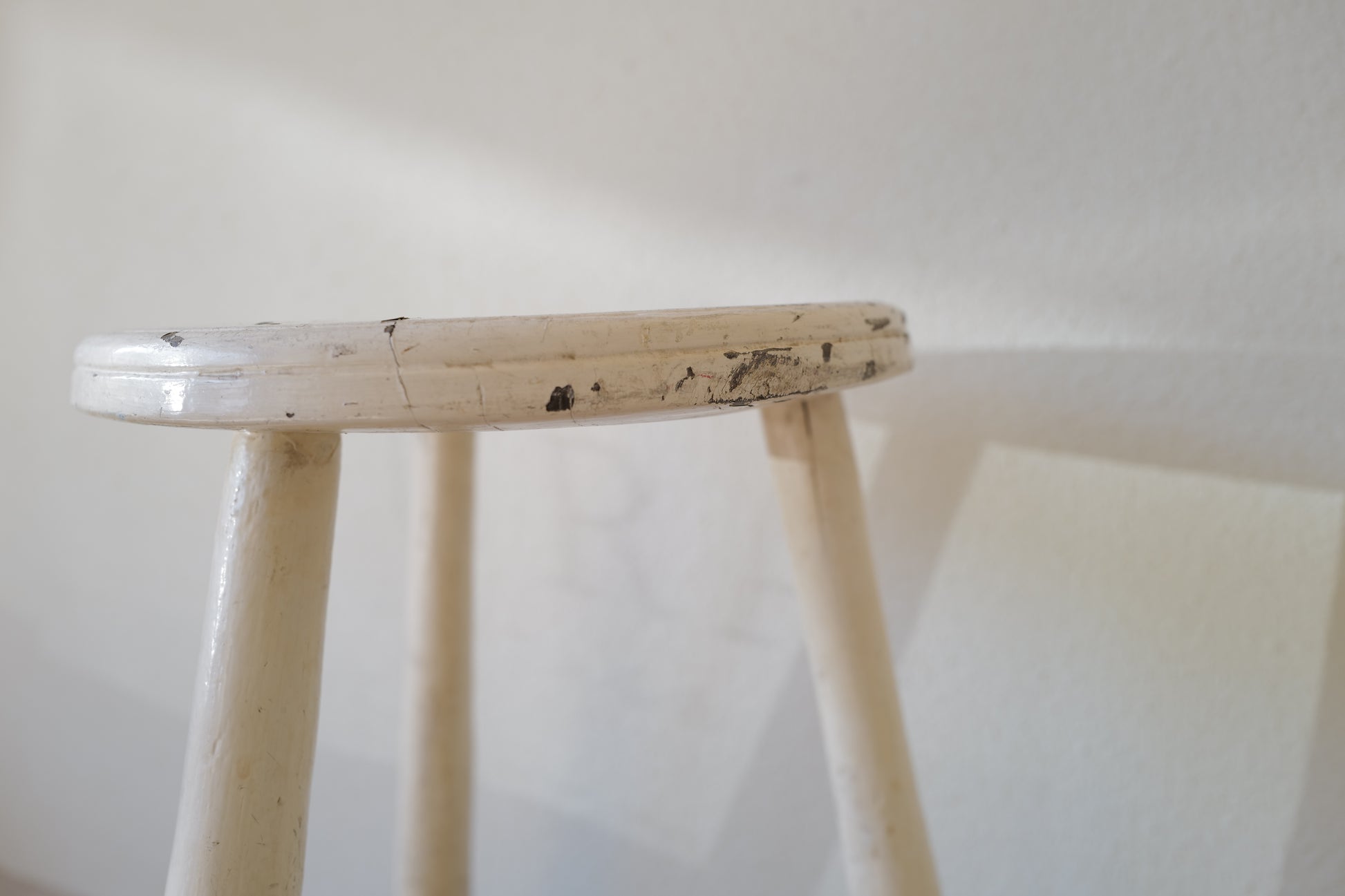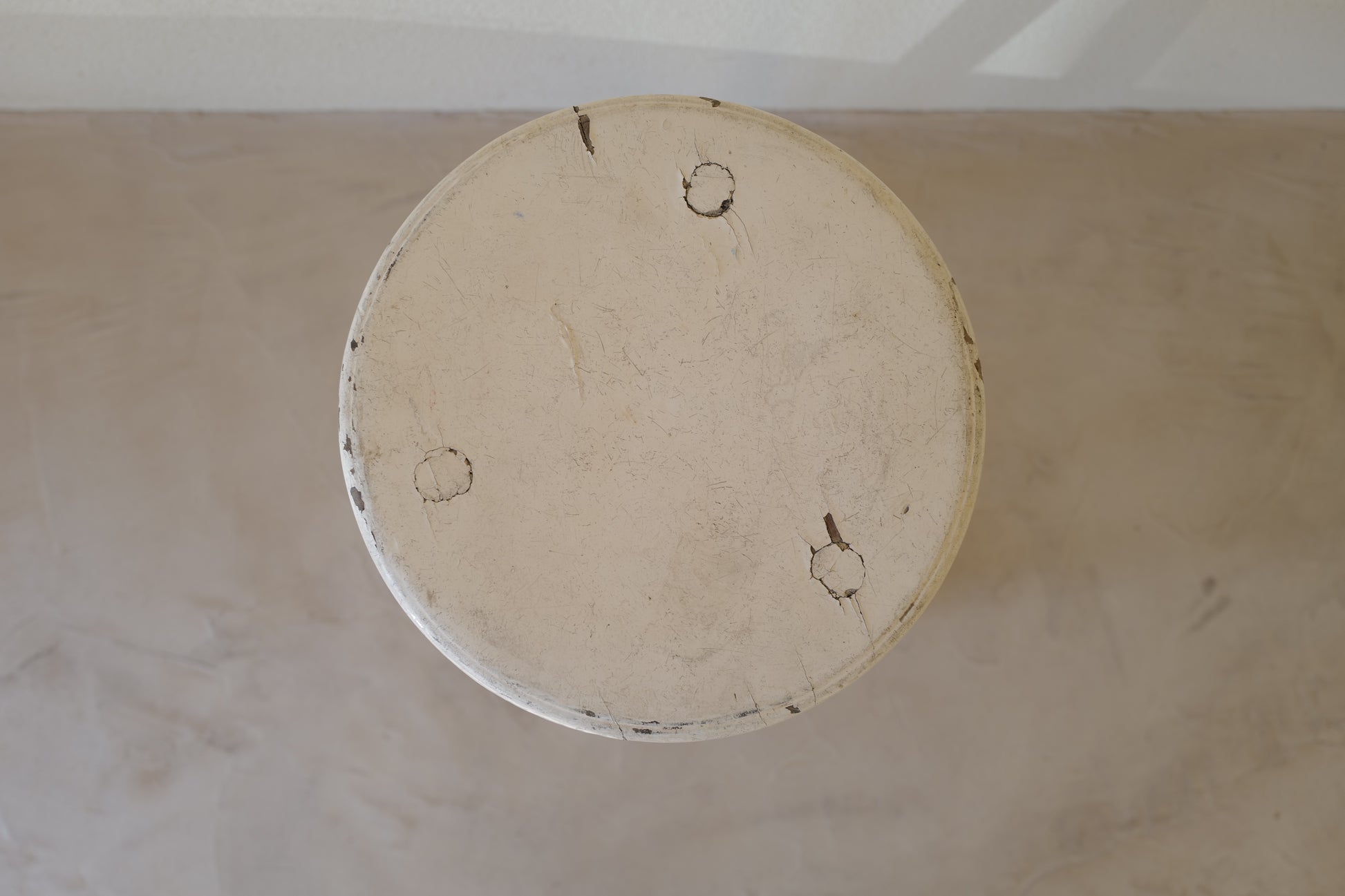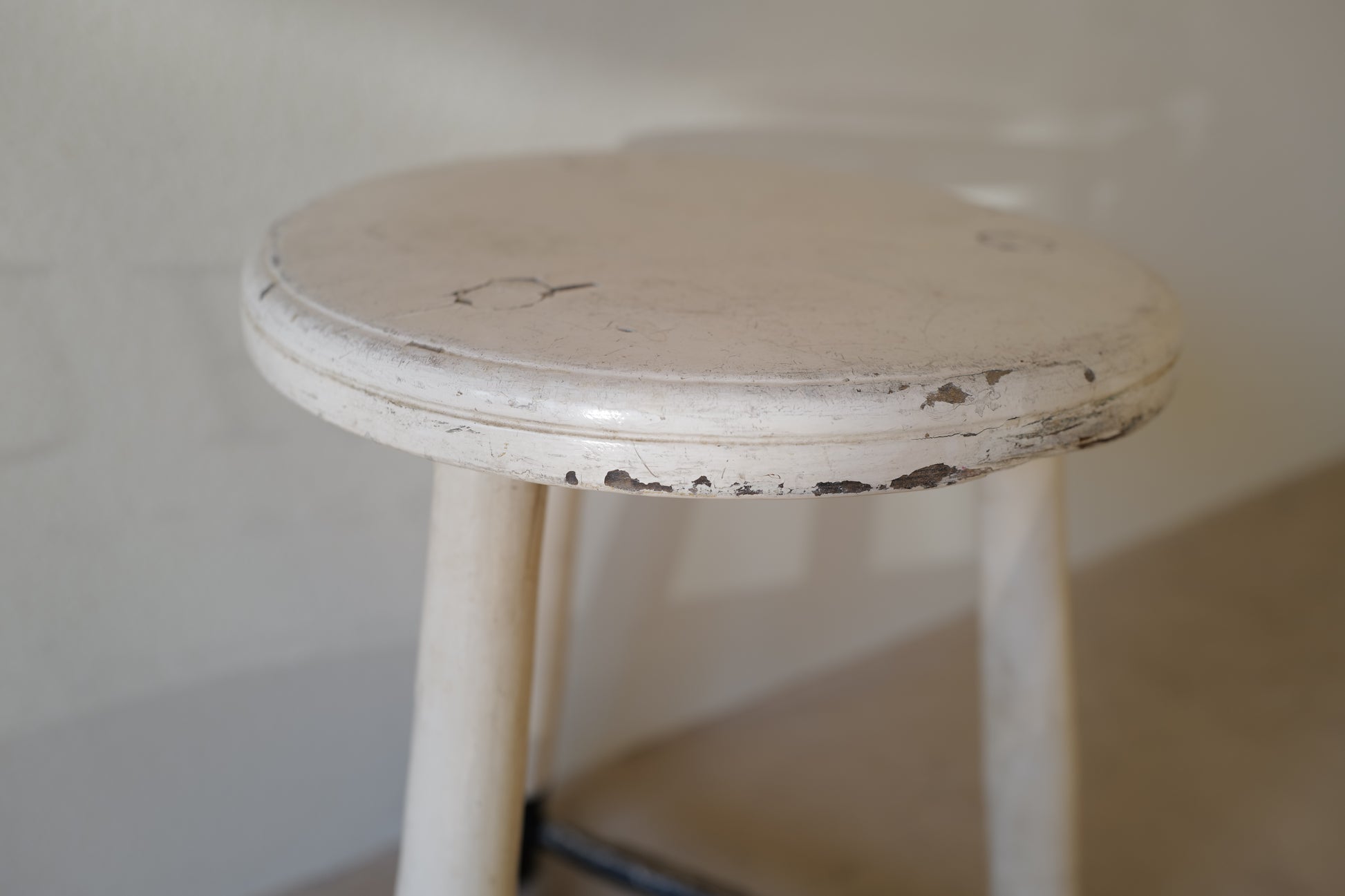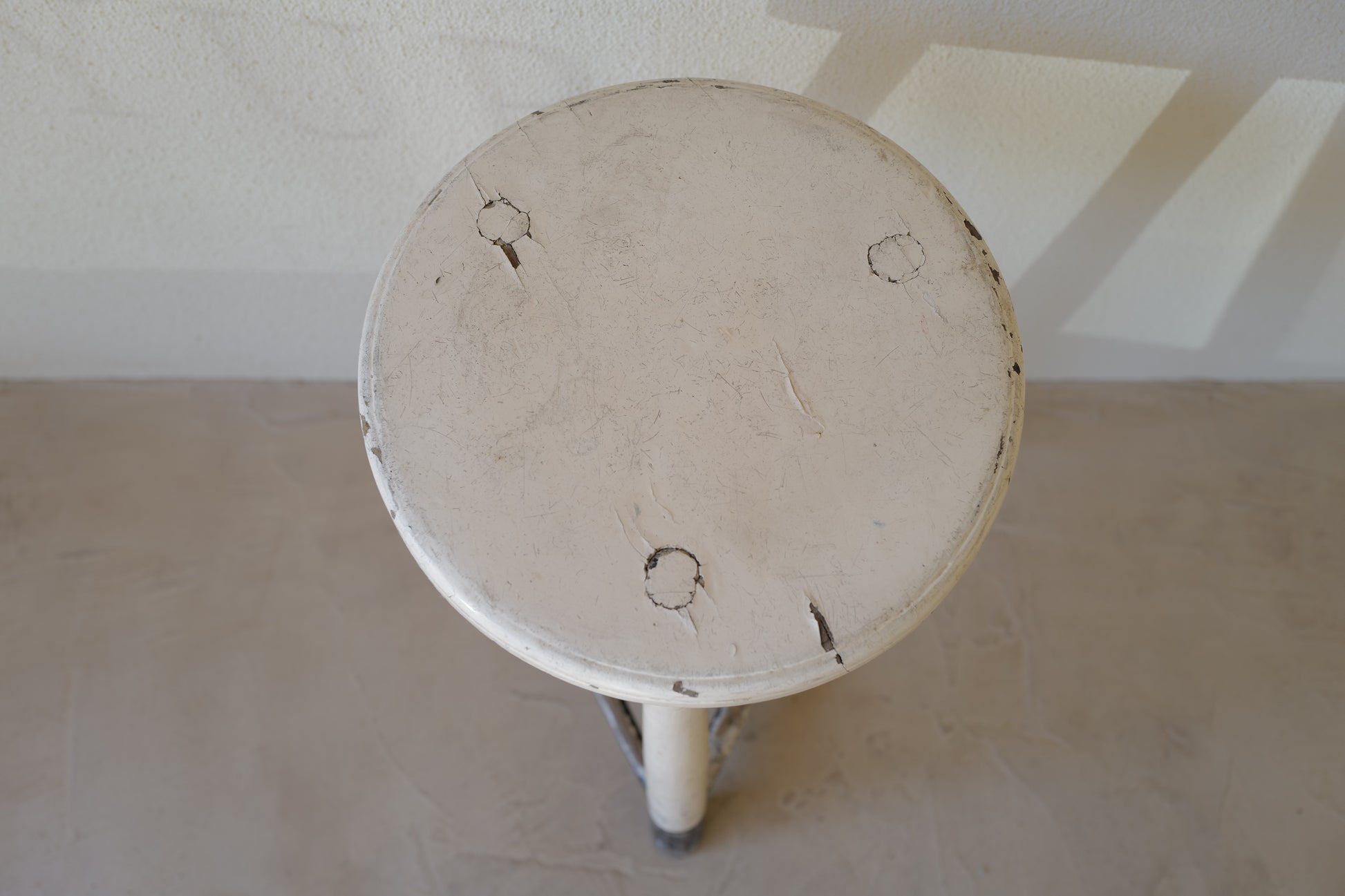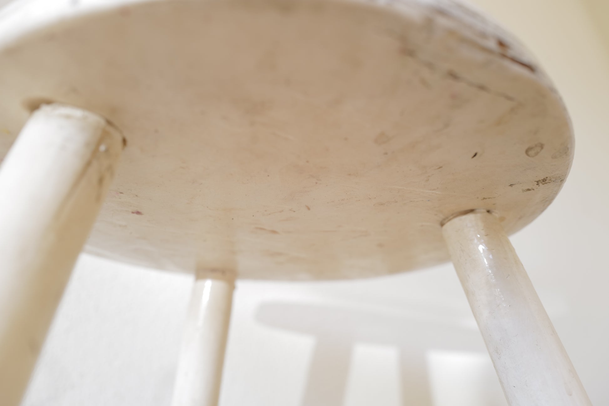 1950年代にヨーロッパで製造された木製のスツールになります。絶妙なバランスで塗られた黒と白のペイントに三脚足の補強材の微妙な組み方、当時の製作者の変なこだわりを感じるセンスの良いスツールになります。状態としては経年による劣化が良い風合いとお考えいただければ幸いです。
