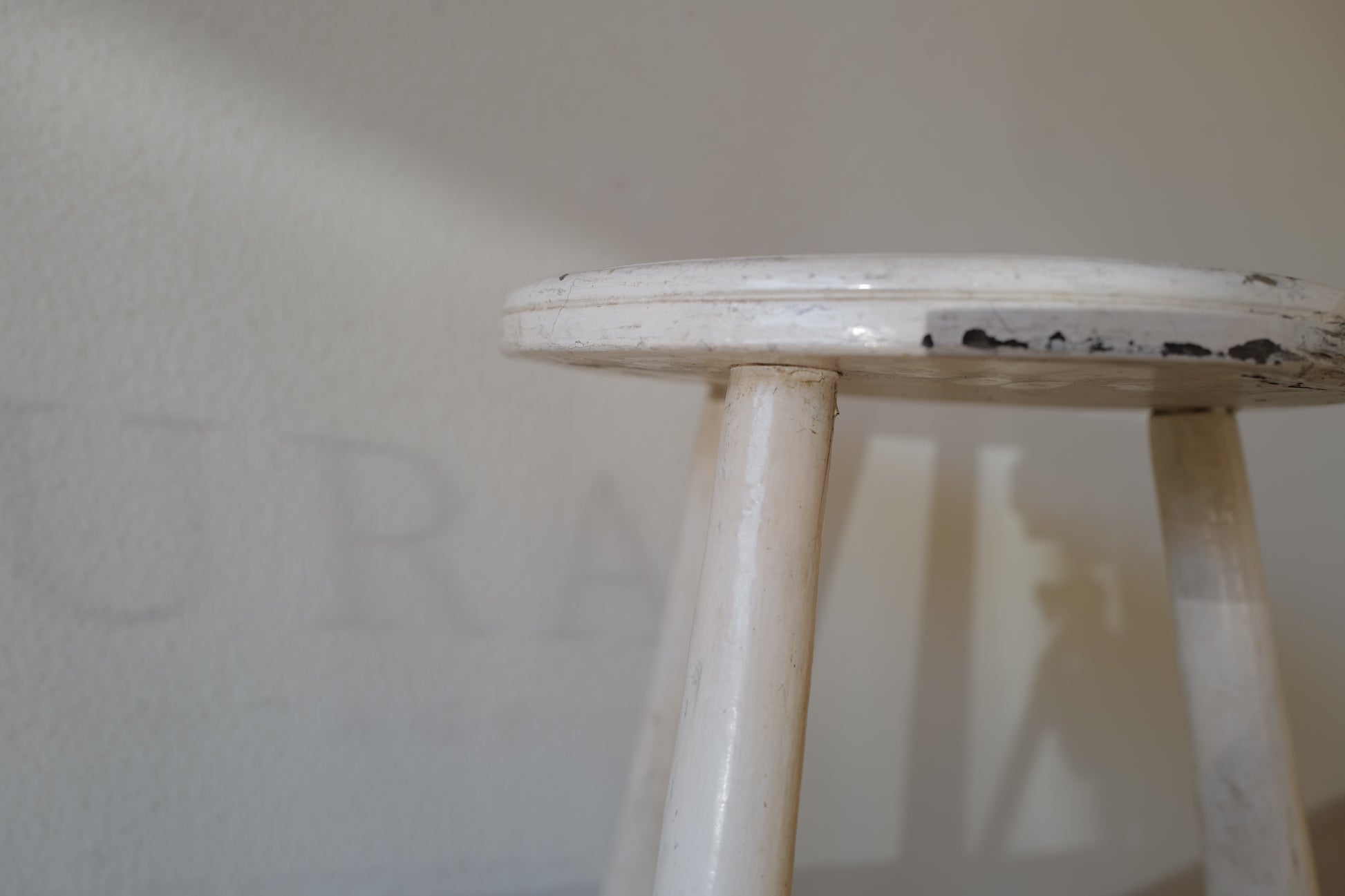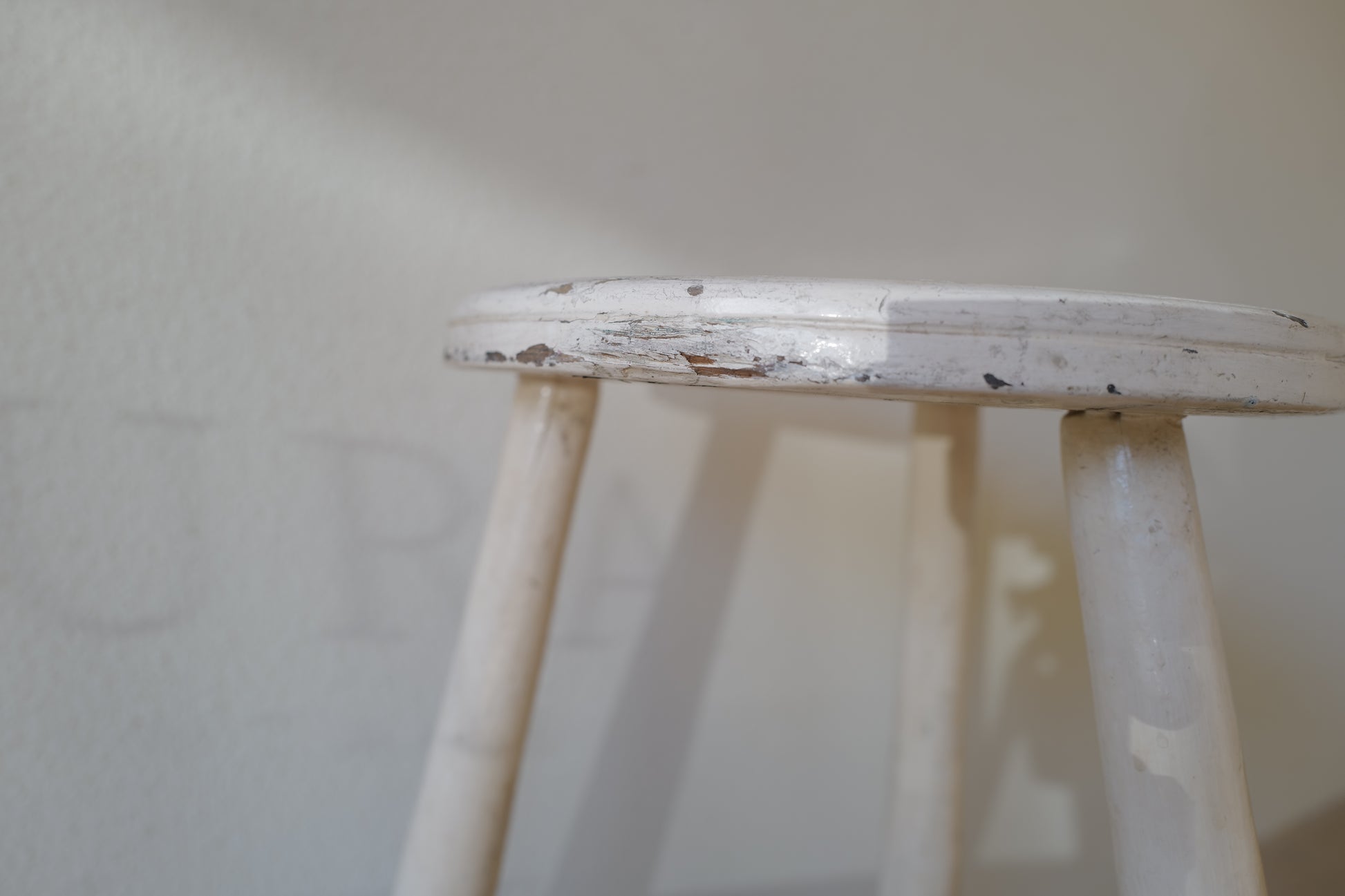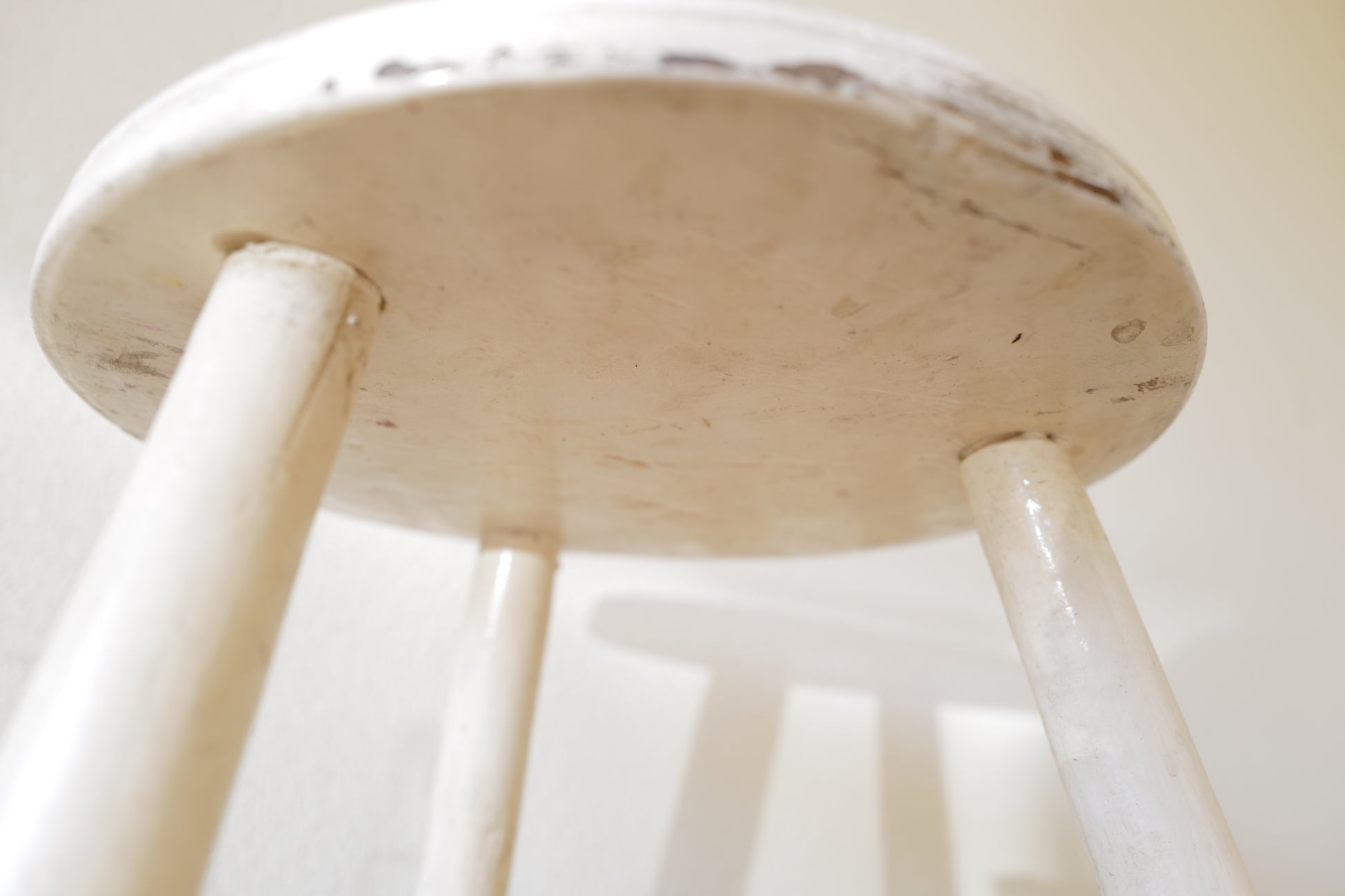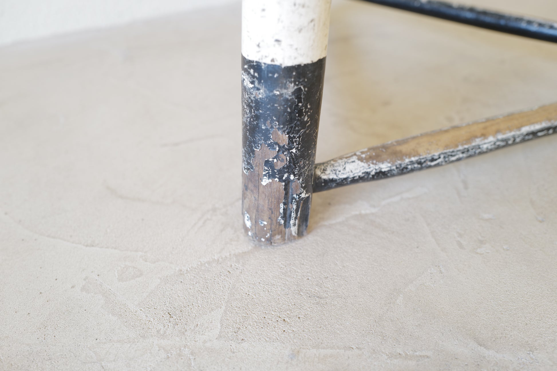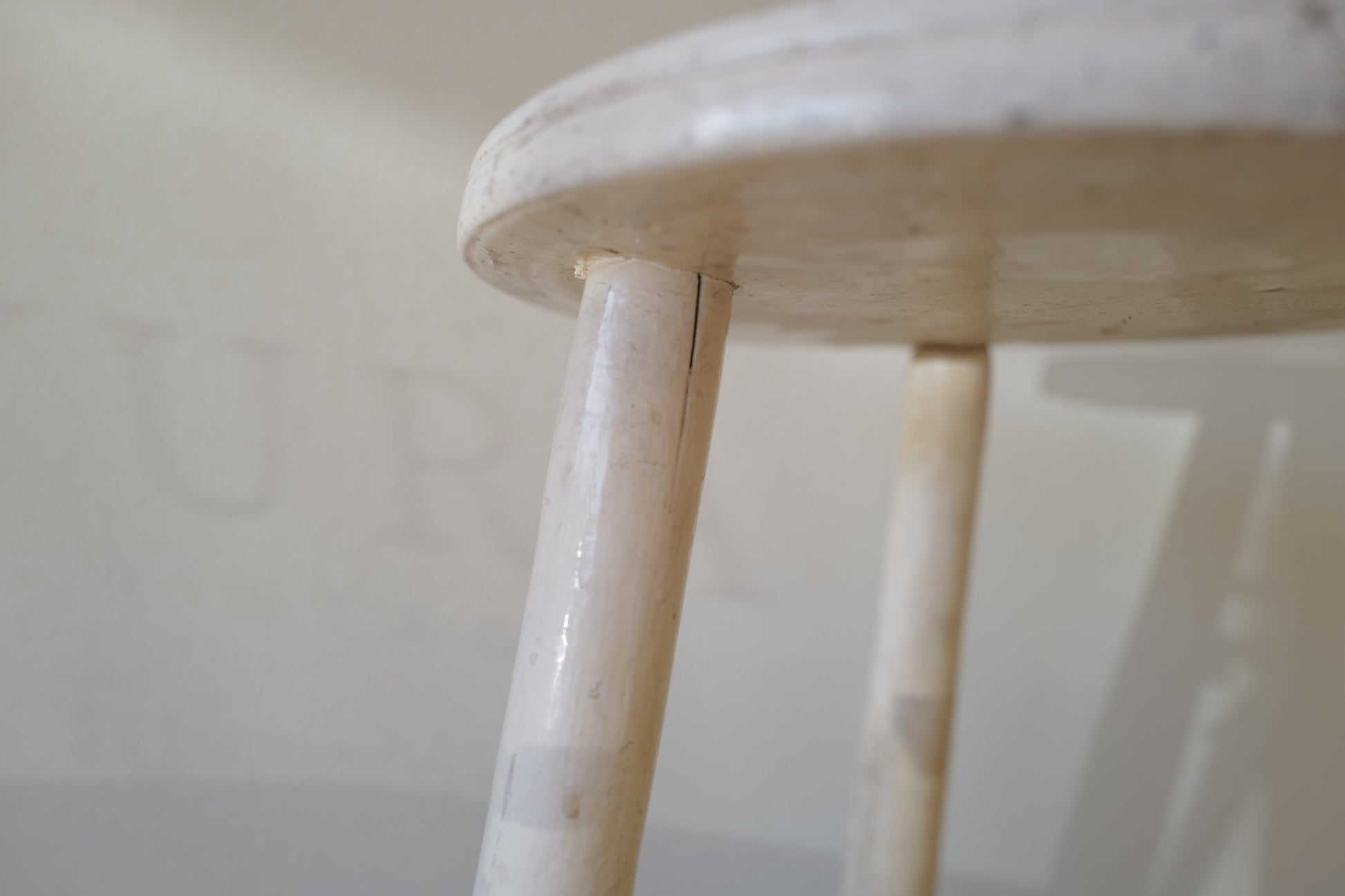 1950年代にヨーロッパで製造された木製のスツールになります。絶妙なバランスで塗られた黒と白のペイントに三脚足の補強材の微妙な組み方、当時の製作者の変なこだわりを感じるセンスの良いスツールになります。状態としては経年による劣化が良い風合いとお考えいただければ幸いです。