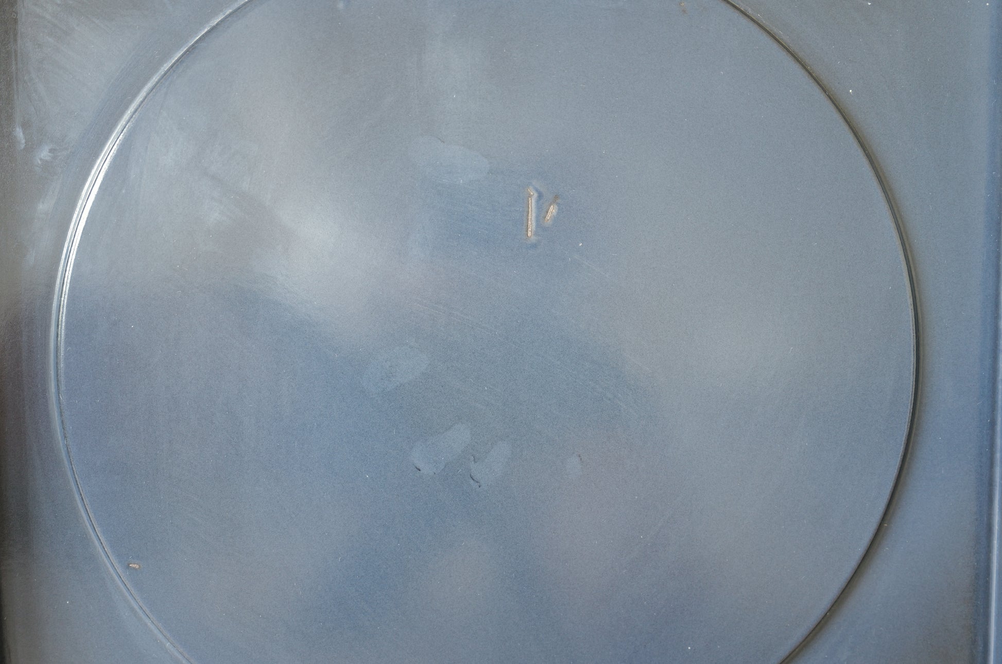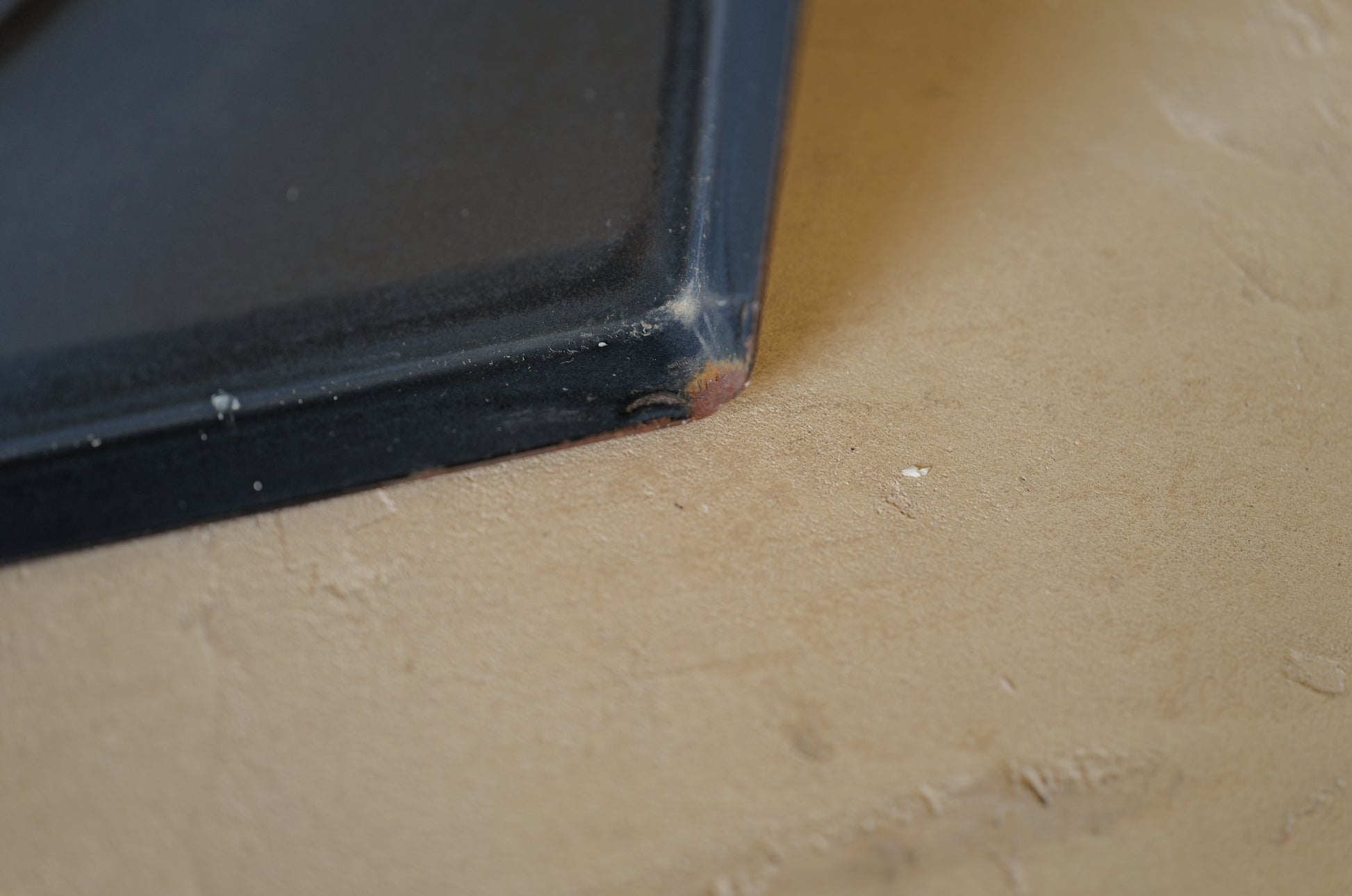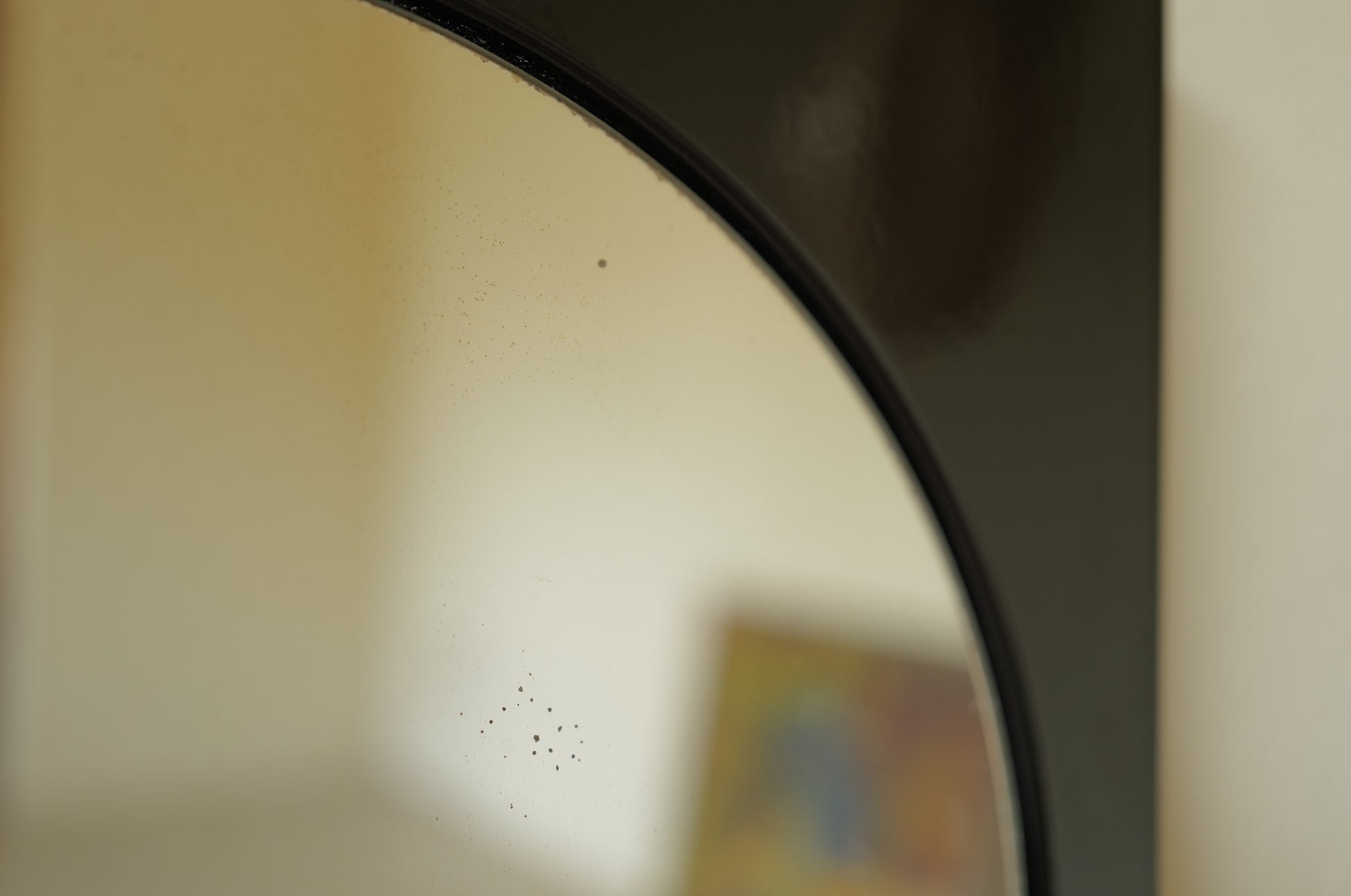 1960年代フランスで製造された黒のエナメル加工が施されたメタルミラー。とても素敵なミラーになります。状態はミラーに黒いくすみ点が見られます。完全な綺麗な鏡をお求めの方は注意して下さい。重量が2kgくらいあります。経年劣化が見られますが全体的にはとても良い雰囲気のミラーになります。