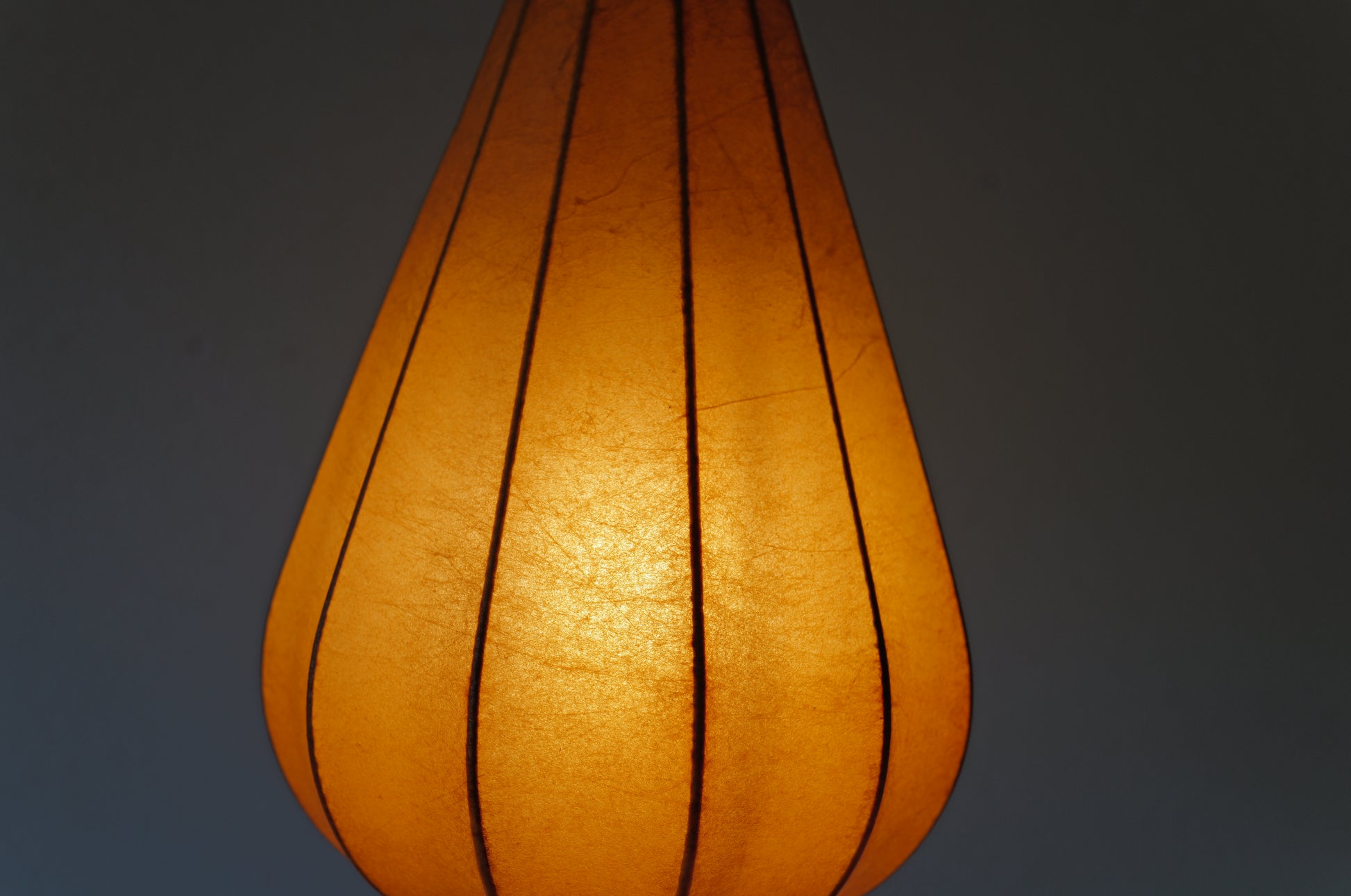 1950年代にイタリアで製造されたと思われる初期のコクーンシェイドになります。色味、質感、艶感、見た目、手触り、ヴィンテージ好きにはたまらない1950s初期型 ティアドロップコクーンランプ。シェードに破れ、キレ等のダメージはなく、とても良い風合いが楽しめるものになります。内側のワイヤー部分に錆が見られます。