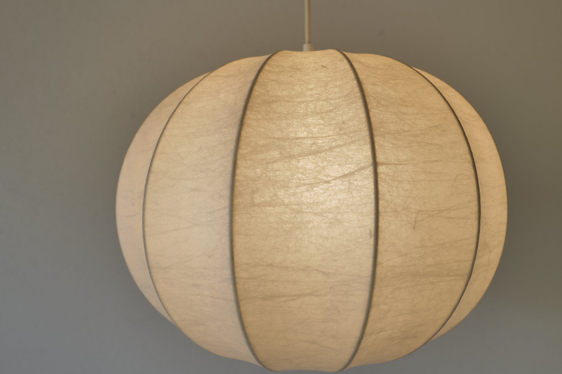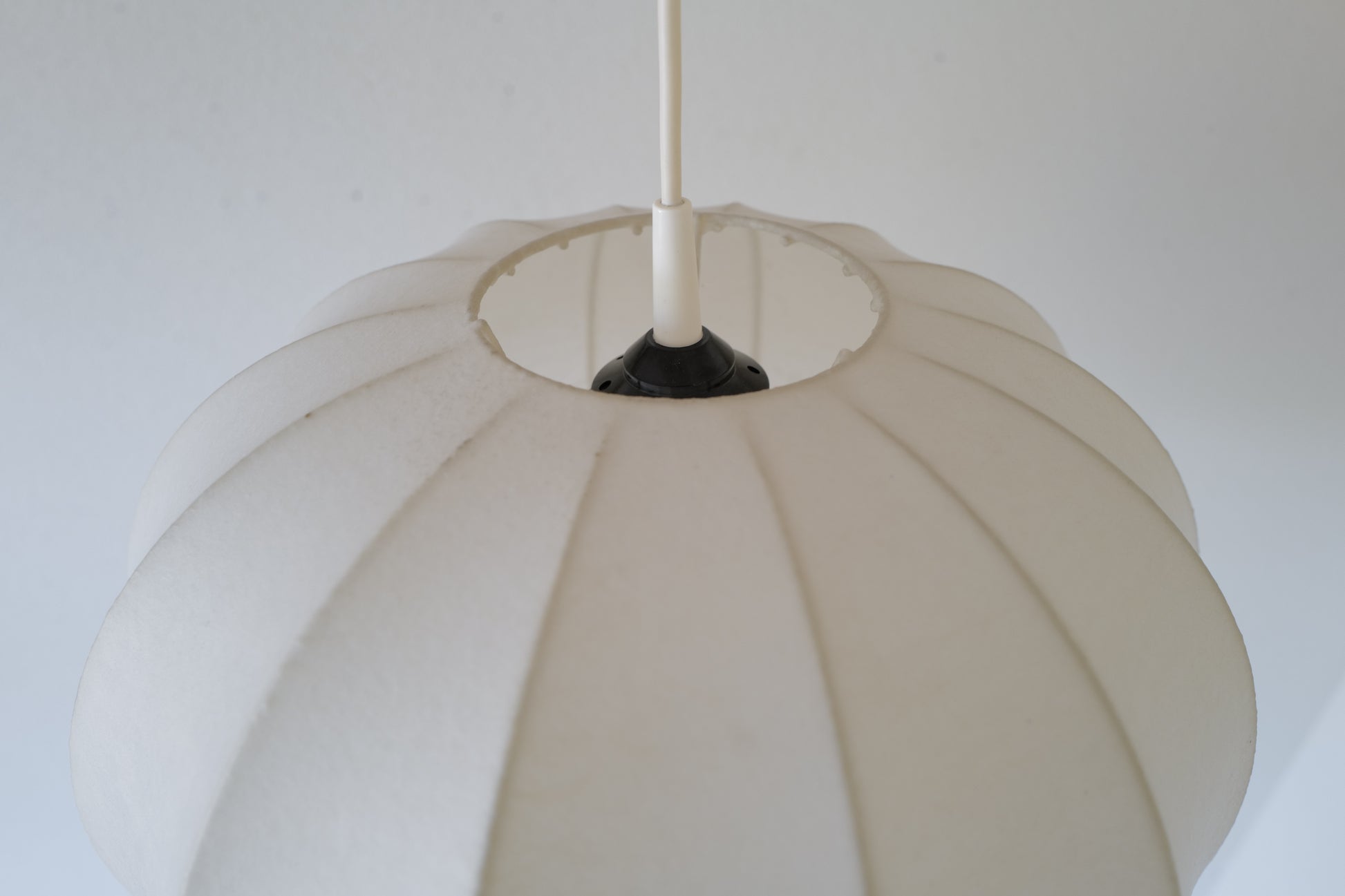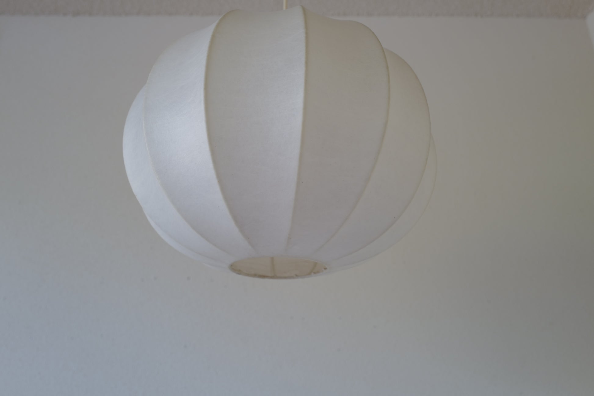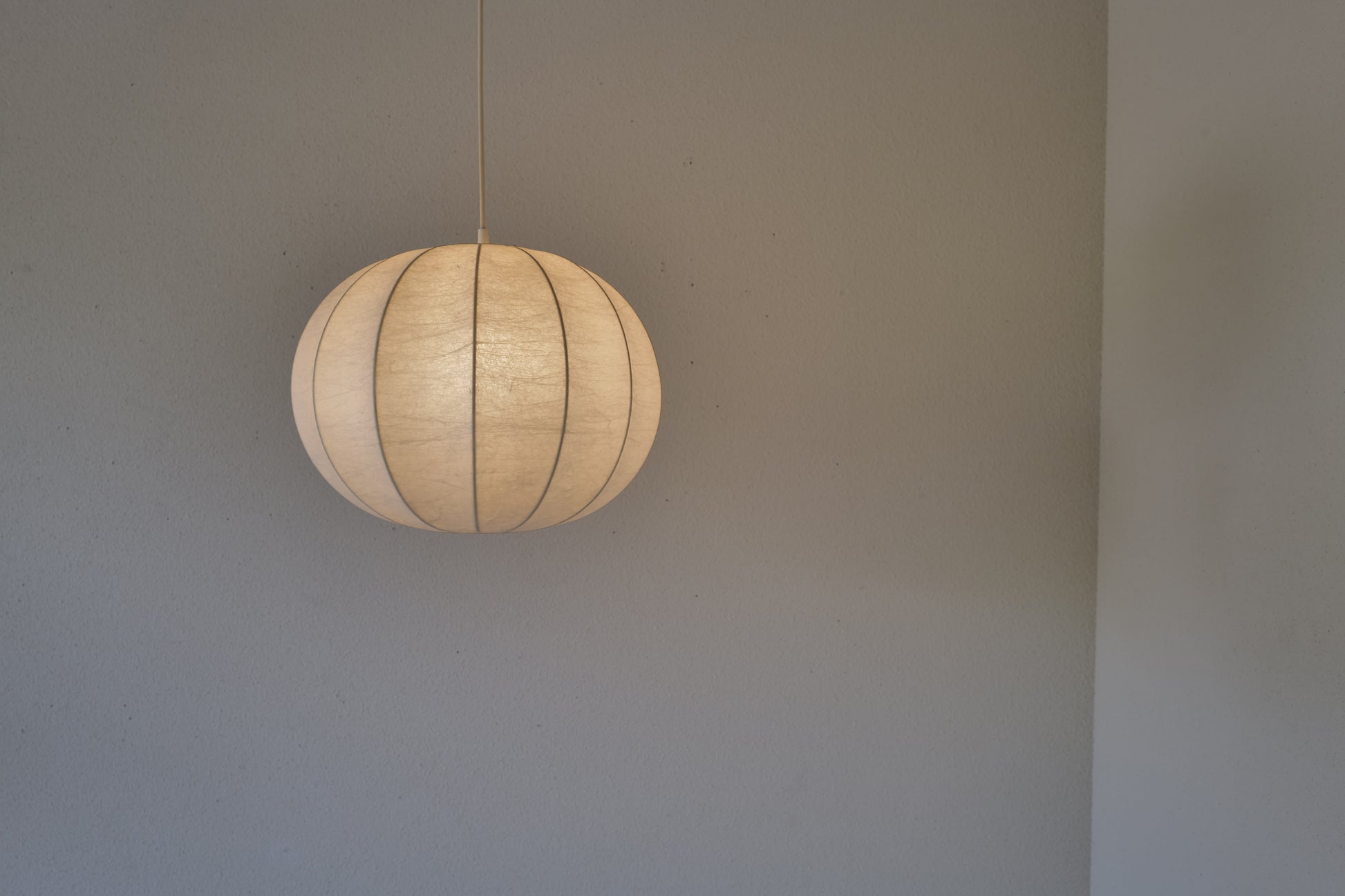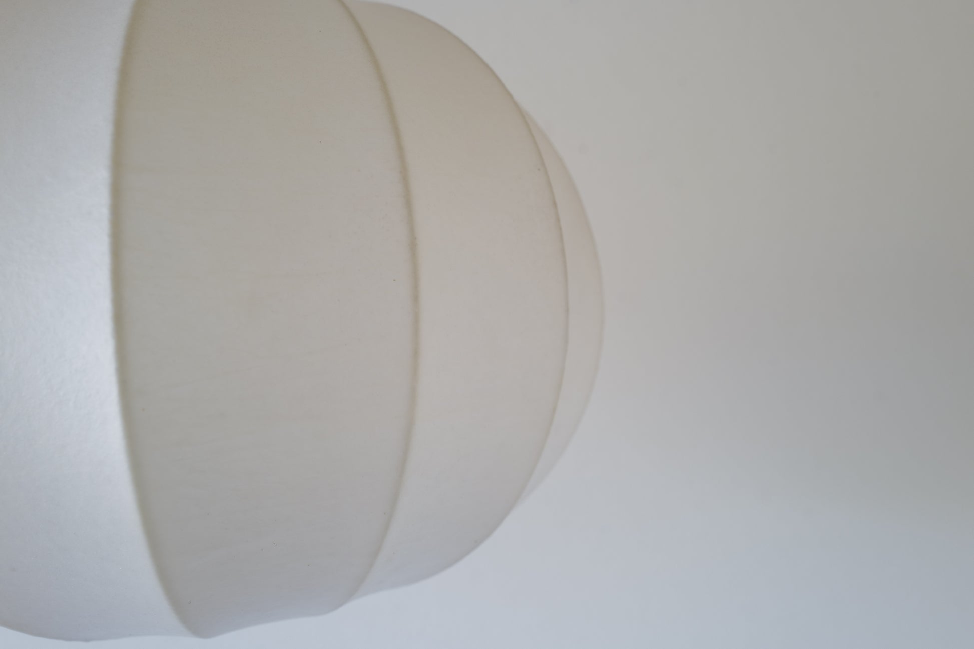 1960年代ドイツで製造されたコクーンランプ。和紙のような見た目ですが、また違った質感のコクーンシェイド。ワイヤーベースにプラスチック繊維を吹きかけたシェードはなんとも柔らかく、ぷっくりとした質感に可愛さが滲み出るとても面白い作品です。状態も60年以上前のもとは思えない程良い状態を保っております。