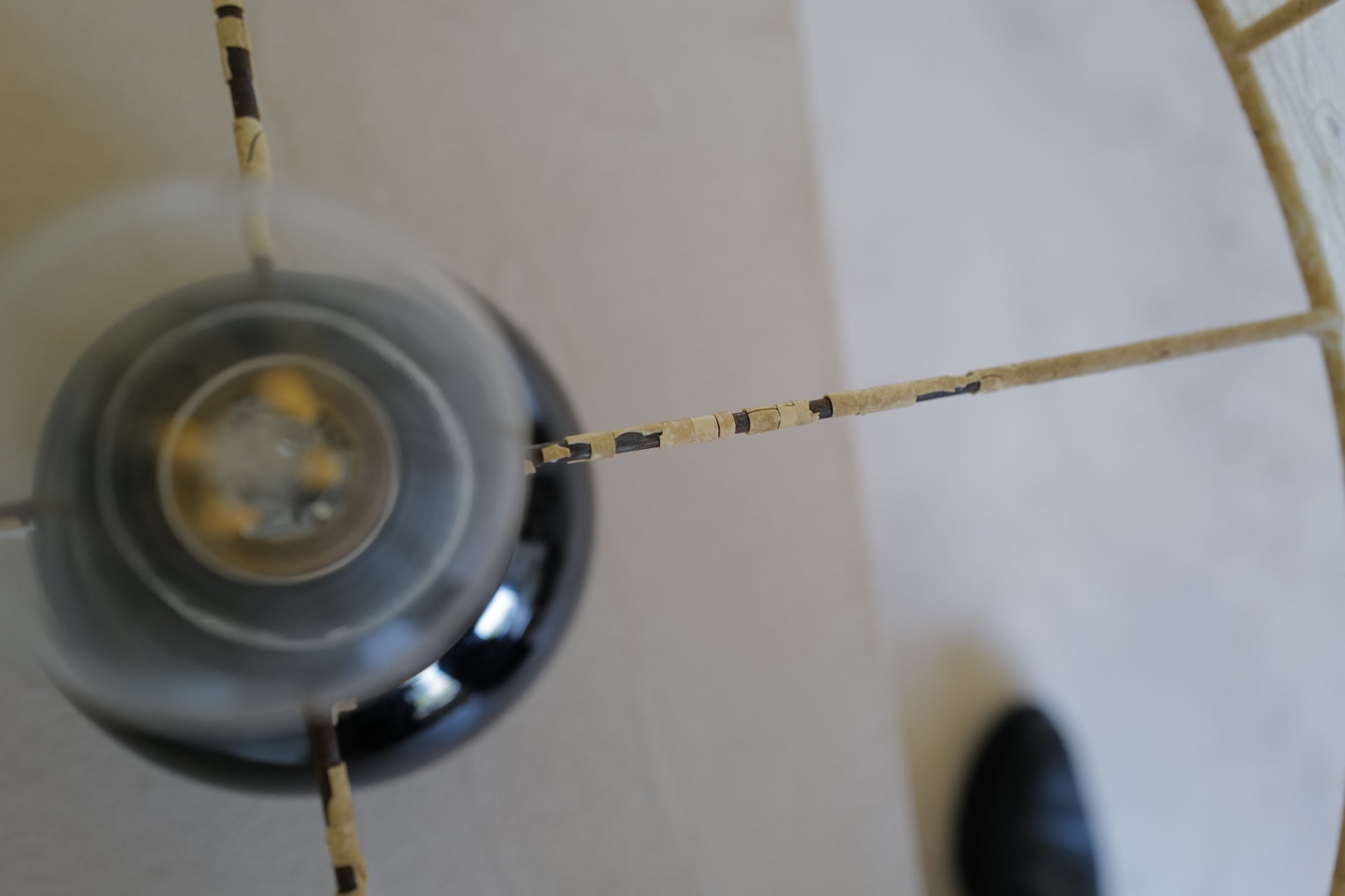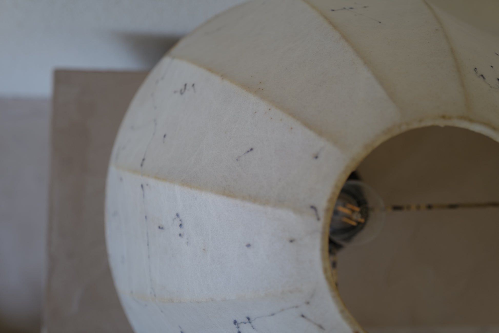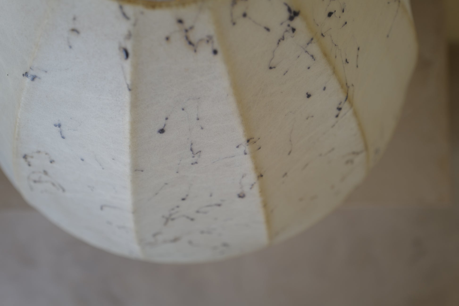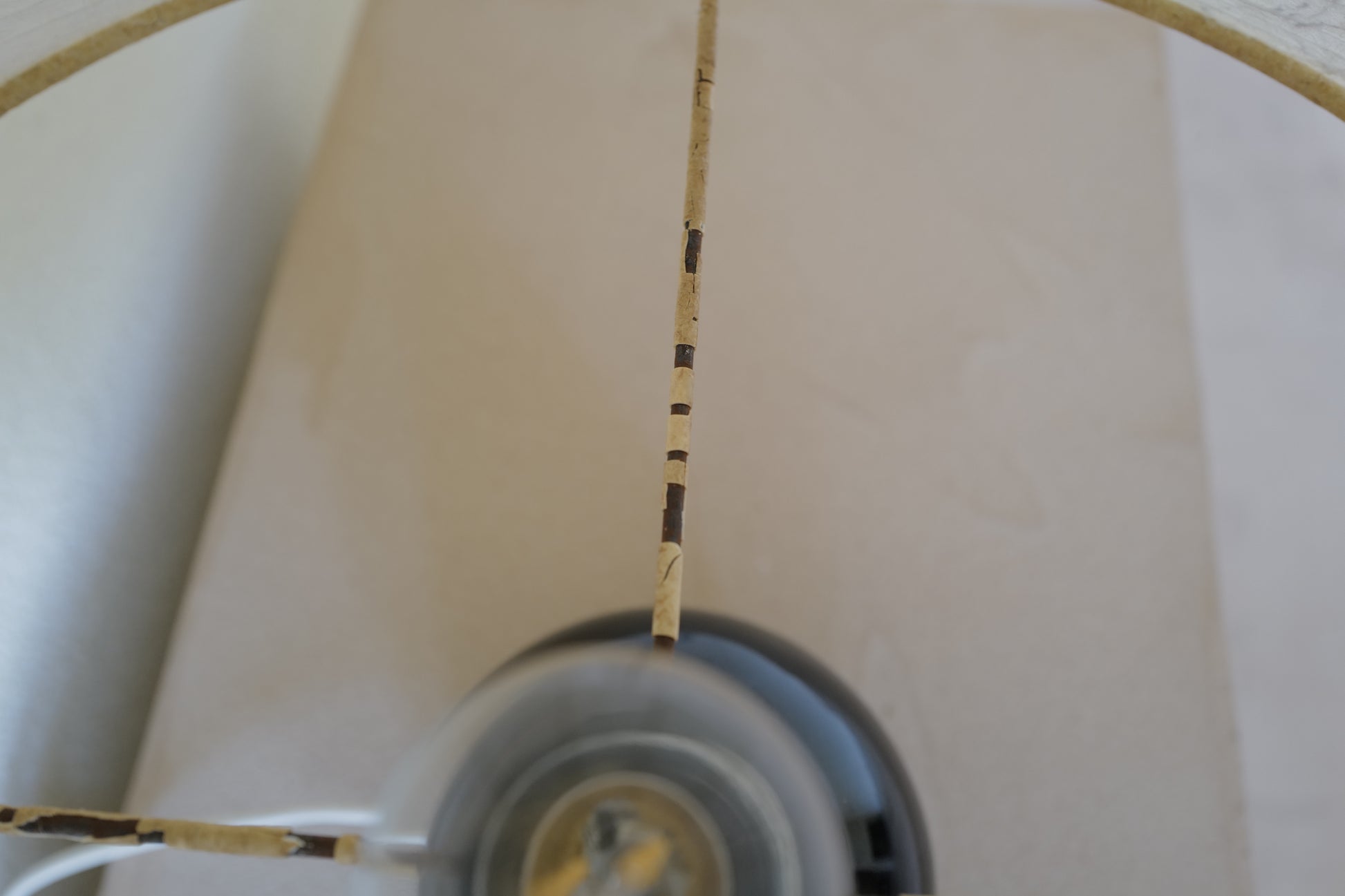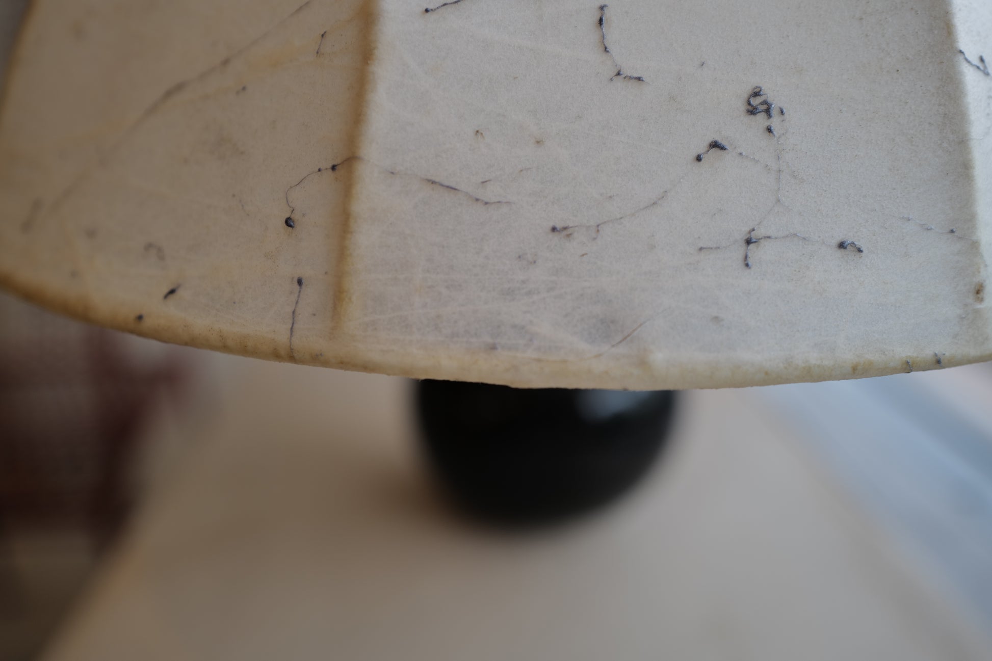1960年代に作られたコクーンシェイドを備えたマッシュルームランプ。ブラックのセラミックベースとシェードには美しいペイント、多分この先出会うことないすばらく可愛いテーブルランプになります。状態の方ですがシェードに線キレが1箇所ございます。1番最後の写真になります。