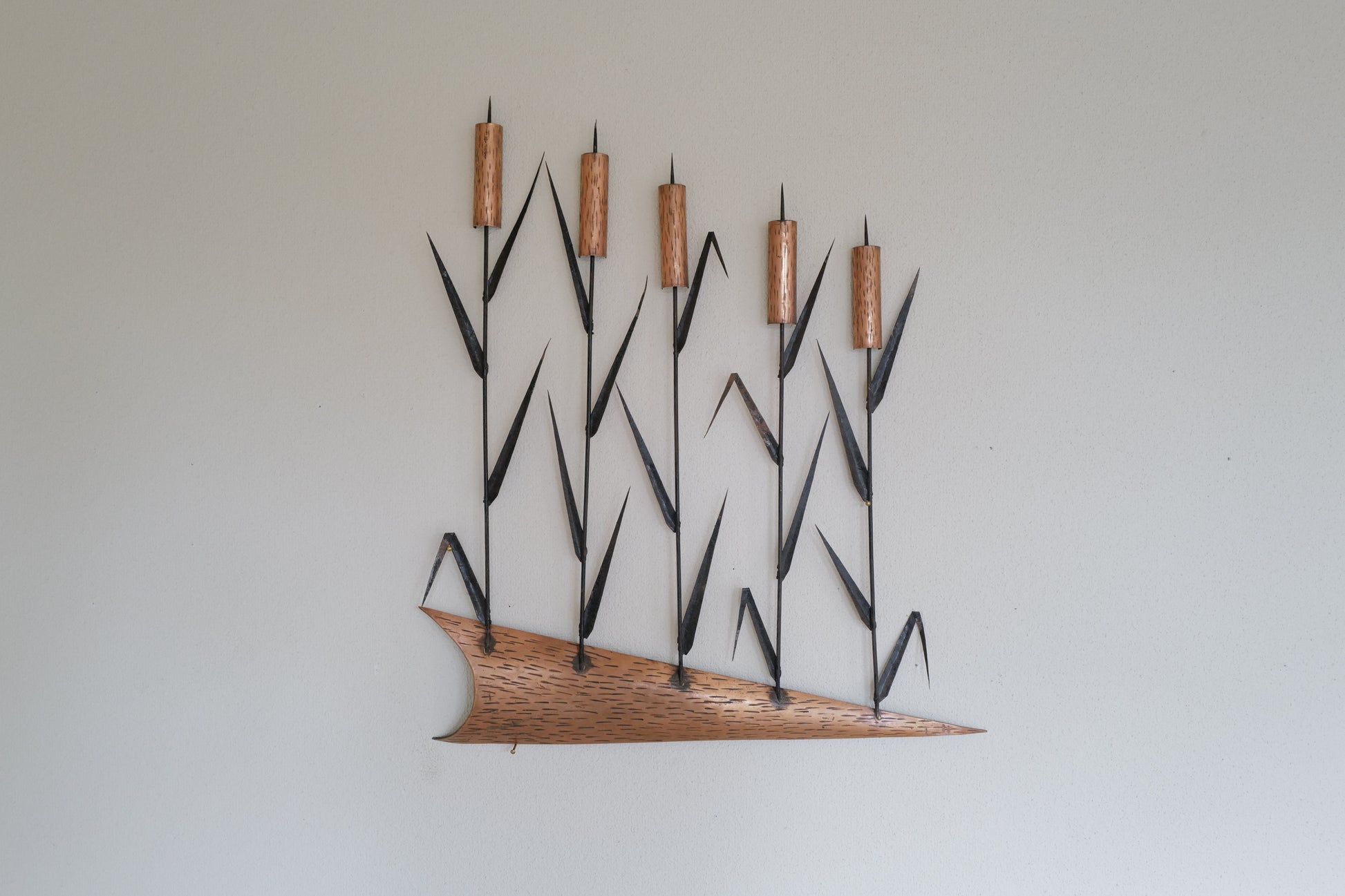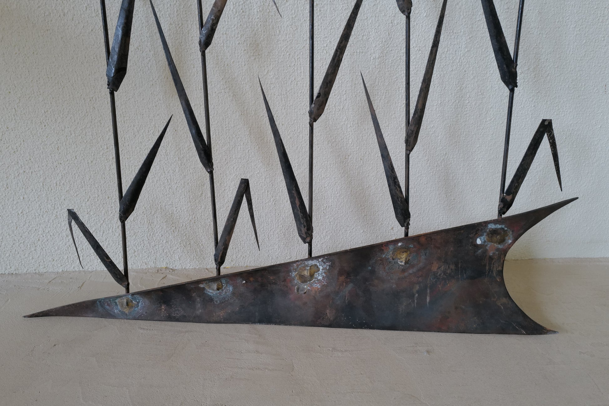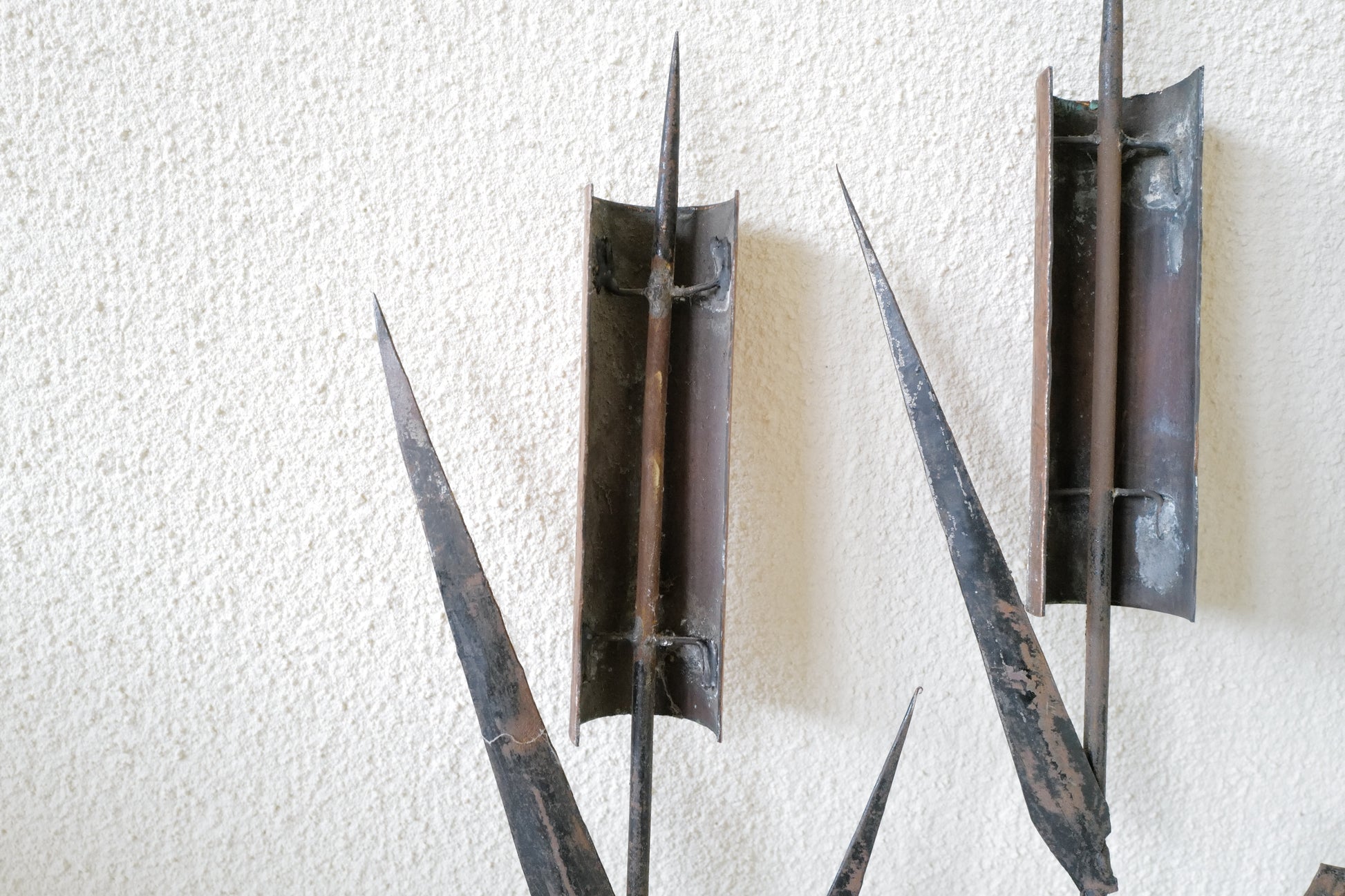 1960年代イタリアでデザインされたウォールスカルプチャー。雰囲気、サイズ感共に素晴らしい作品になります。状態は良好ですが所々先が微妙に曲がっていたり歪んでいたりしています。取り付けは画像では解りづらいですが引っ掛かりそうな所、何箇所かに釘を打って固定しております。