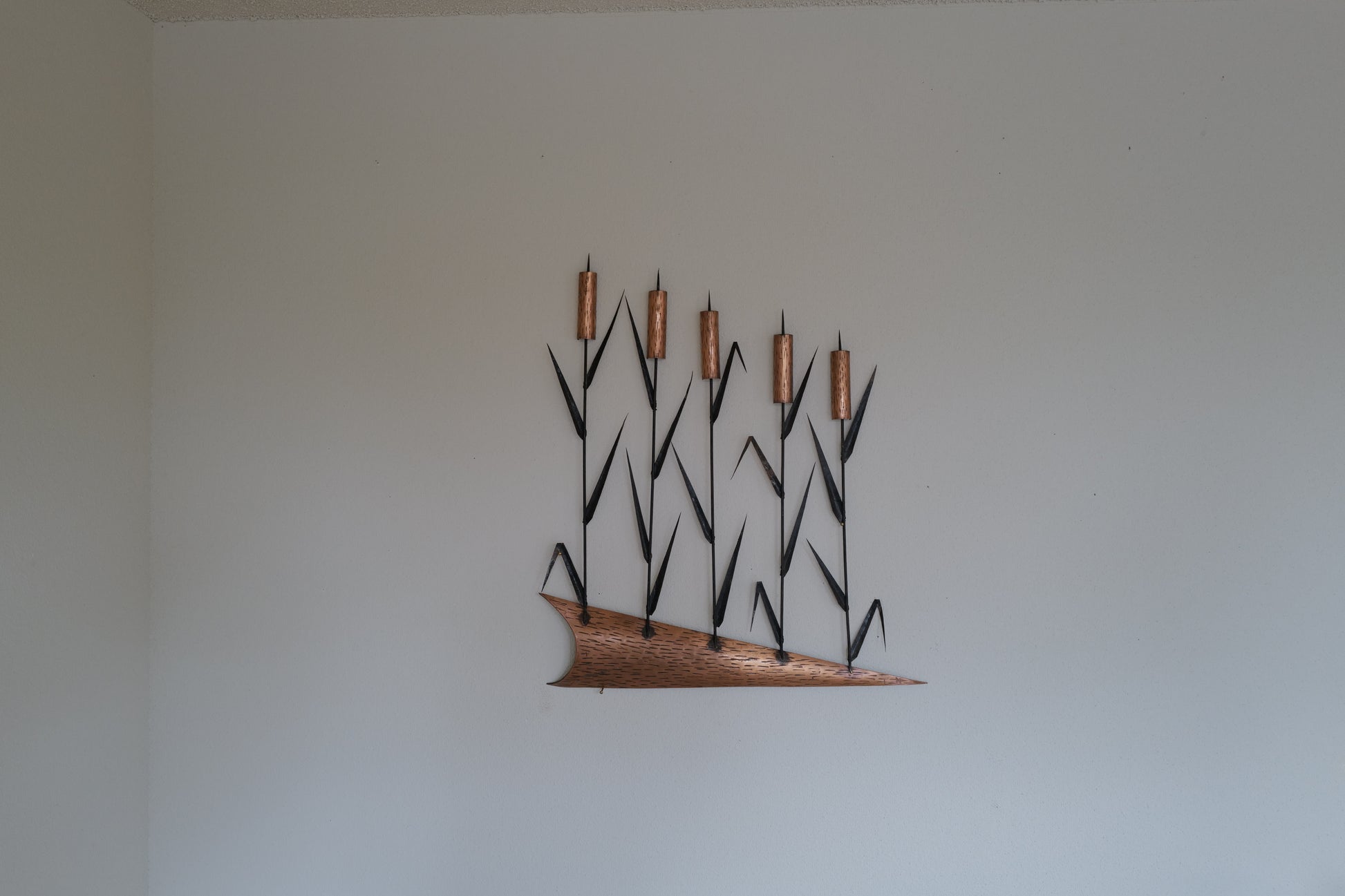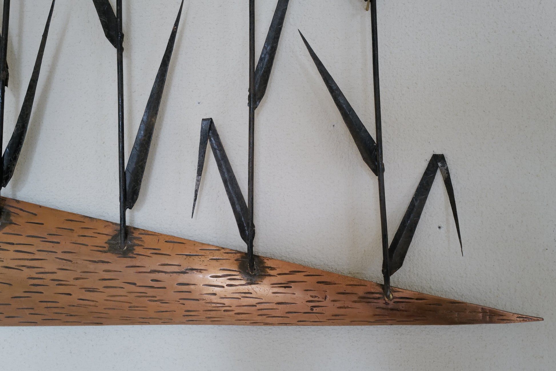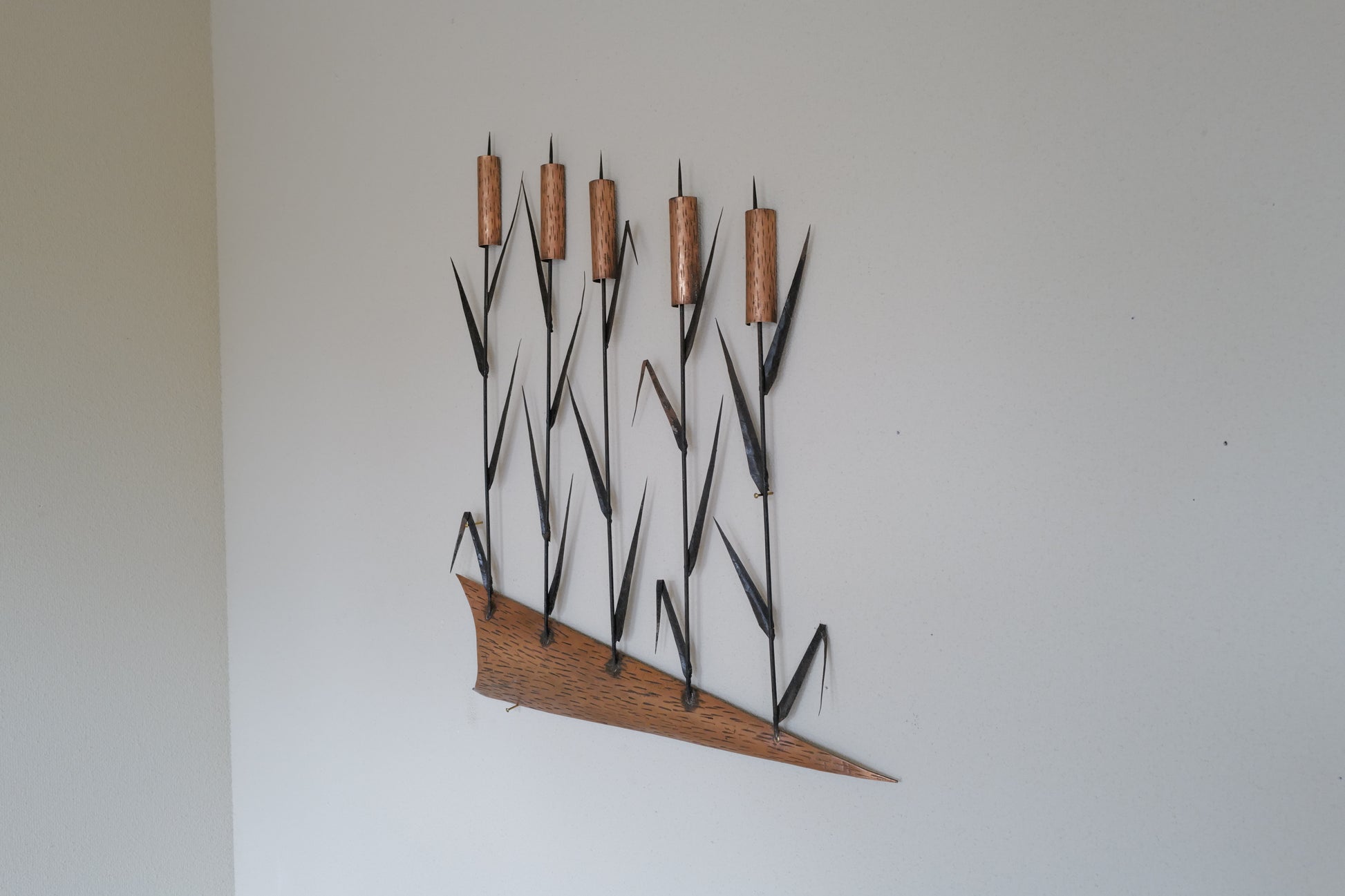 1960年代イタリアでデザインされたウォールスカルプチャー。雰囲気、サイズ感共に素晴らしい作品になります。状態は良好ですが所々先が微妙に曲がっていたり歪んでいたりしています。取り付けは画像では解りづらいですが引っ掛かりそうな所、何箇所かに釘を打って固定しております。