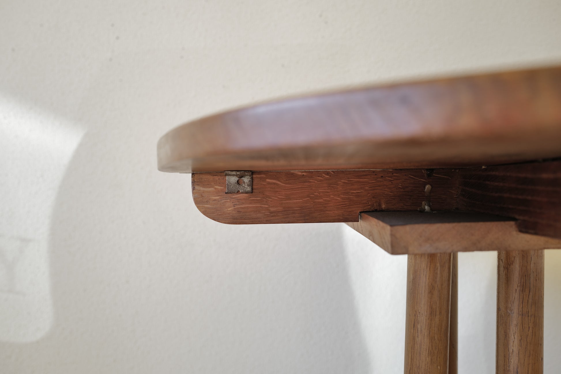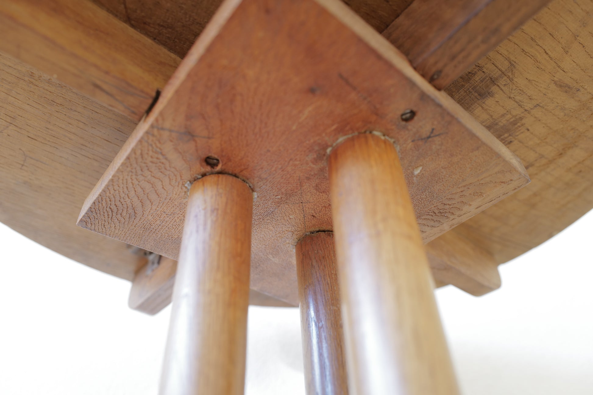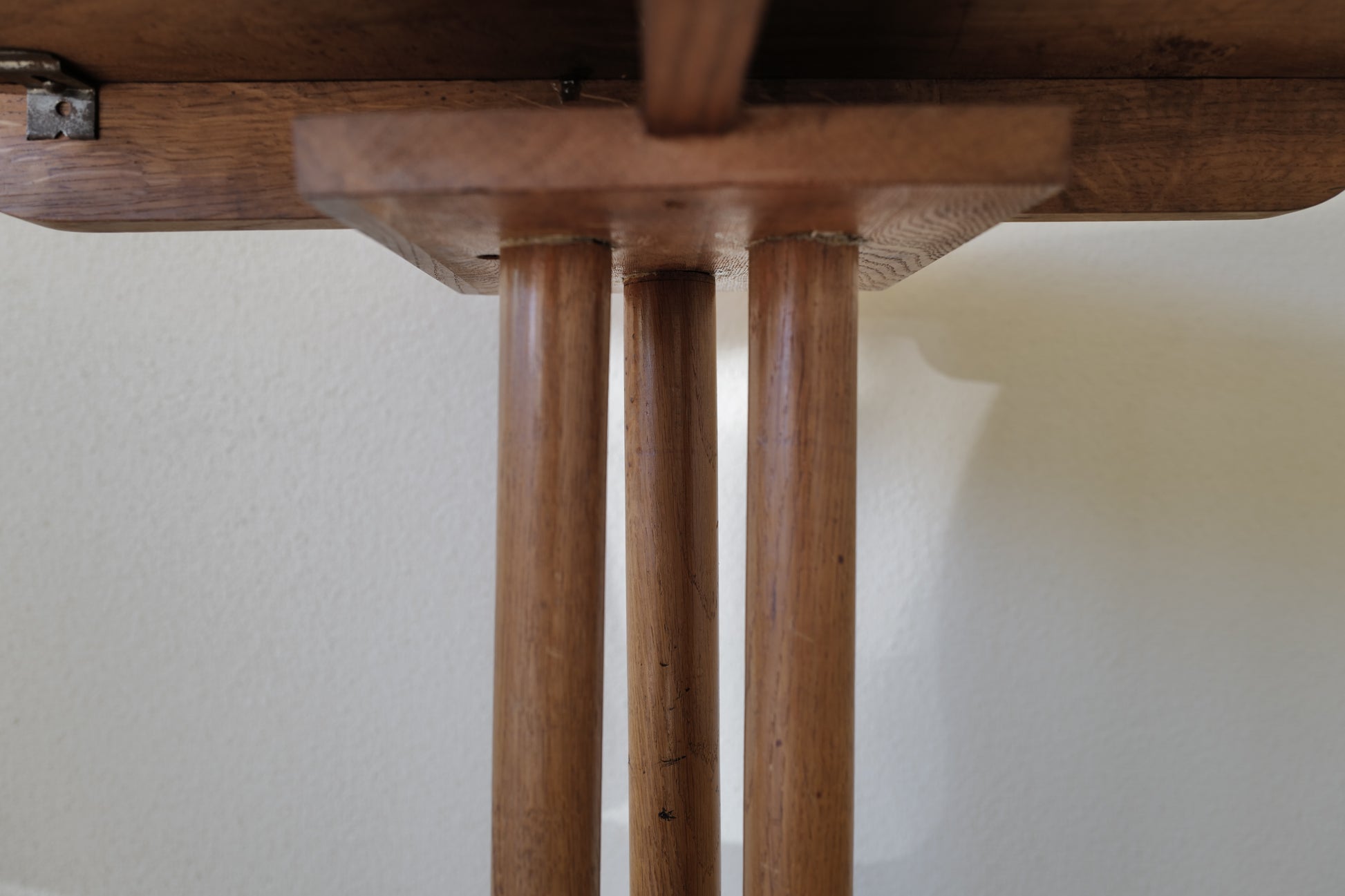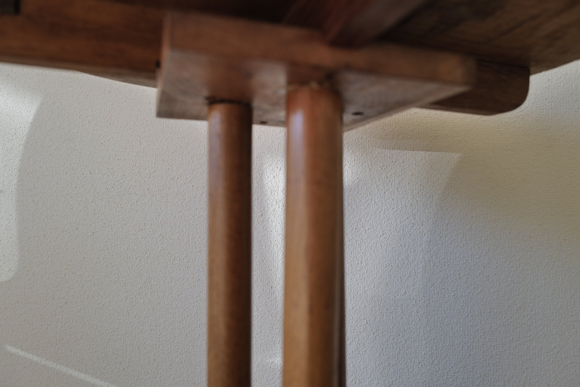 1920年代から30年代にオランダで製造されたコーヒーテーブル。アールデコ期のオランダで主流となっていたアムステルダム派とハーグ派。こちらはハーグ派の作品になります。アムステルダム派とは対照的に、ハーグ派は明るい木の色と直線が特徴で、より未来的な構成主義スタイルで制作された作品が多く見られます。状態の方ですが天板に修復跡とやや反りがございますが100年前のものとしては大切に扱われてきたものだと推測できます。