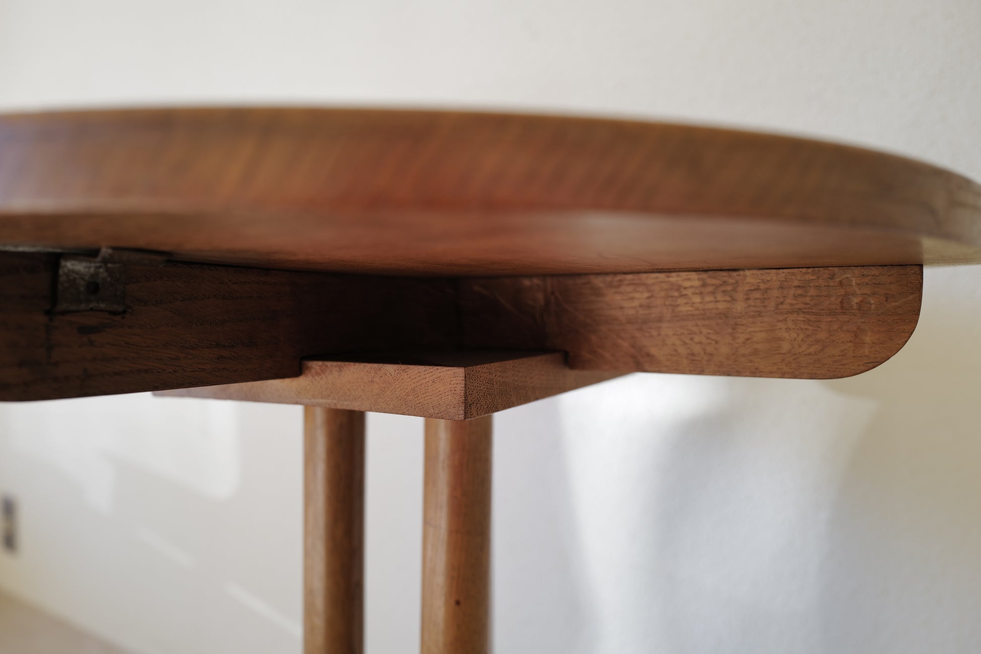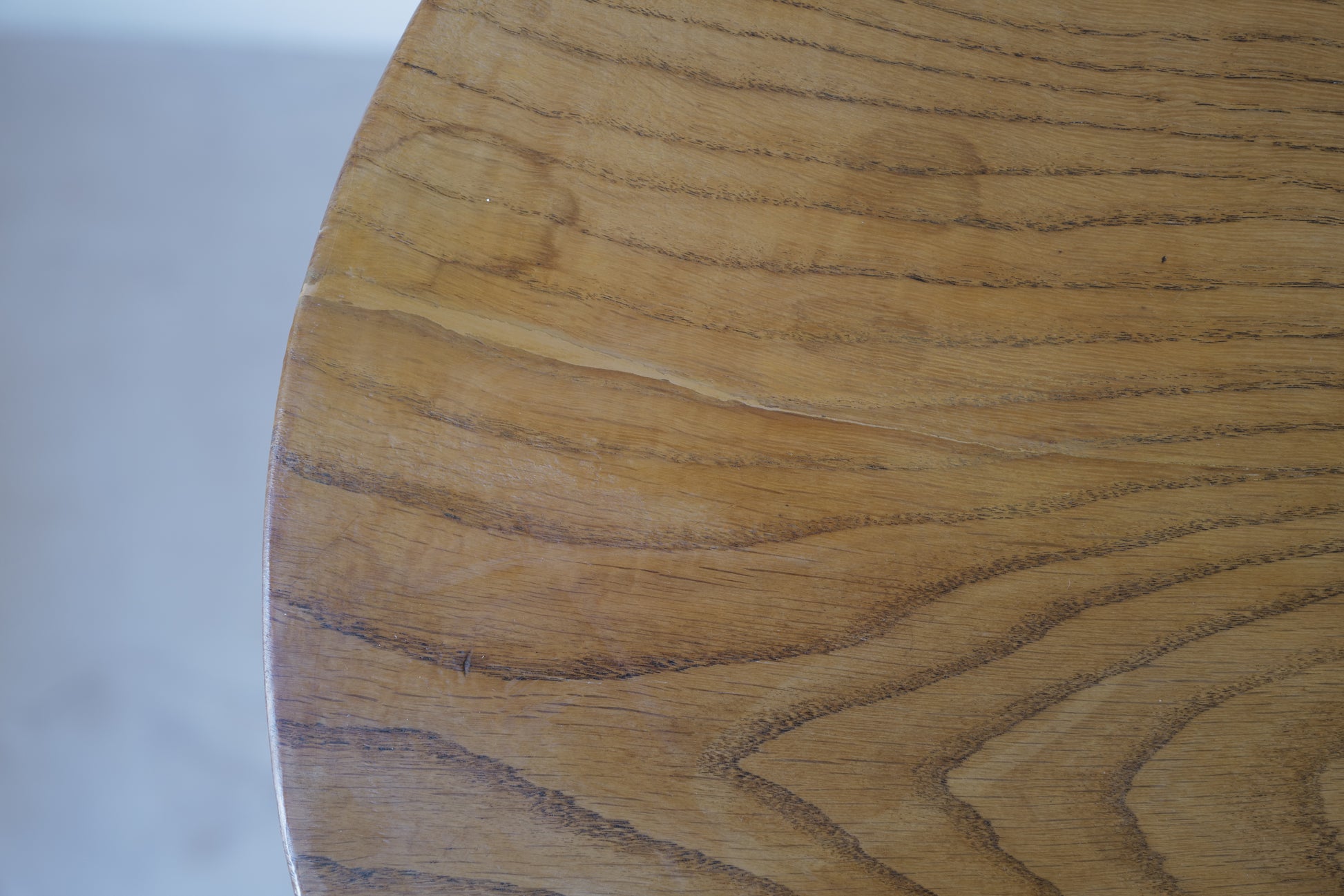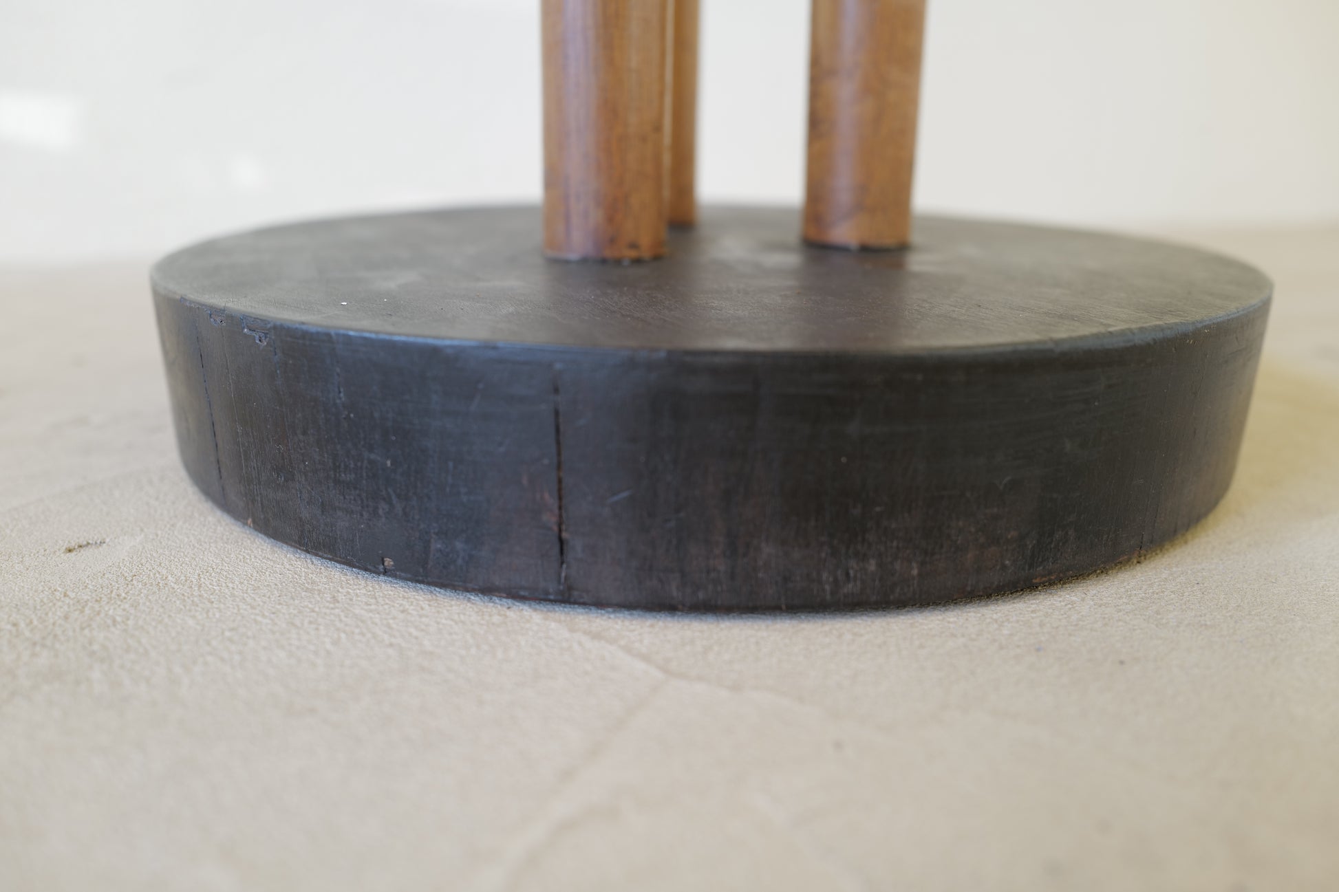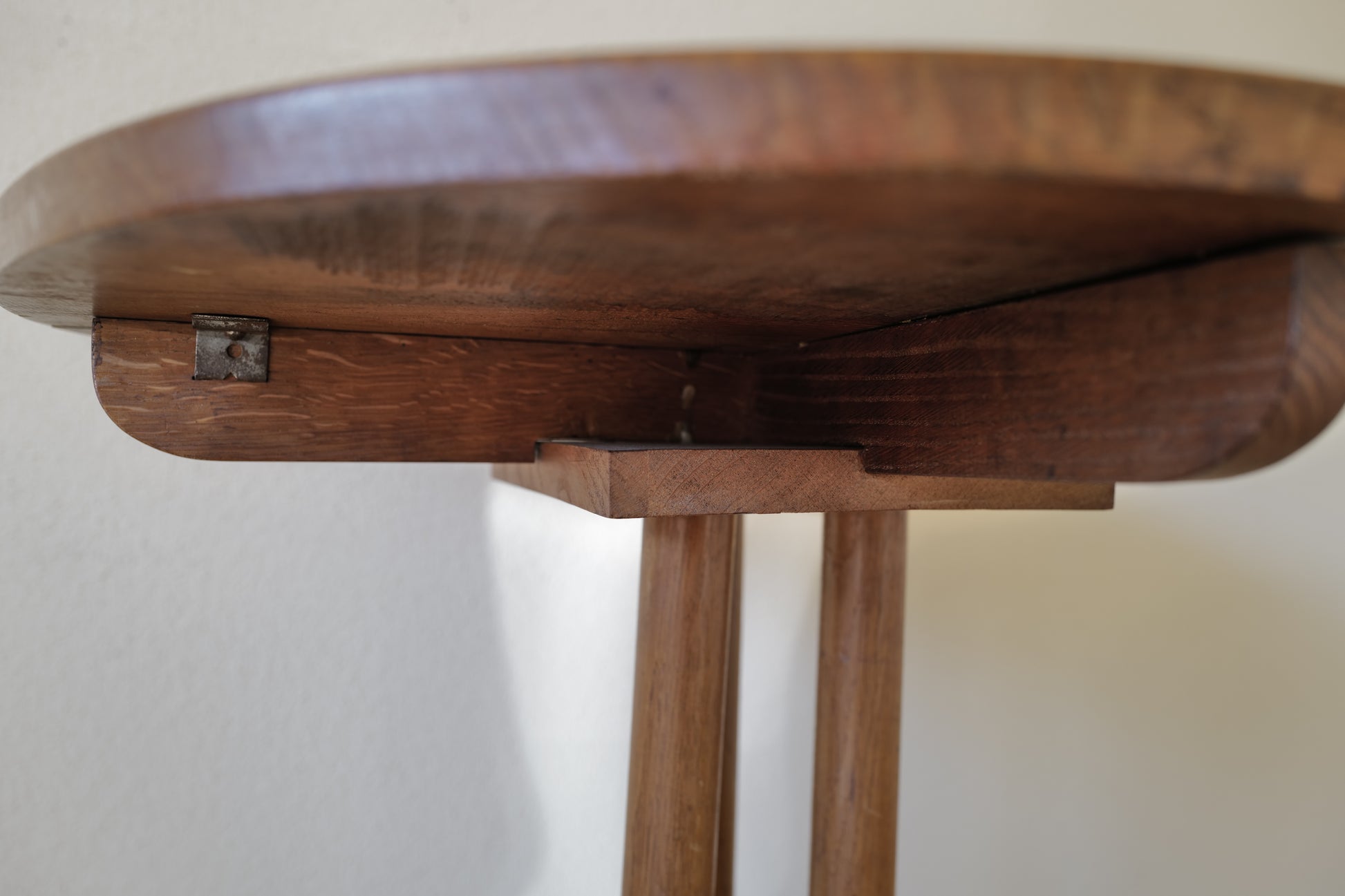 1920年代から30年代にオランダで製造されたコーヒーテーブル。アールデコ期のオランダで主流となっていたアムステルダム派とハーグ派。こちらはハーグ派の作品になります。アムステルダム派とは対照的に、ハーグ派は明るい木の色と直線が特徴で、より未来的な構成主義スタイルで制作された作品が多く見られます。状態の方ですが天板に修復跡とやや反りがございますが100年前のものとしては大切に扱われてきたものだと推測できます。