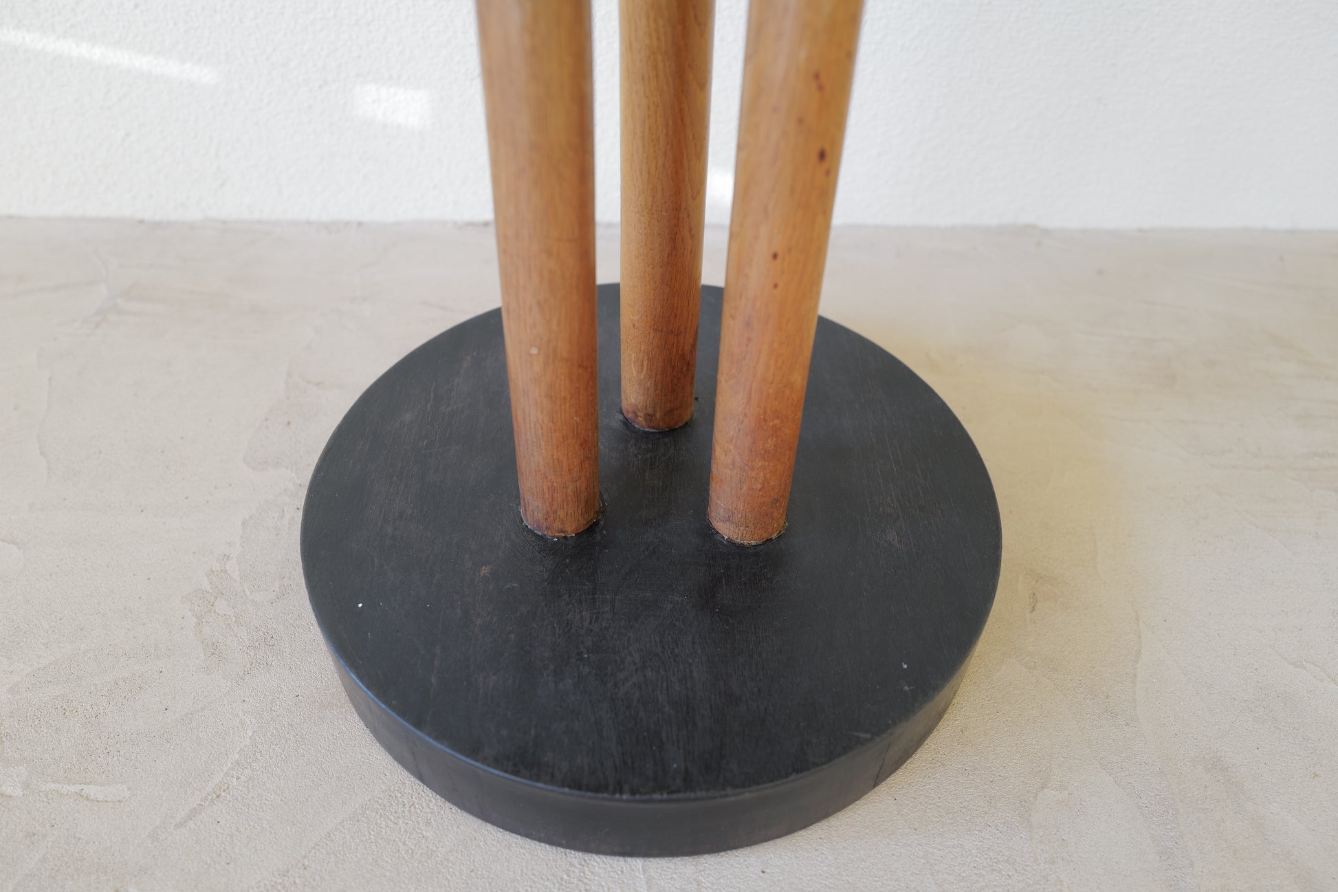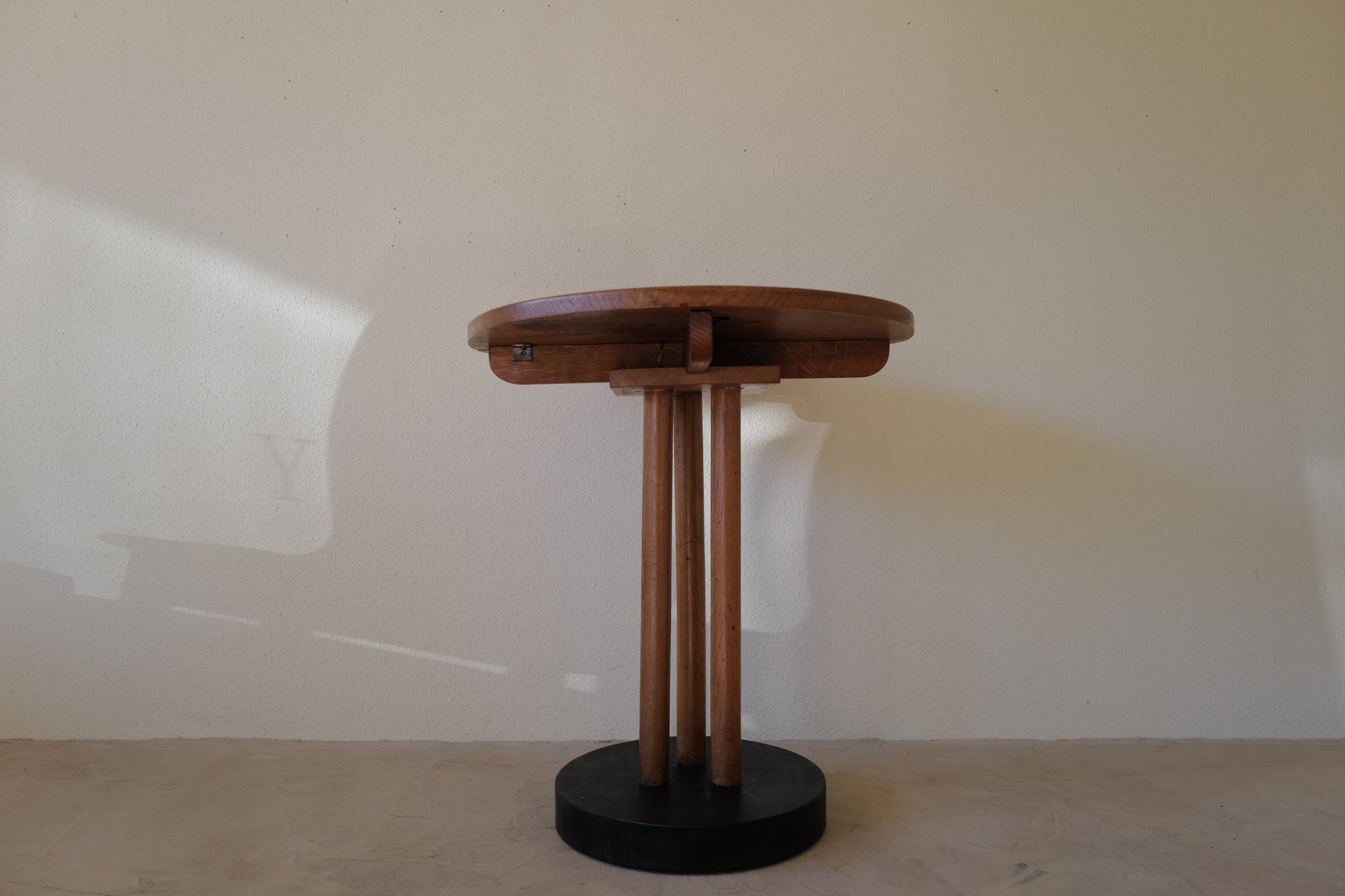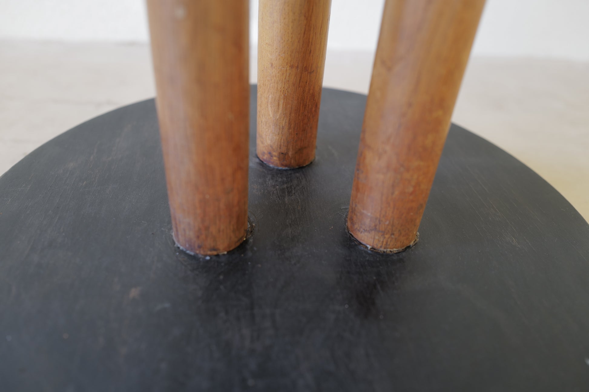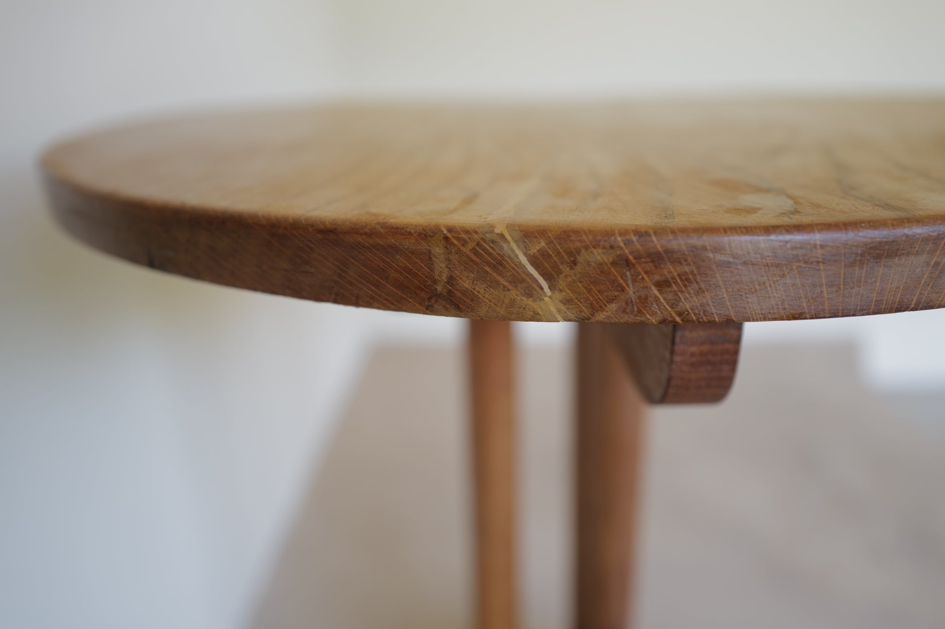 1920年代から30年代にオランダで製造されたコーヒーテーブル。アールデコ期のオランダで主流となっていたアムステルダム派とハーグ派。こちらはハーグ派の作品になります。アムステルダム派とは対照的に、ハーグ派は明るい木の色と直線が特徴で、より未来的な構成主義スタイルで制作された作品が多く見られます。状態の方ですが天板に修復跡とやや反りがございますが100年前のものとしては大切に扱われてきたものだと推測できます。