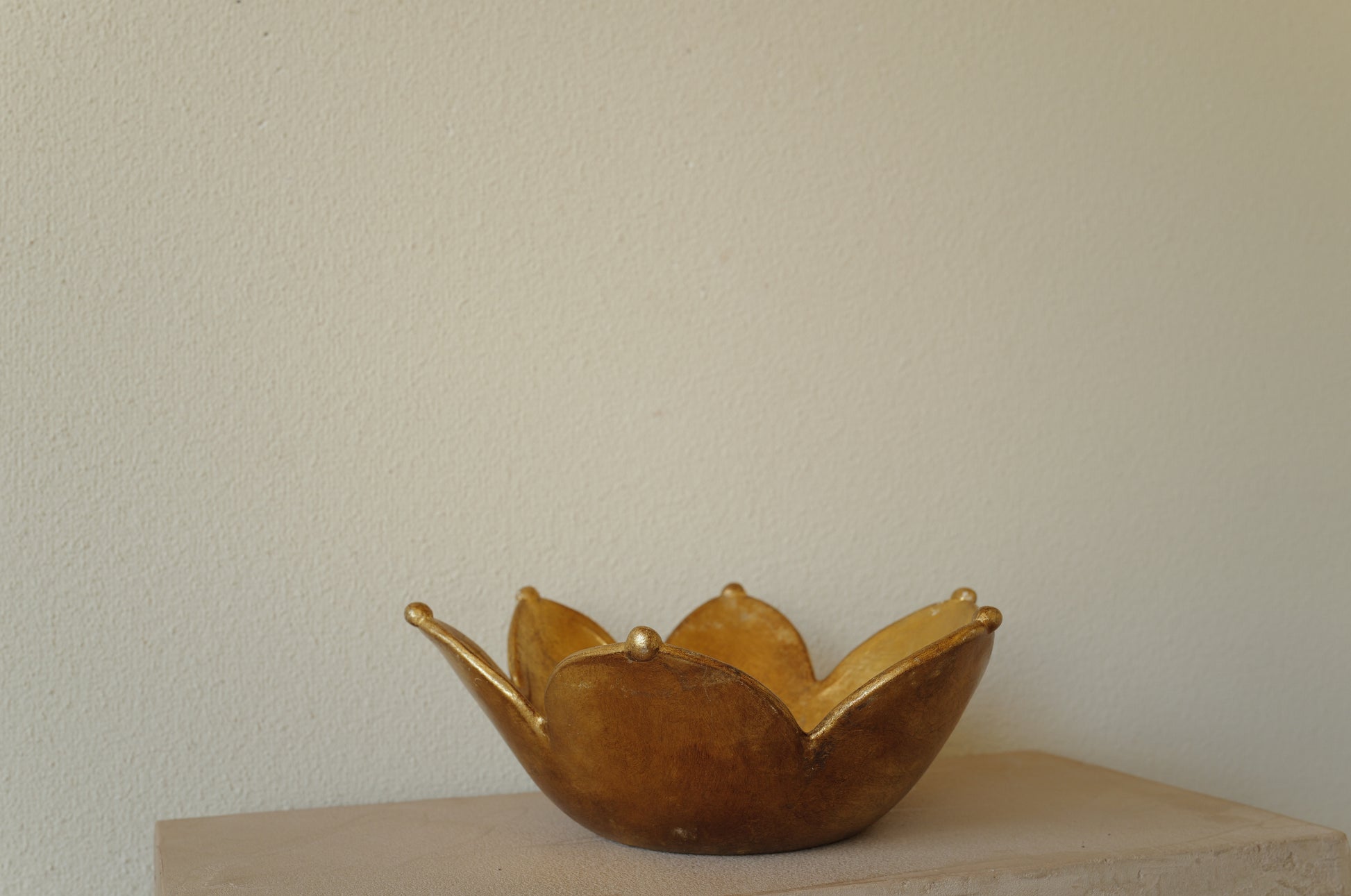 1980s~90sにイタリアで製作された陶器のbowl。大きな花のような形に全体をゴールドに。サイズ共にインパクトのある作品になります。
