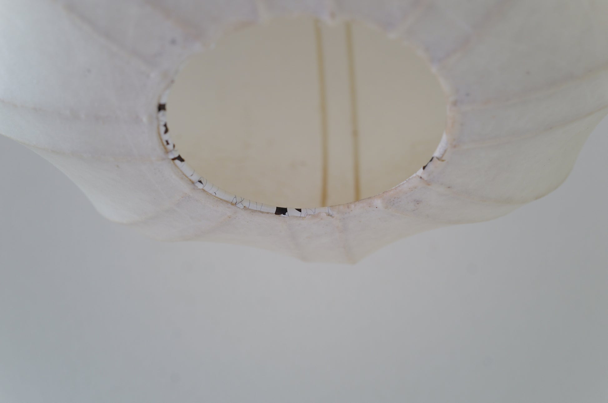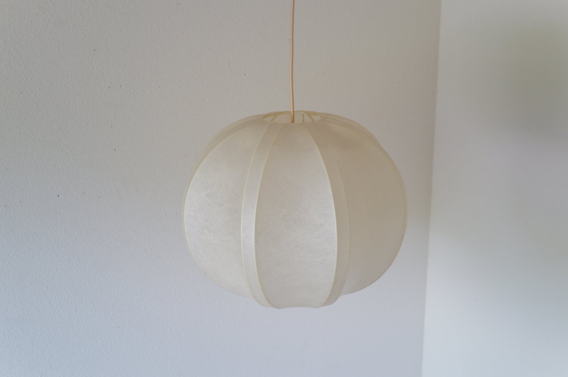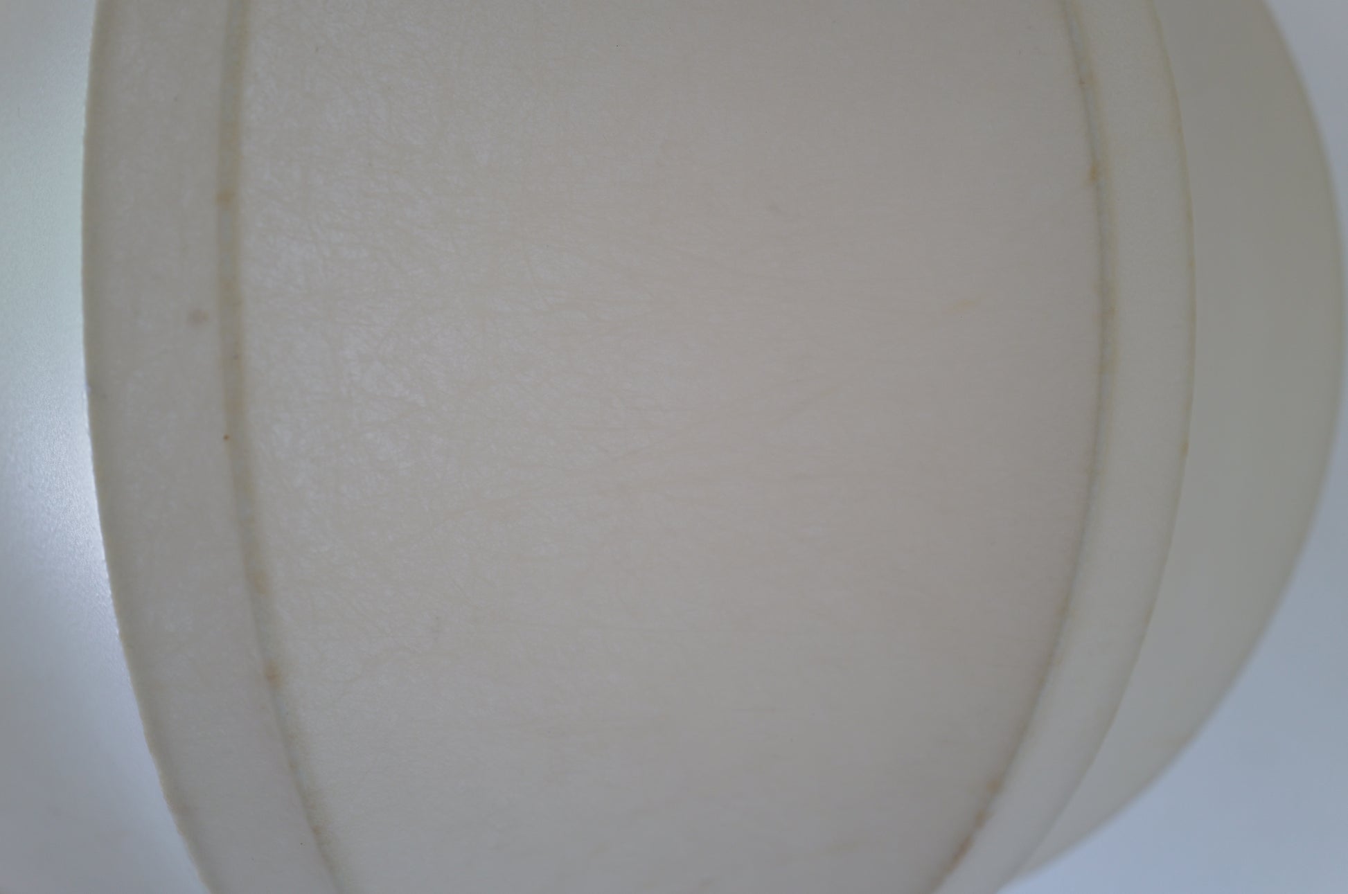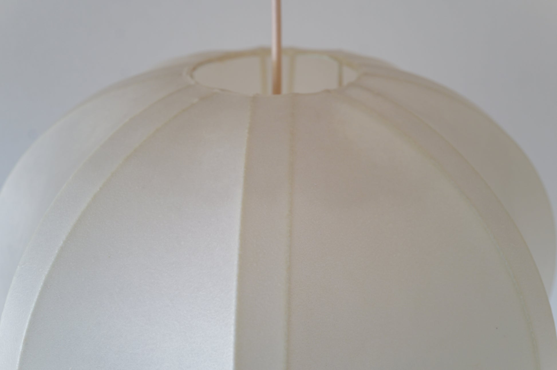 1960年代ドイツのゴールドカント社で作られた珍しい形のコクーンランプ。和紙のような見た目ですが、また違った質感のコクーンシェイド。ワイヤーベースにプラスチック繊維を吹きかけたシェードはなんとも柔らかく、ぷっくりとした質感に可愛さが滲み出る、とても面白い作品です。状態も60年以上前のもとは思えない程良い状態を保っております。