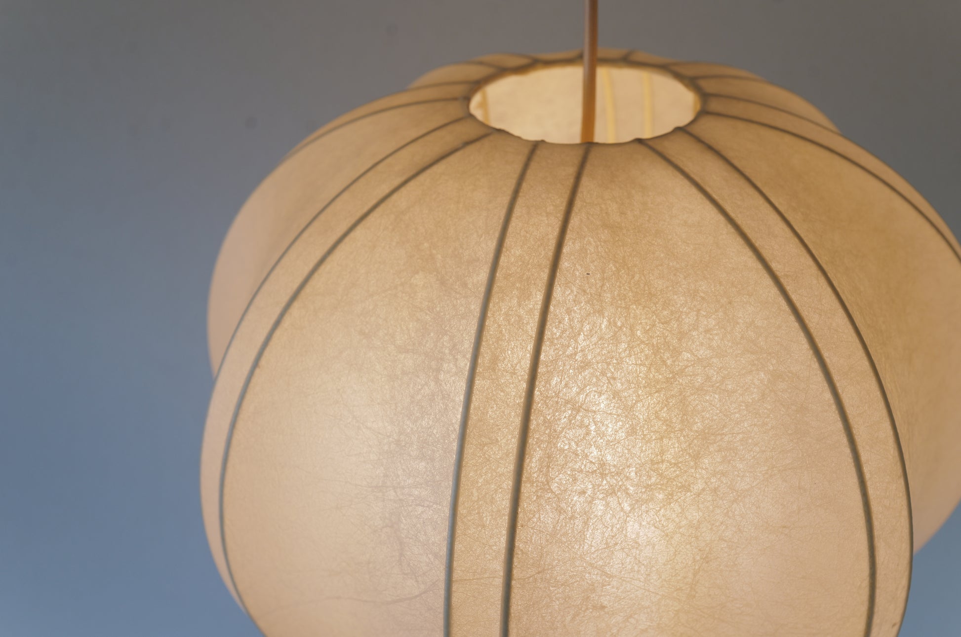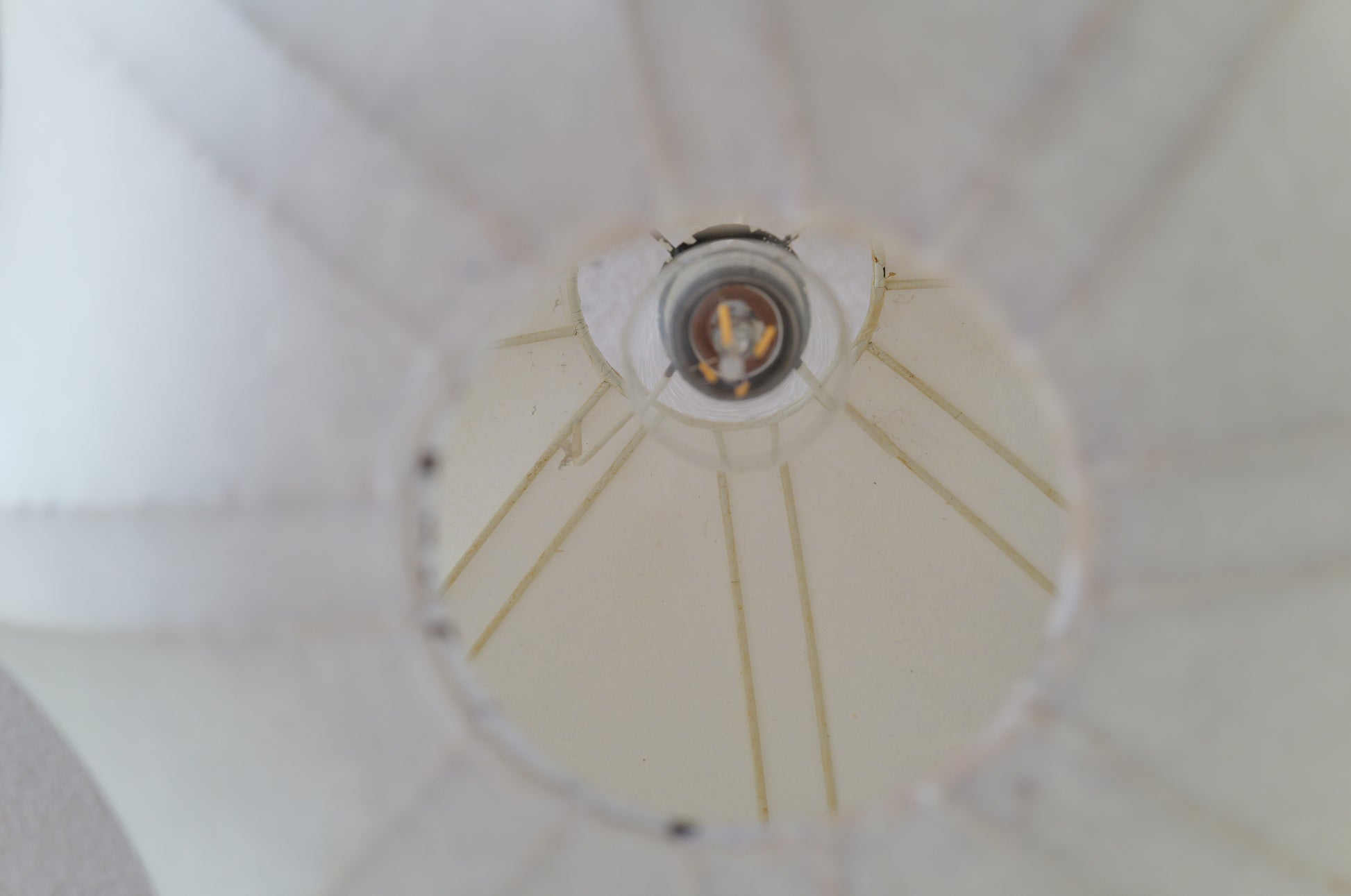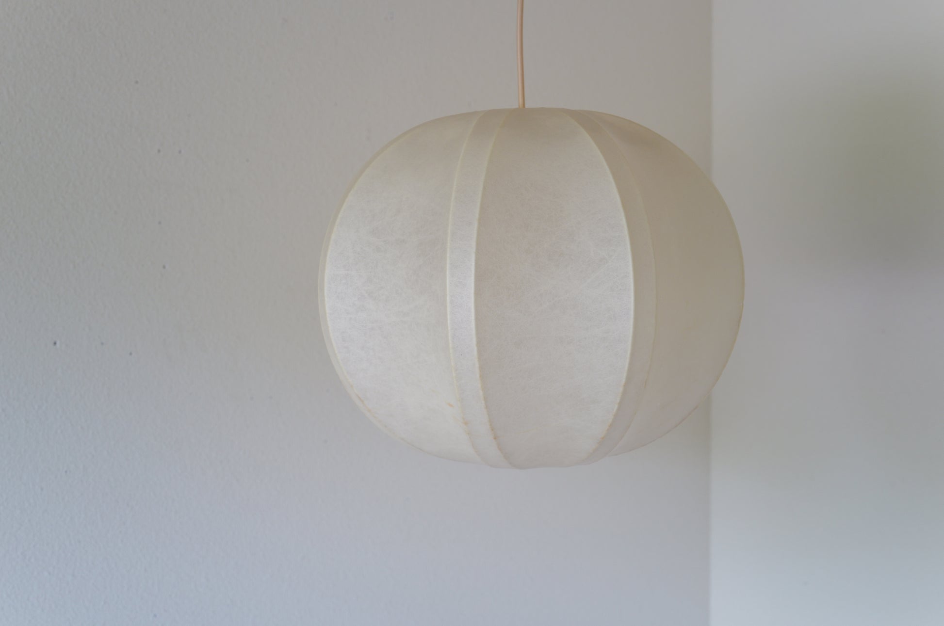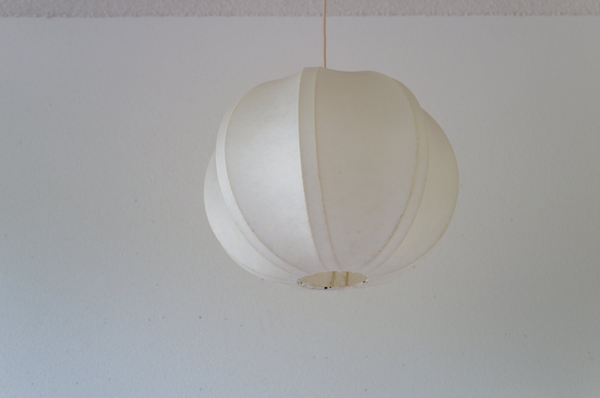 1960年代ドイツのゴールドカント社で作られた珍しい形のコクーンランプ。和紙のような見た目ですが、また違った質感のコクーンシェイド。ワイヤーベースにプラスチック繊維を吹きかけたシェードはなんとも柔らかく、ぷっくりとした質感に可愛さが滲み出る、とても面白い作品です。状態も60年以上前のもとは思えない程良い状態を保っております。