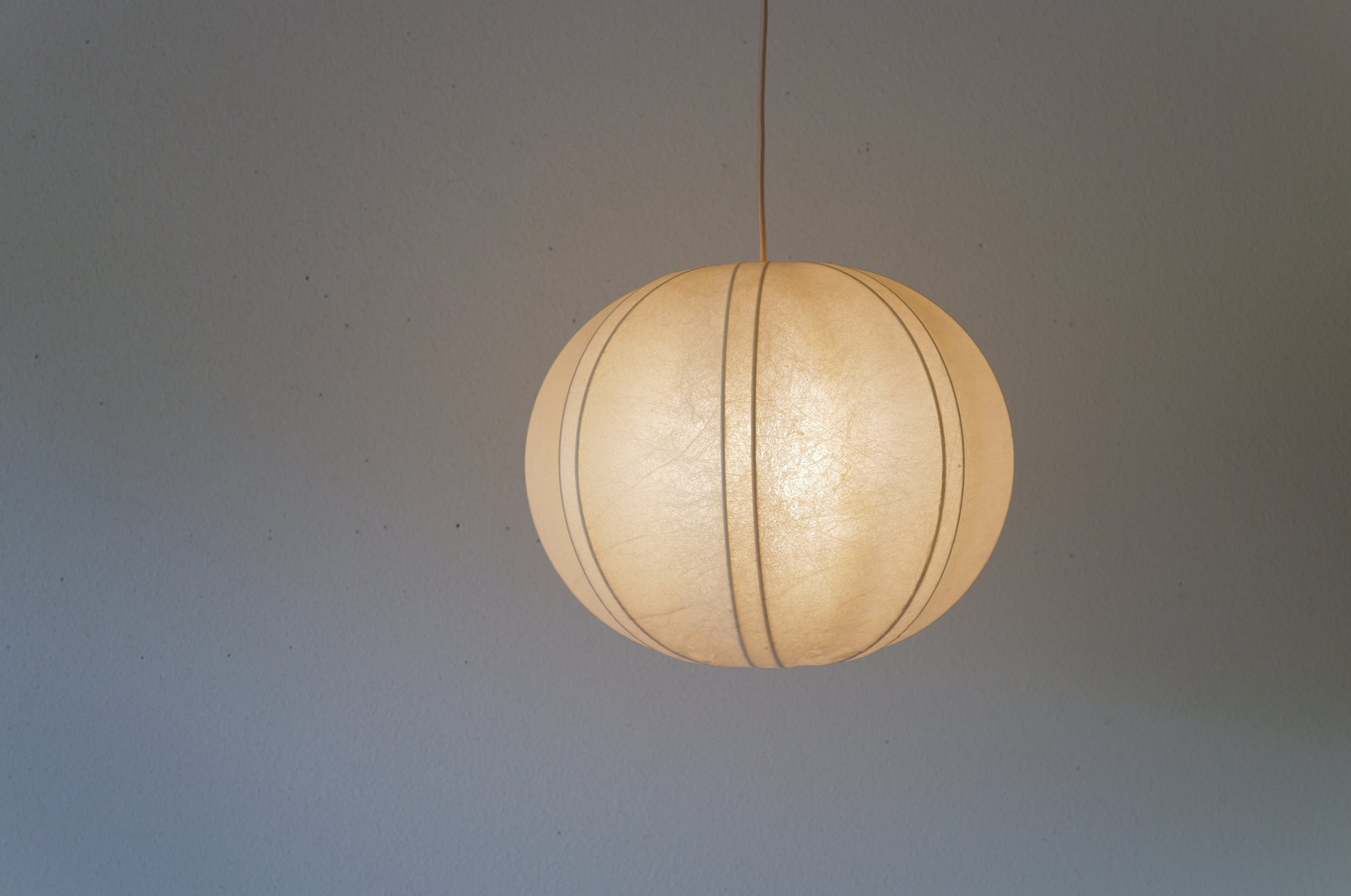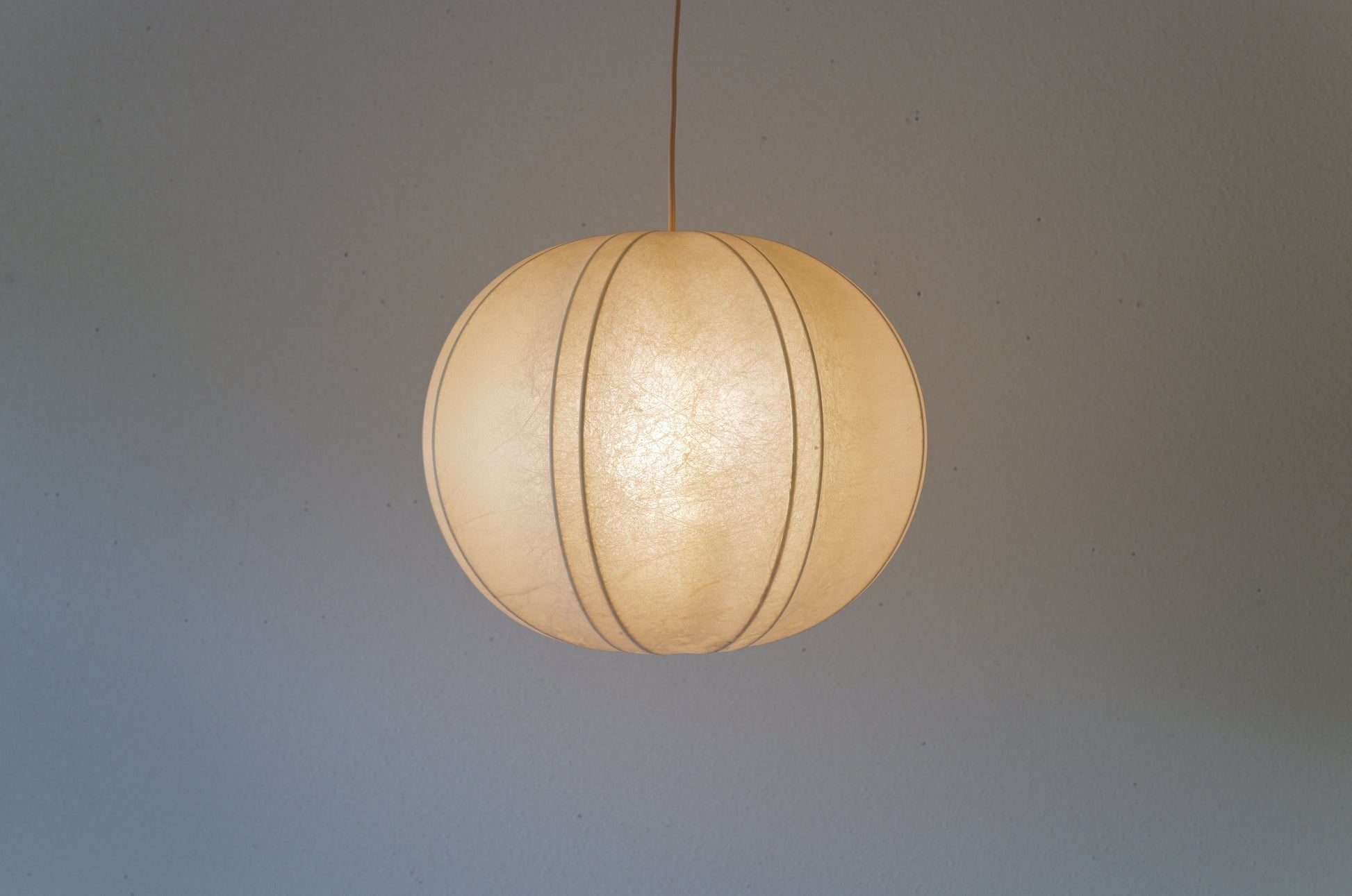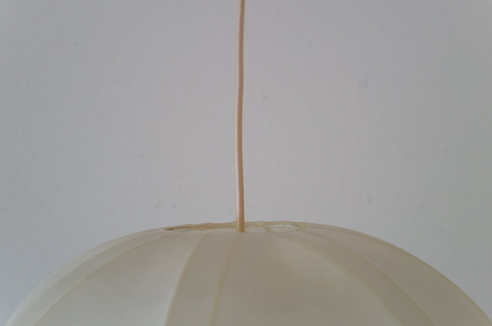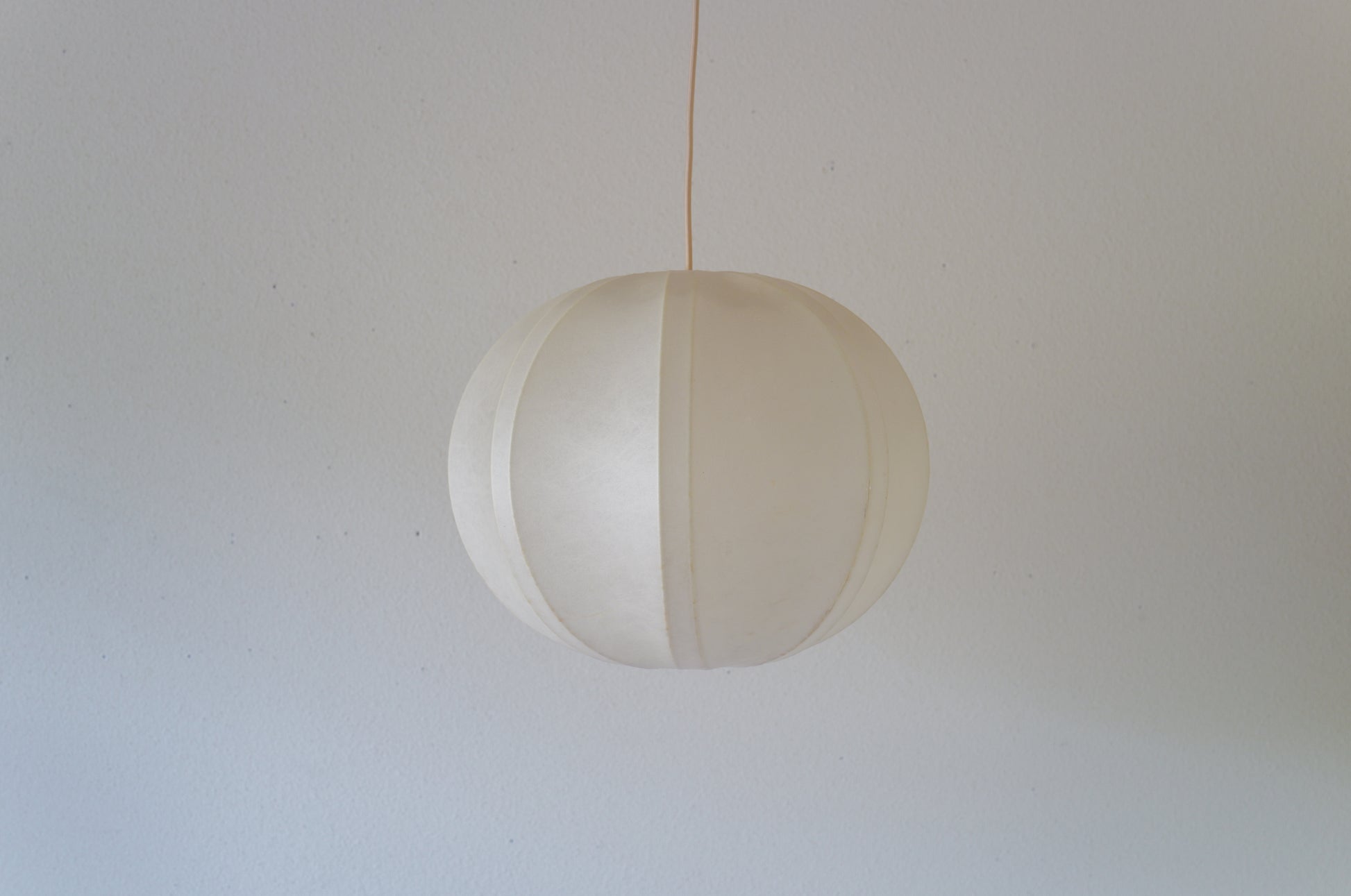 1960年代ドイツのゴールドカント社で作られた珍しい形のコクーンランプ。和紙のような見た目ですが、また違った質感のコクーンシェイド。ワイヤーベースにプラスチック繊維を吹きかけたシェードはなんとも柔らかく、ぷっくりとした質感に可愛さが滲み出る、とても面白い作品です。状態も60年以上前のもとは思えない程良い状態を保っております。