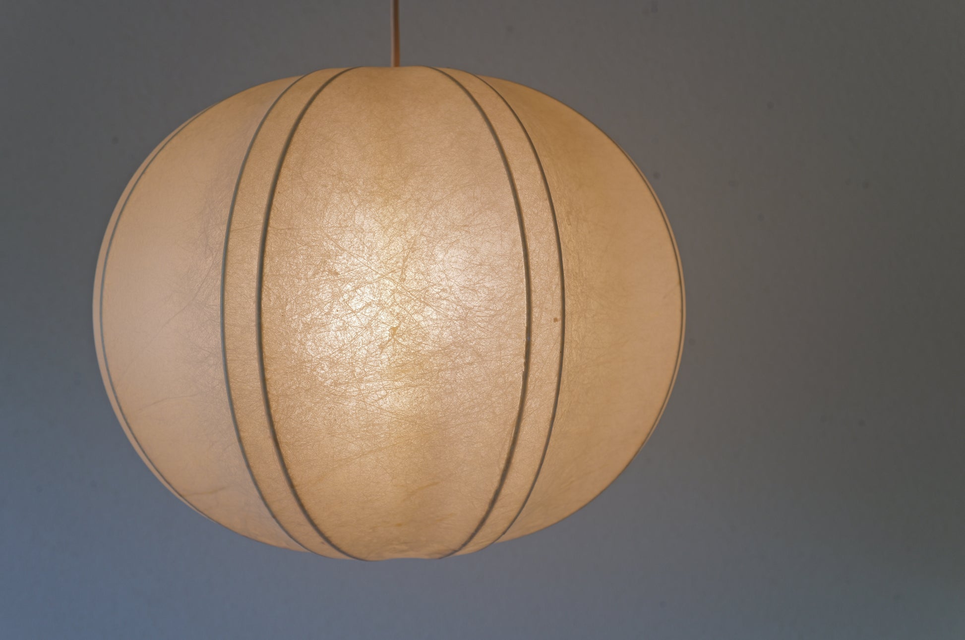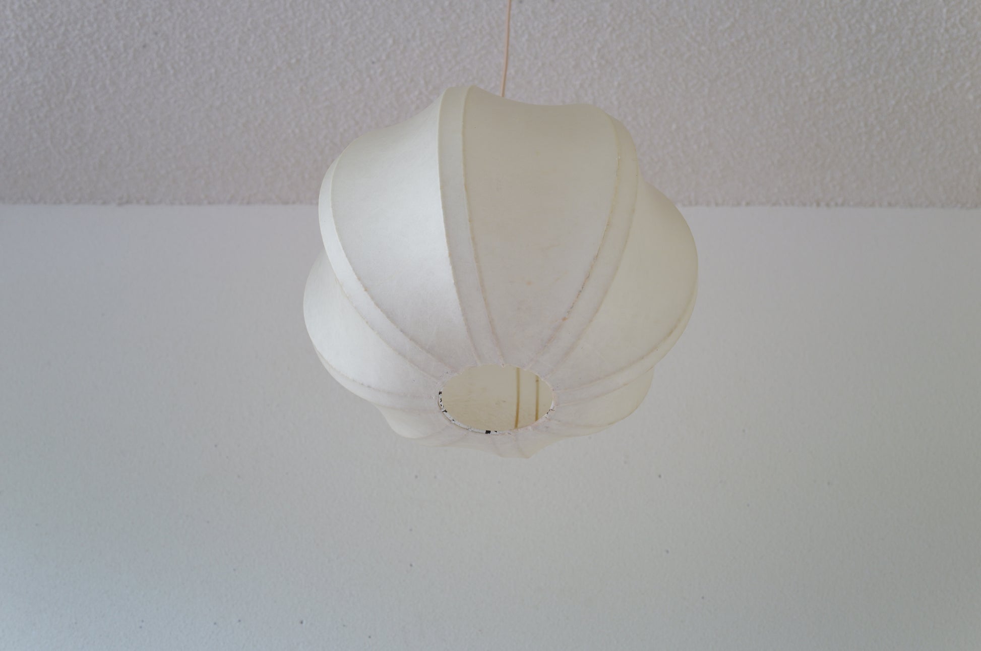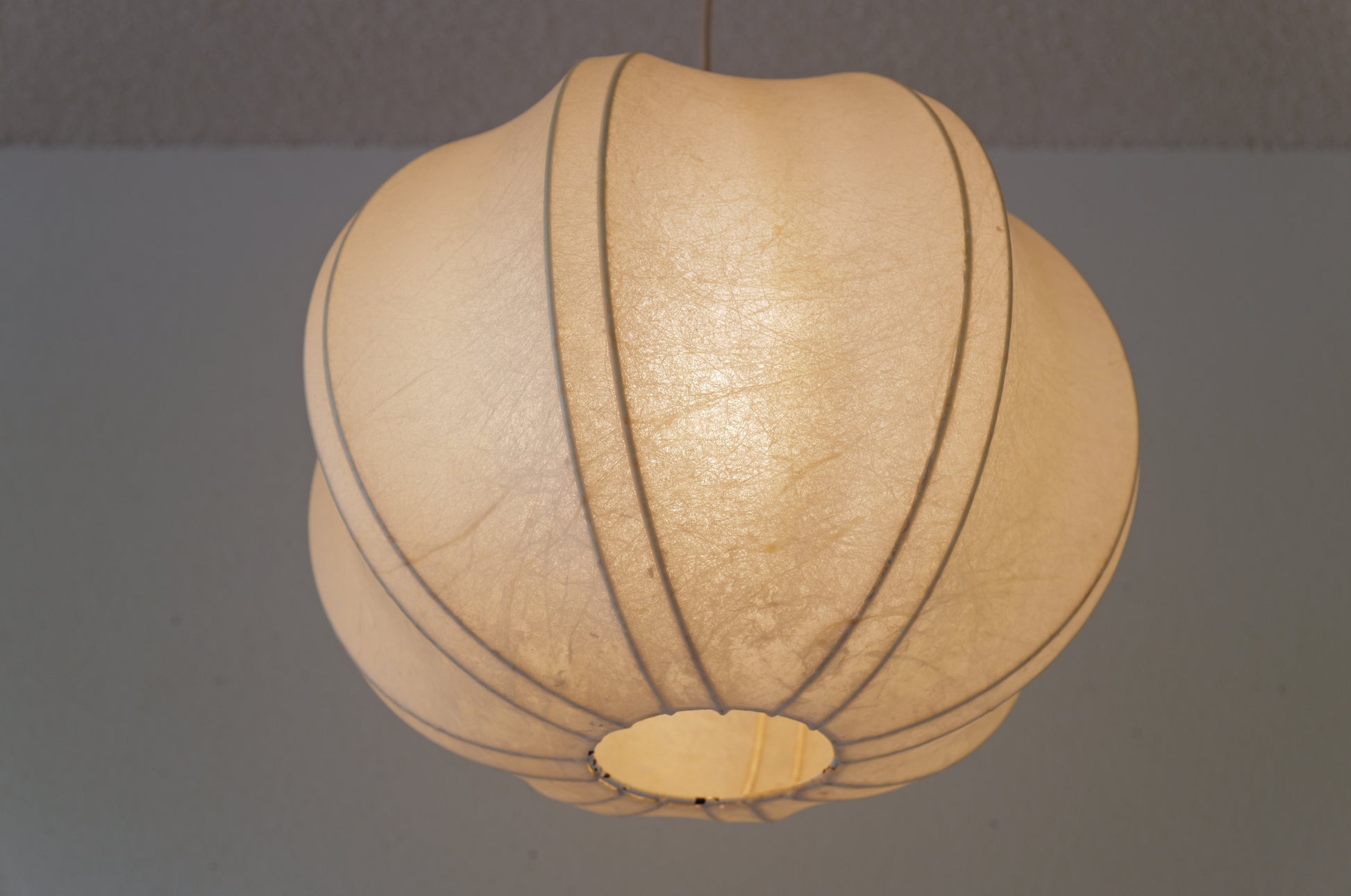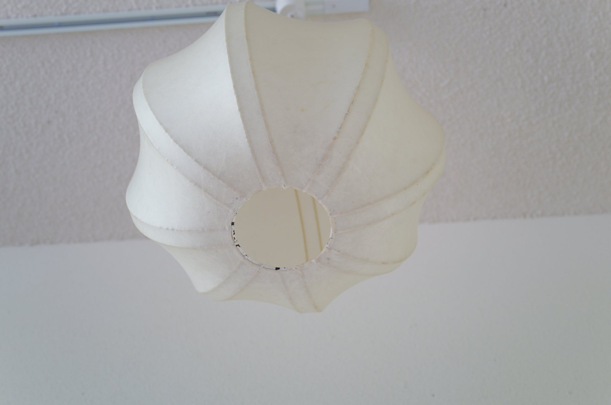 1960年代ドイツのゴールドカント社で作られた珍しい形のコクーンランプ。和紙のような見た目ですが、また違った質感のコクーンシェイド。ワイヤーベースにプラスチック繊維を吹きかけたシェードはなんとも柔らかく、ぷっくりとした質感に可愛さが滲み出る、とても面白い作品です。状態も60年以上前のもとは思えない程良い状態を保っております。
