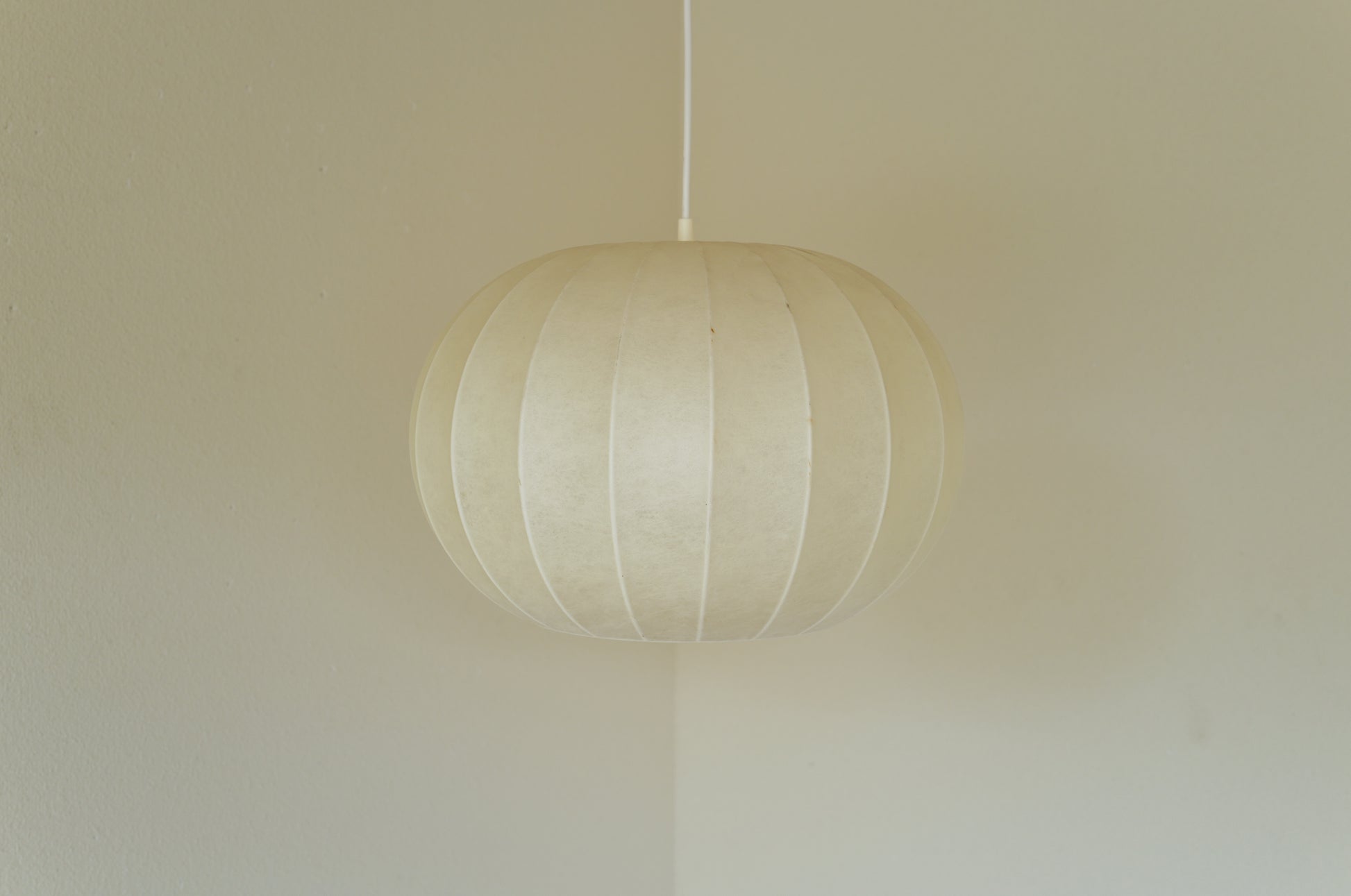 1960sドイツのゴールドカント社で製造されたコクーンランプ。和紙のような見た目ですが、また違った質感のコクーンシェイド。ワイヤーベースにプラスチック繊維を吹きかけたシェードはなんとも柔らかく、ぷっくりとした質感に可愛さが滲み出るとても面白い作品です。状態も60年以上前のもとは思えない程良い状態を保っております。