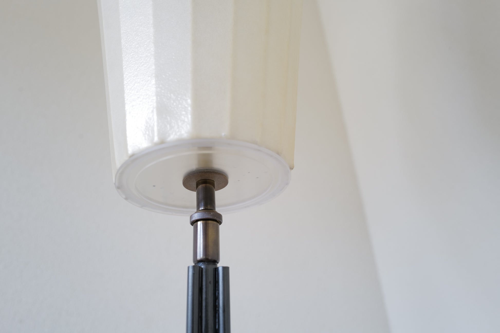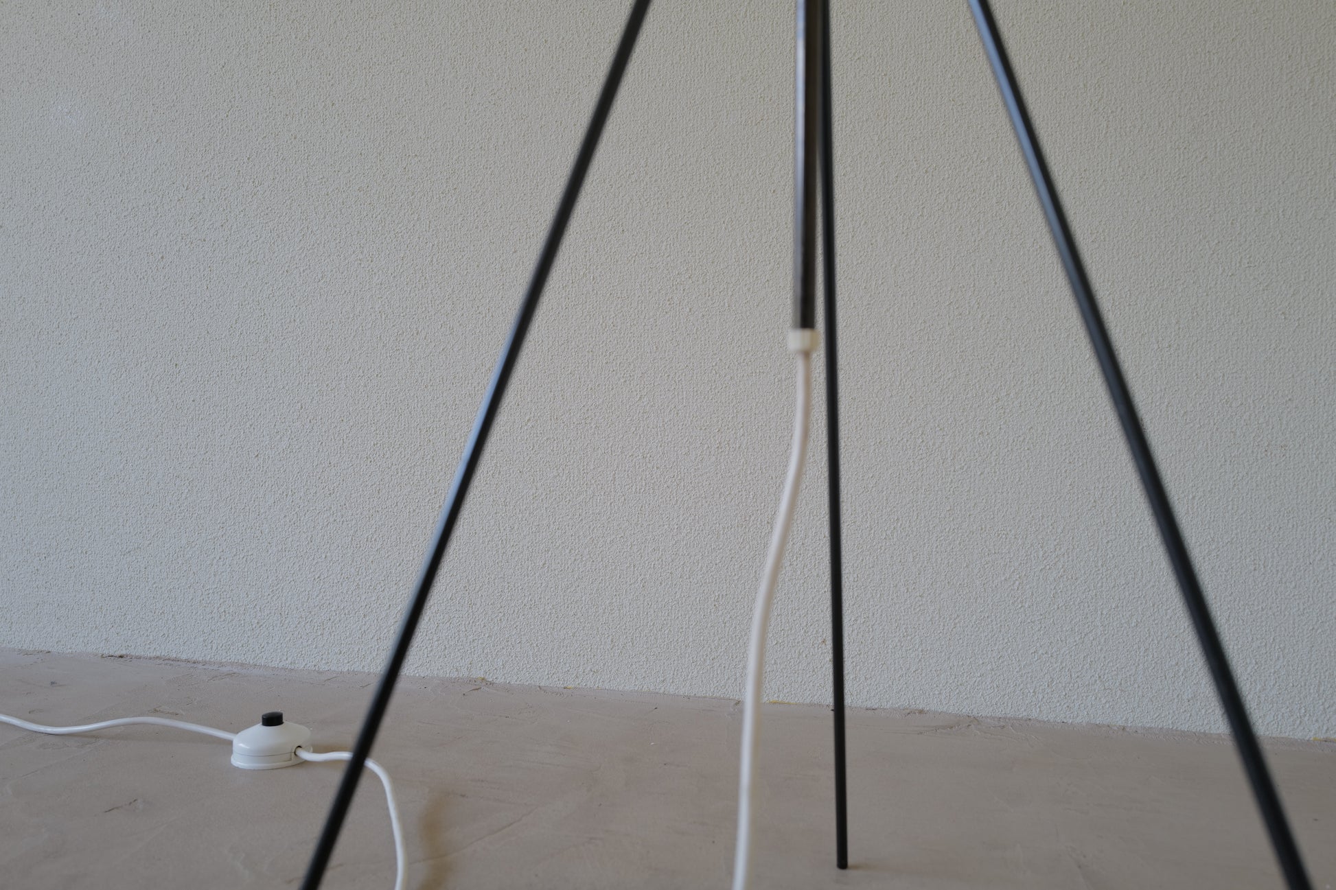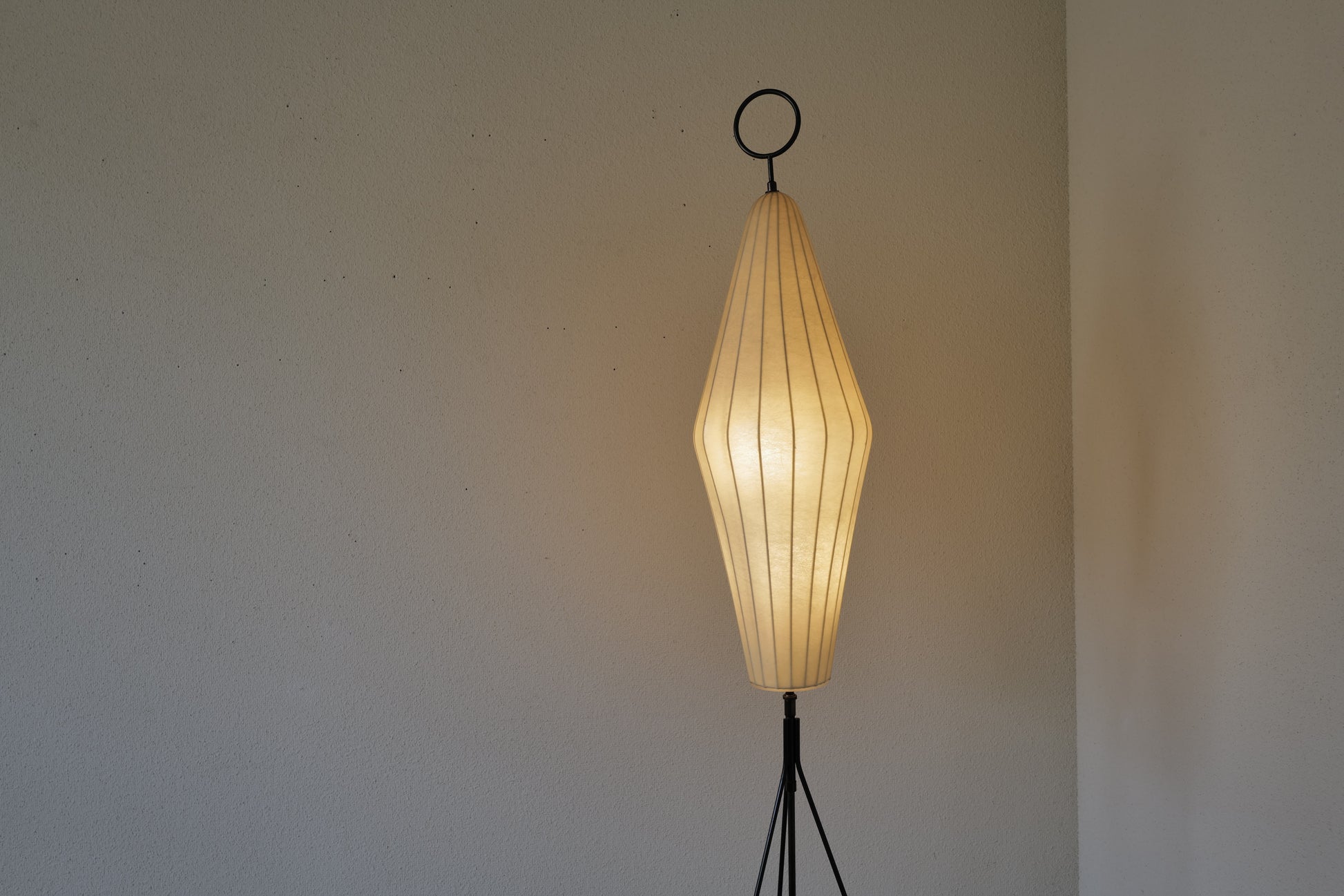 1960年代 ドイツで製造されたコクーンフロアランプ。鉄製の三脚足からの美しい佇まいはとても魅力的です。シンプルな作りですが存在感のある素晴らしい作品になります。状態の方は写真で確認しづらいですがシェードに3mmほどのキレと5mmほどのキレがございますが全体的には良好な状態を保っております。
