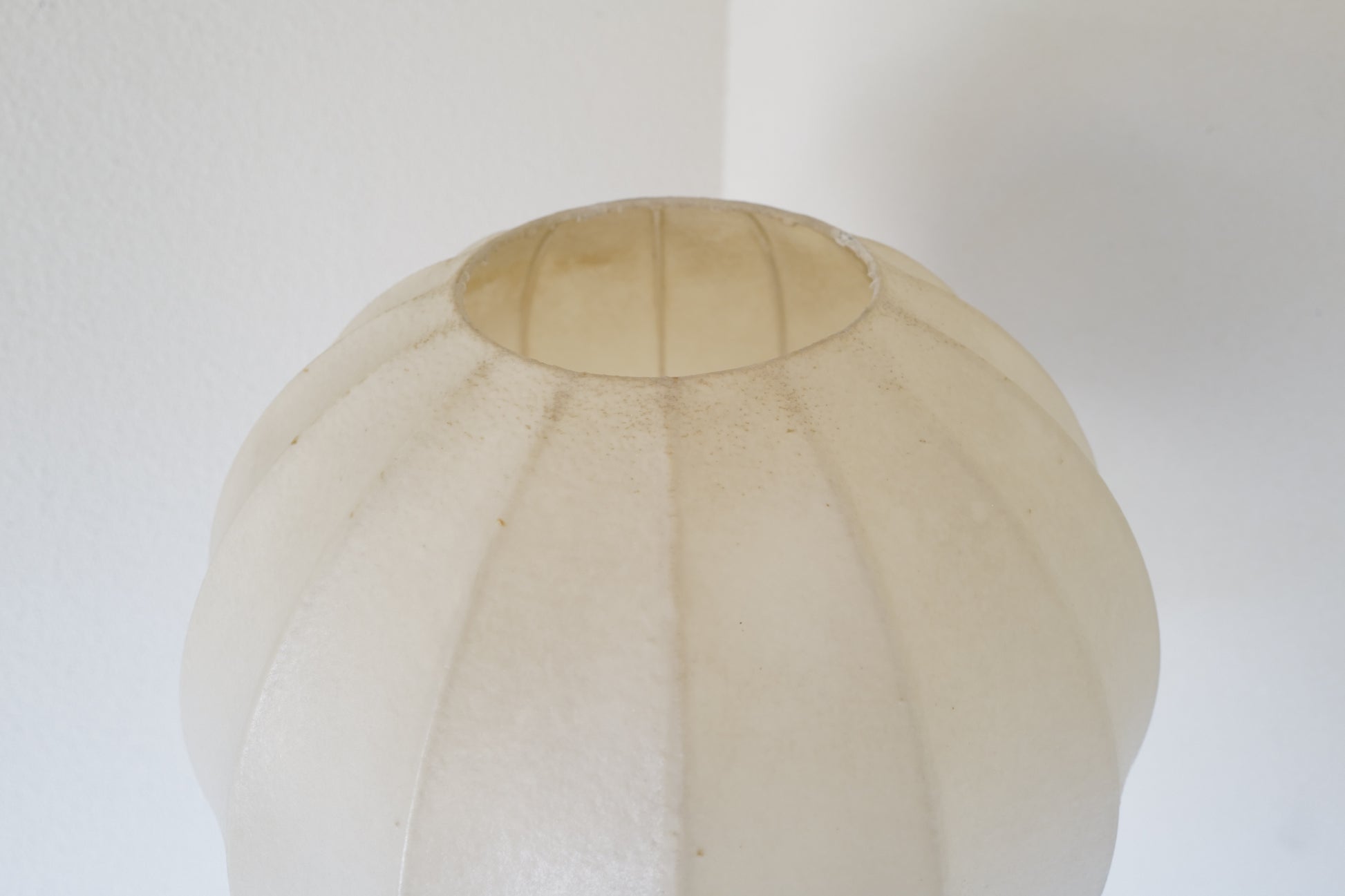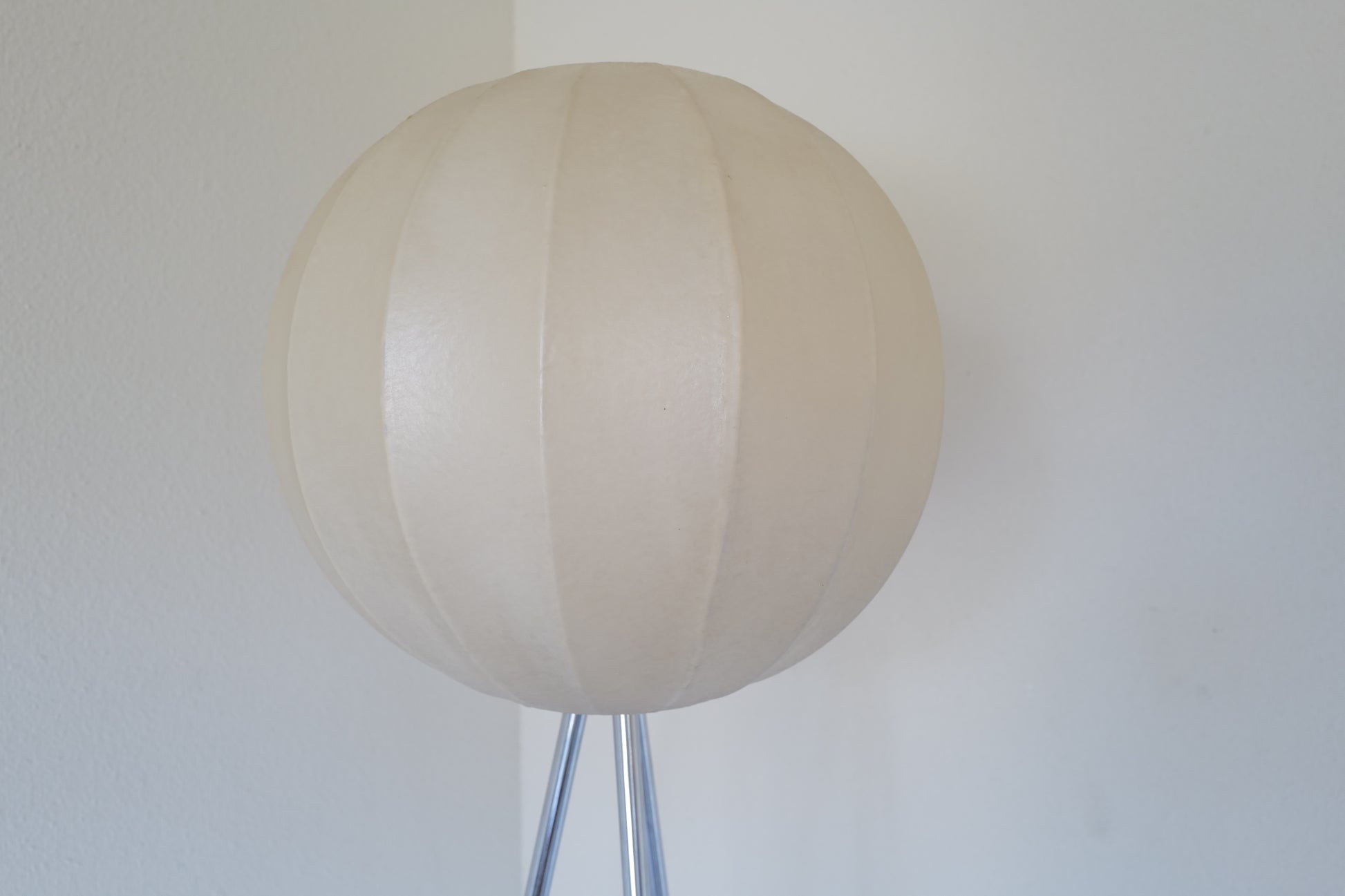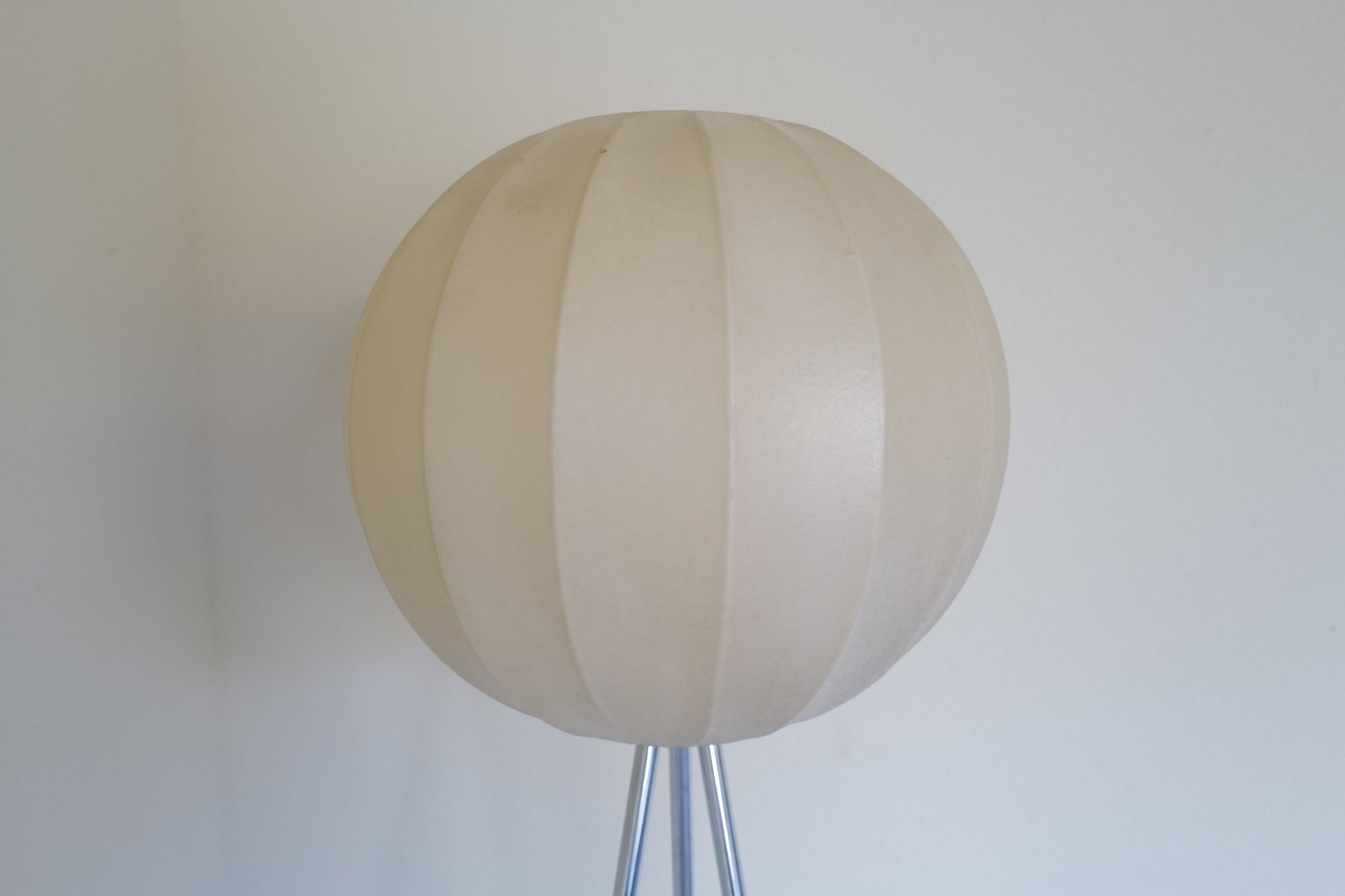 1960年代にドイツで作られたコクーンランプ。1つのコクーンシェイドでフロアランプとペンダントランプの2つを楽しんでいただけるようにフロア三脚とペンダント用のアタッチメントをご用意させて頂きました。シェイドの状態は破れなどはないです。経年による焼けがありますがとても雰囲気のある作品になります。