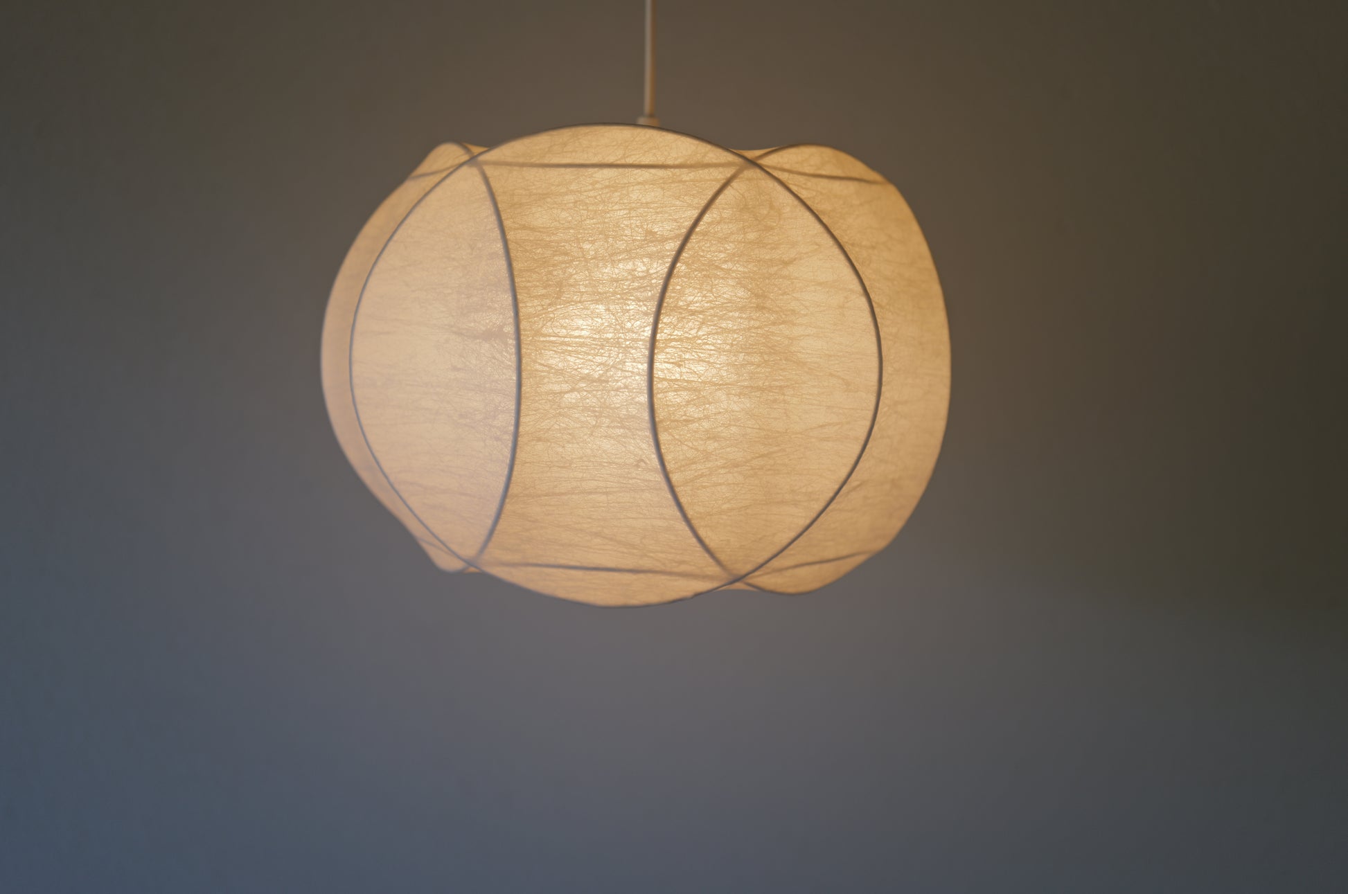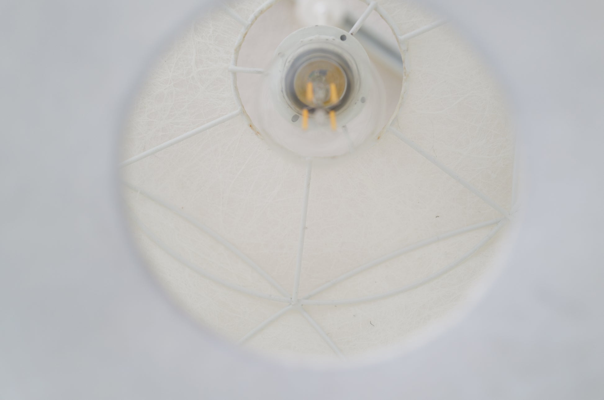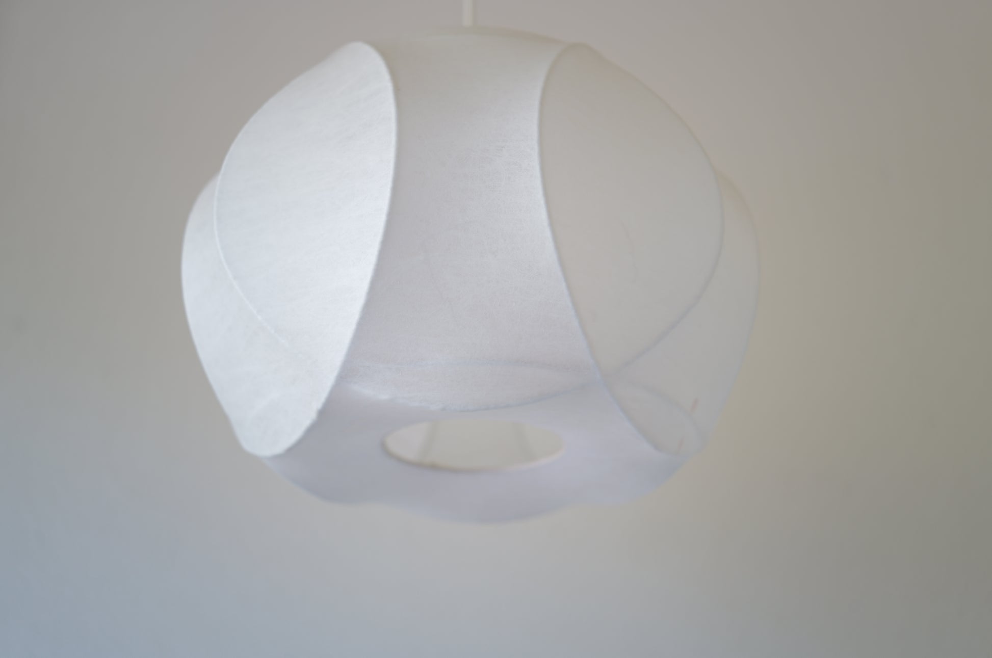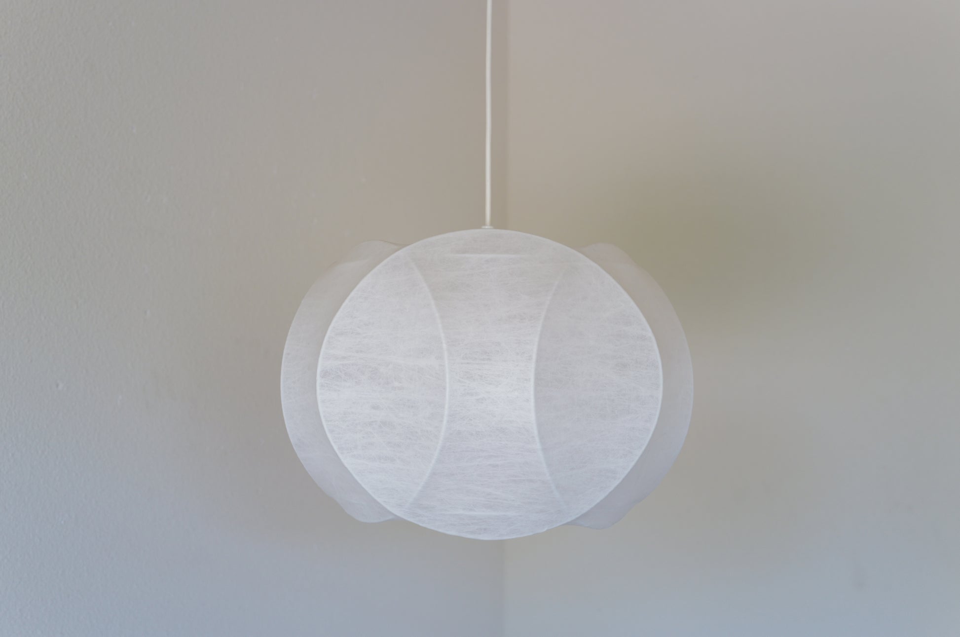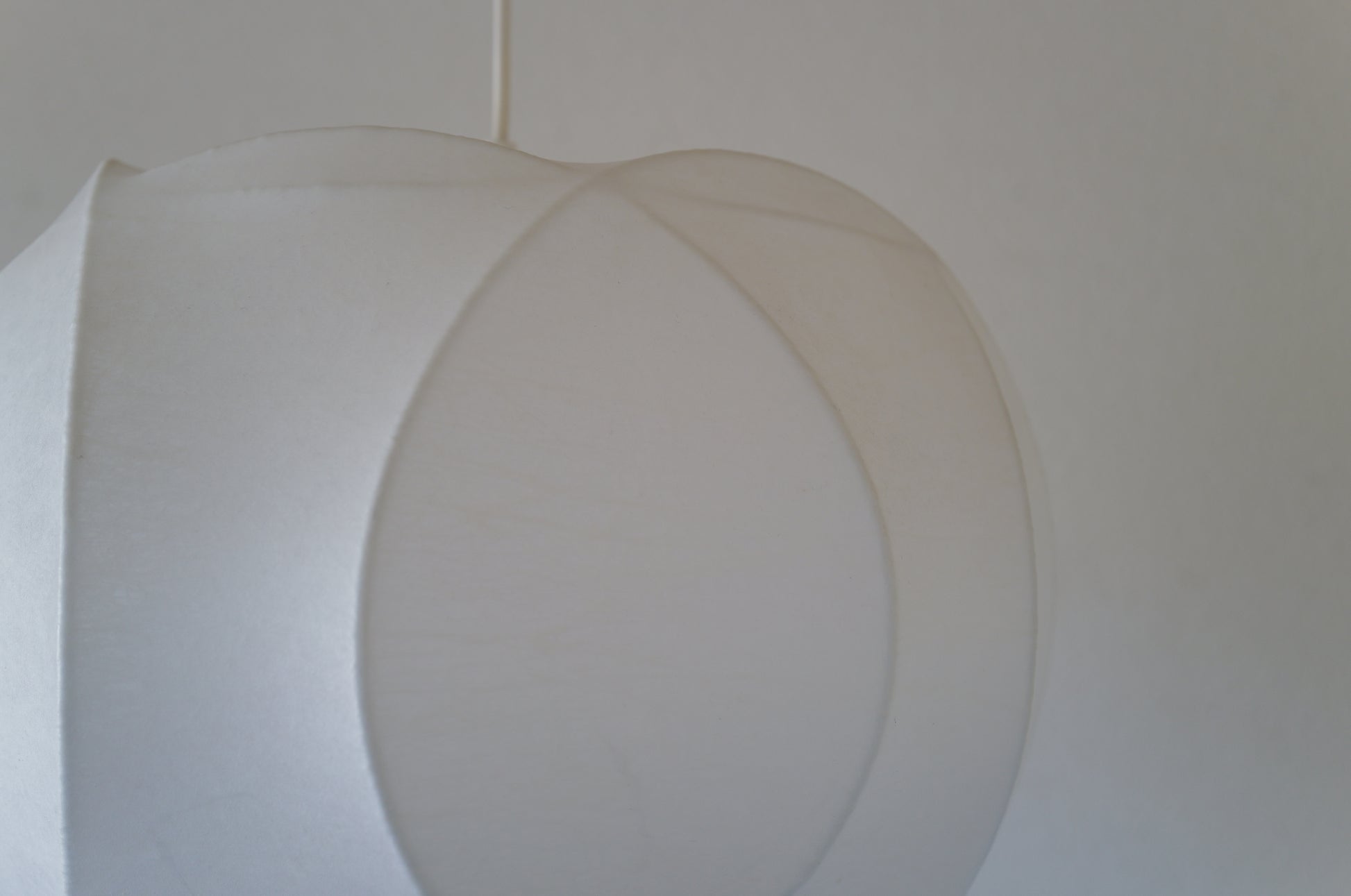 1970sドイツ又はイタリアで製造されたと思われるコクーンシェイド。こちらの作品、見る角度によって表情を変えてくれるとてもユニークな作品になります。コクーンの質感、状態ともにとても良いものになります。光を灯すと和紙のようになり、灯さない時の質感はなんとも言えない美しい質感になります。