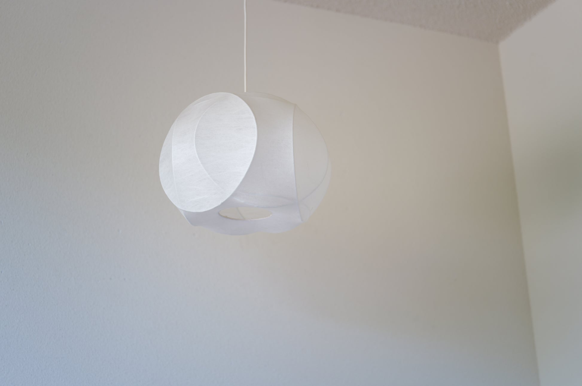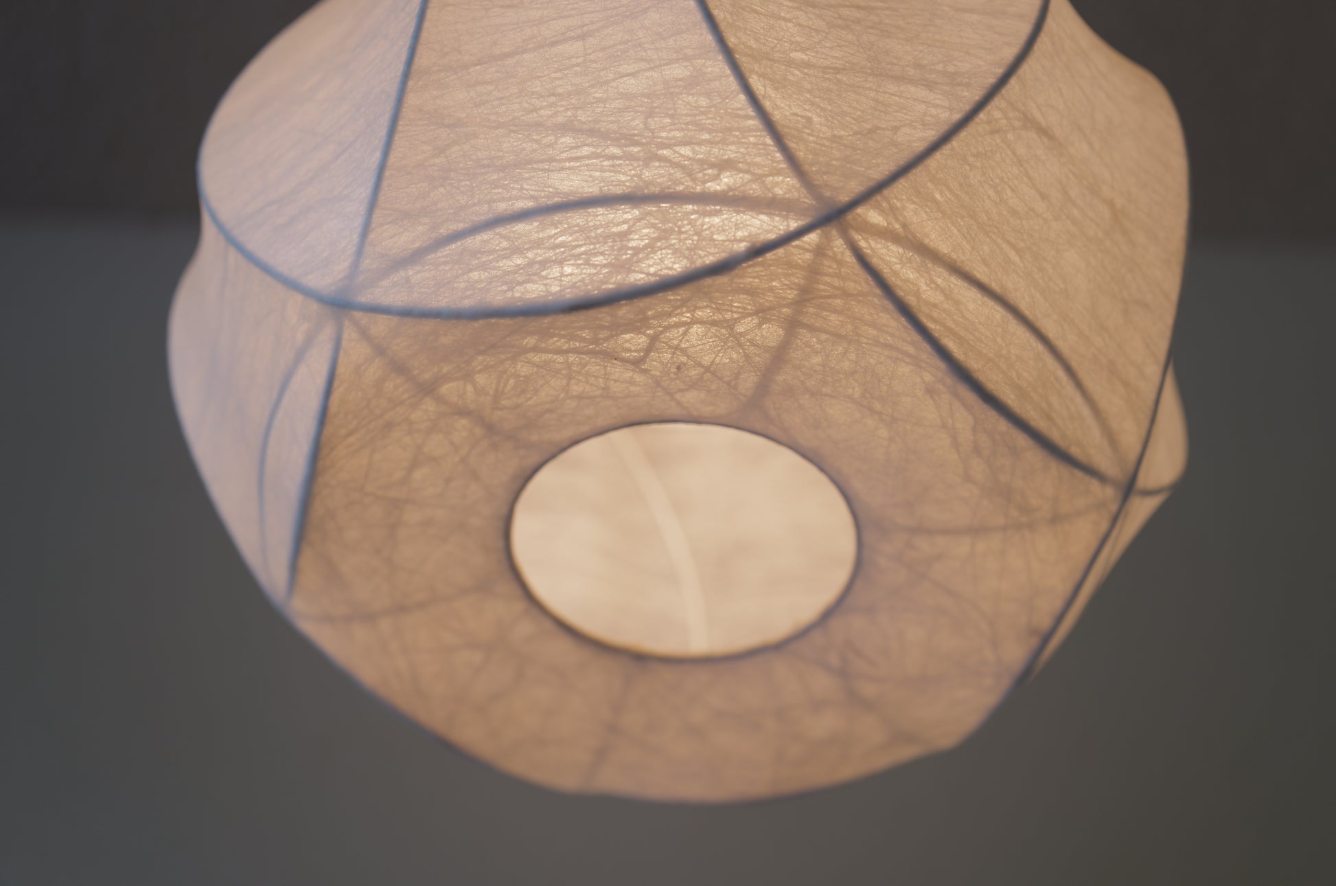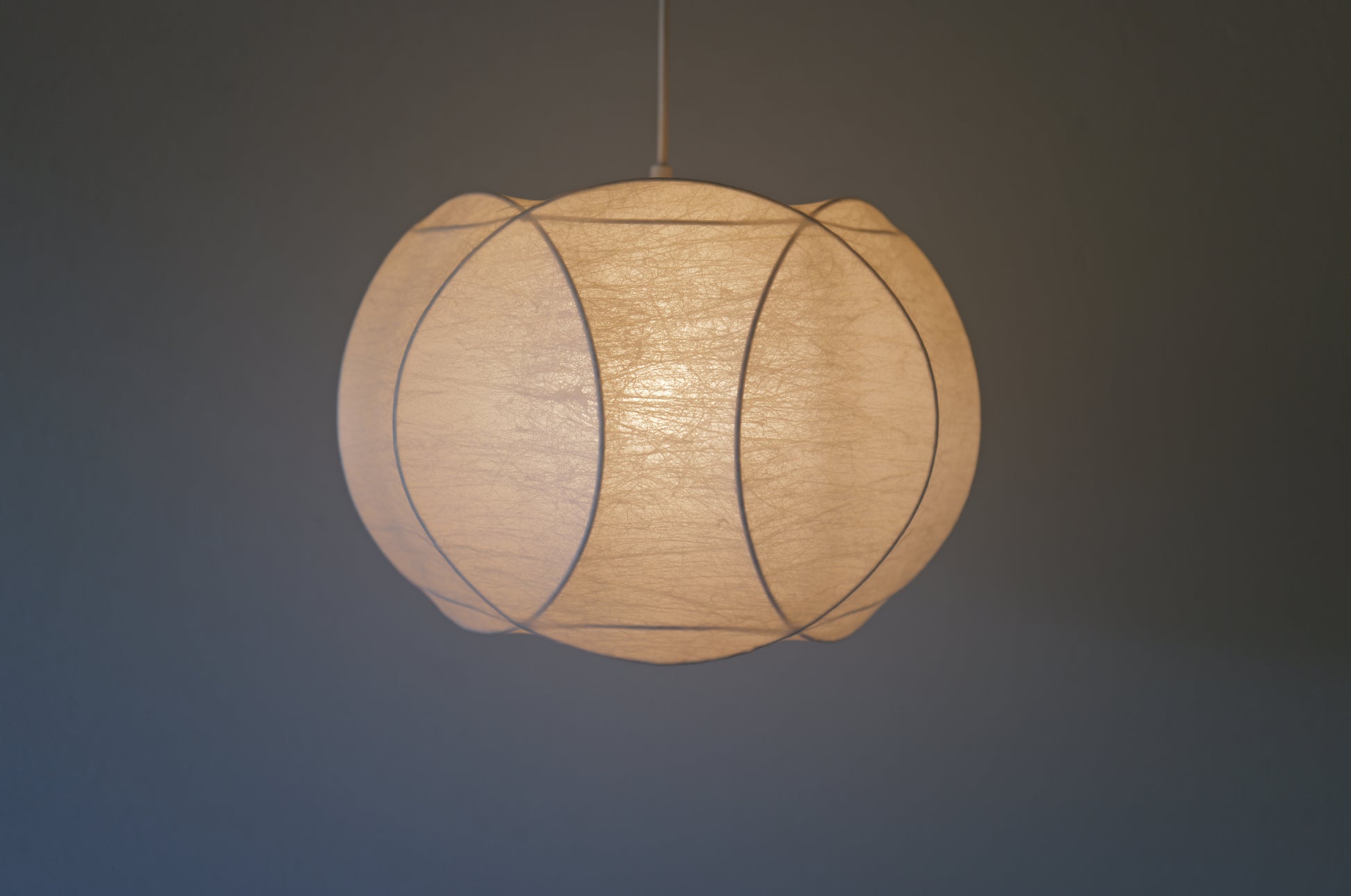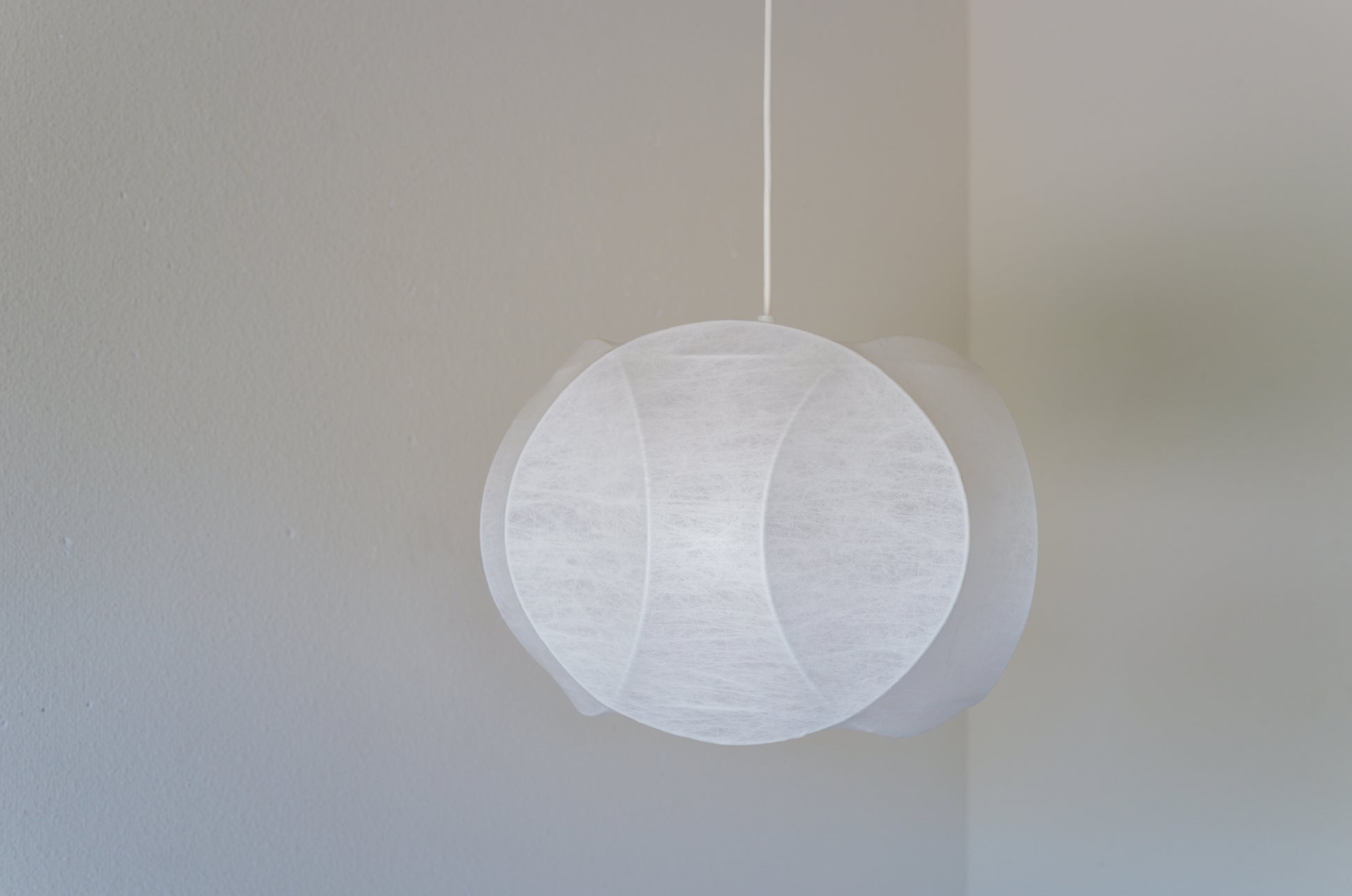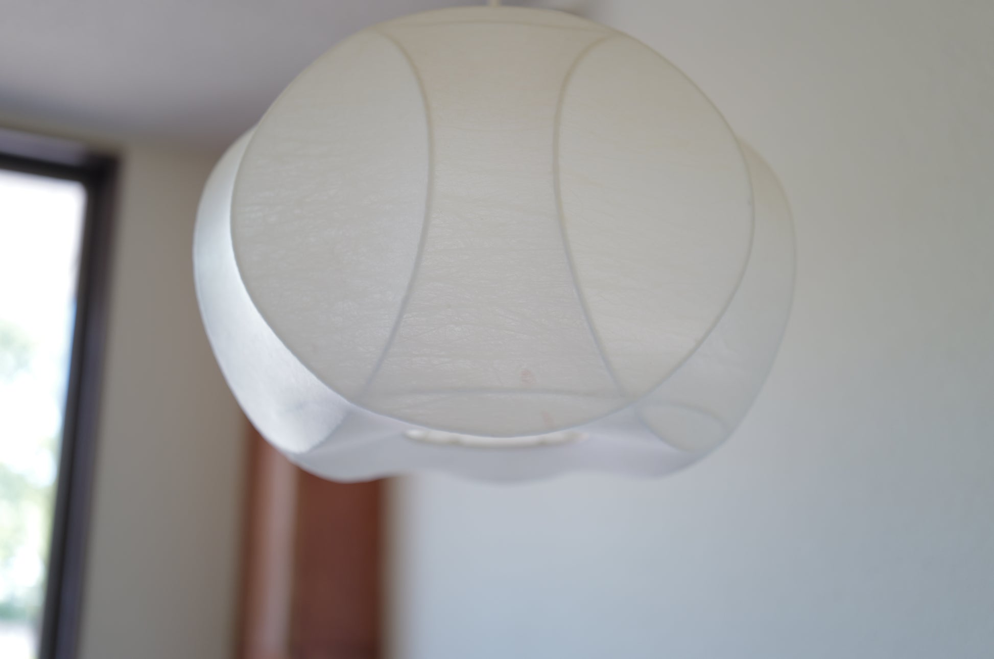 1970sドイツ又はイタリアで製造されたと思われるコクーンシェイド。こちらの作品、見る角度によって表情を変えてくれるとてもユニークな作品になります。コクーンの質感、状態ともにとても良いものになります。光を灯すと和紙のようになり、灯さない時の質感はなんとも言えない美しい質感になります。