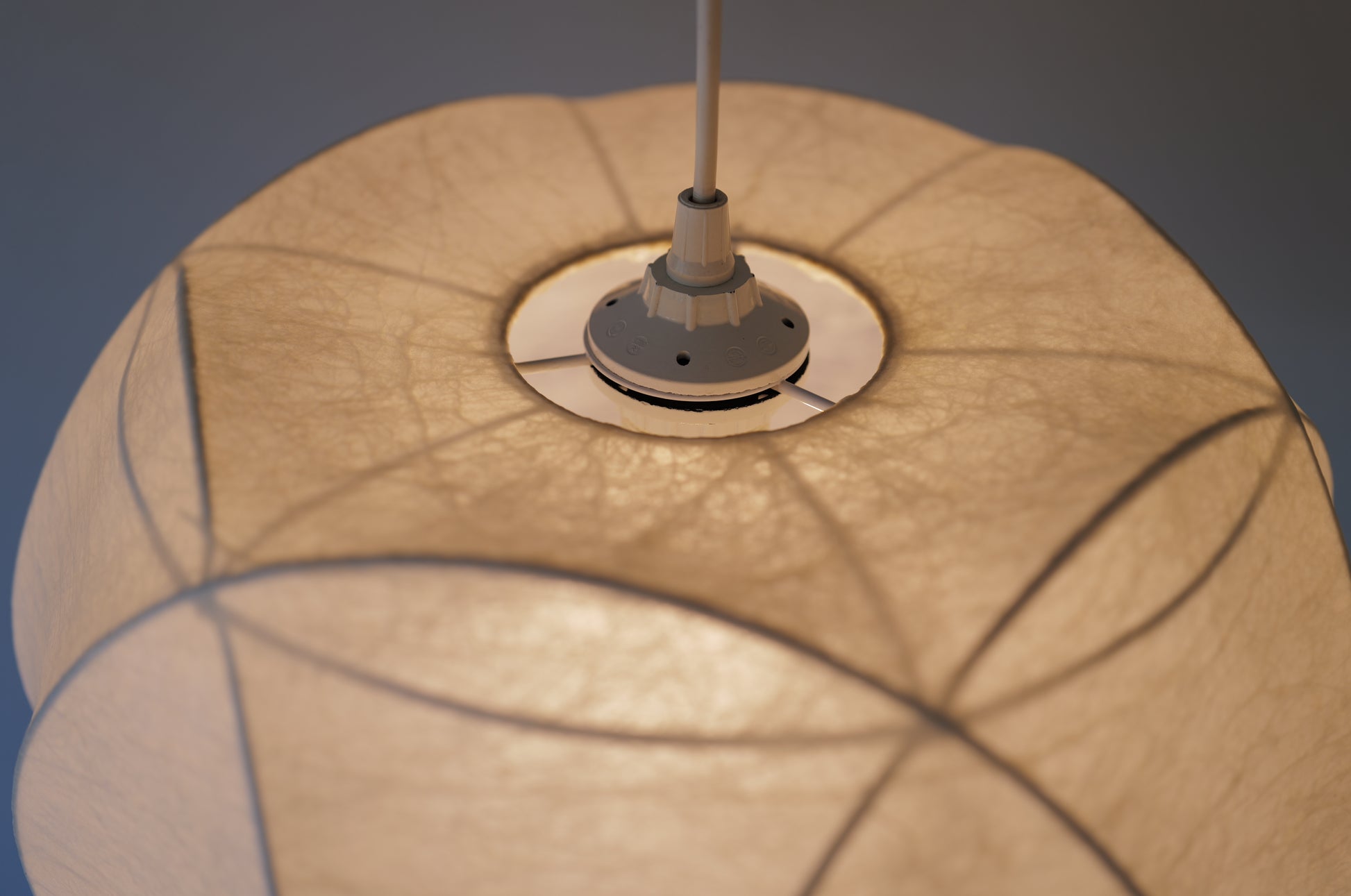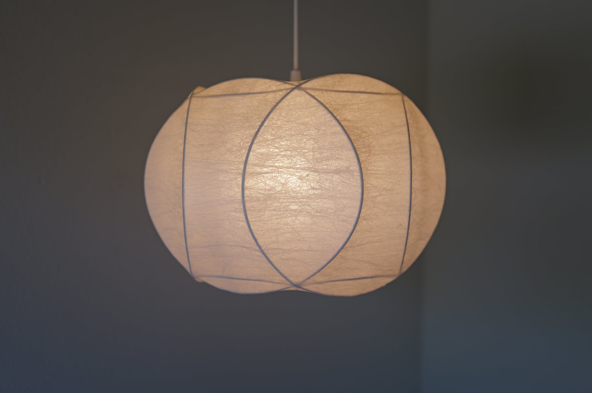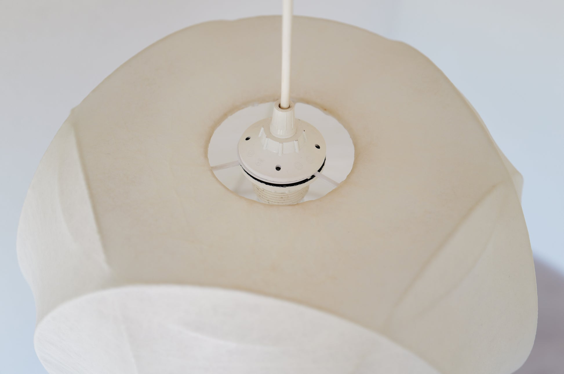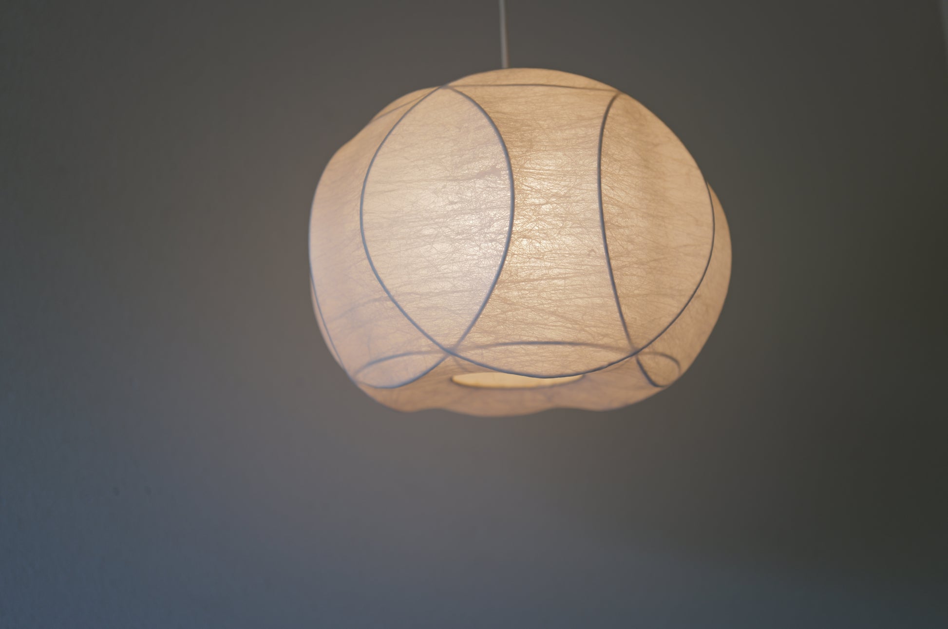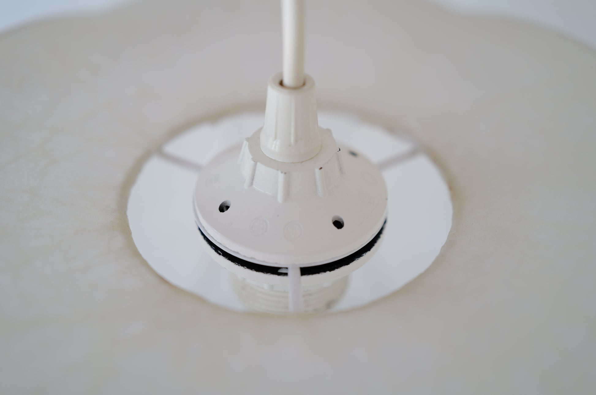 1970sドイツ又はイタリアで製造されたと思われるコクーンシェイド。こちらの作品、見る角度によって表情を変えてくれるとてもユニークな作品になります。コクーンの質感、状態ともにとても良いものになります。光を灯すと和紙のようになり、灯さない時の質感はなんとも言えない美しい質感になります。