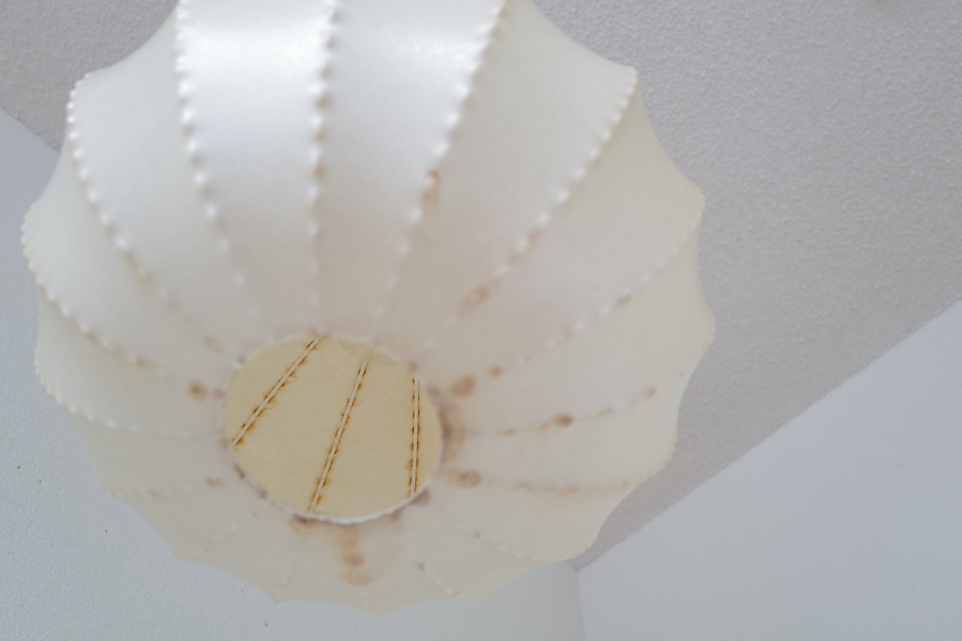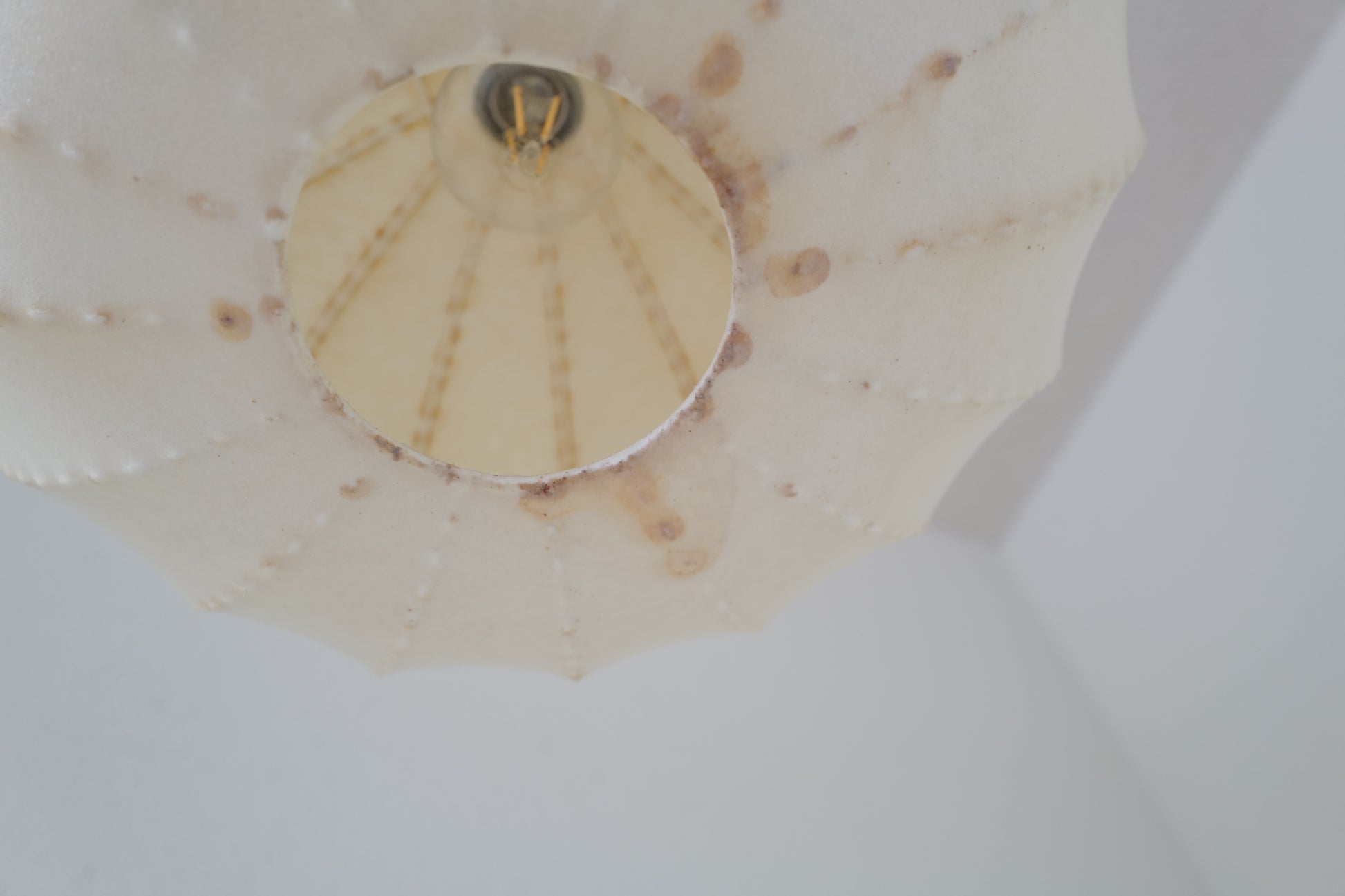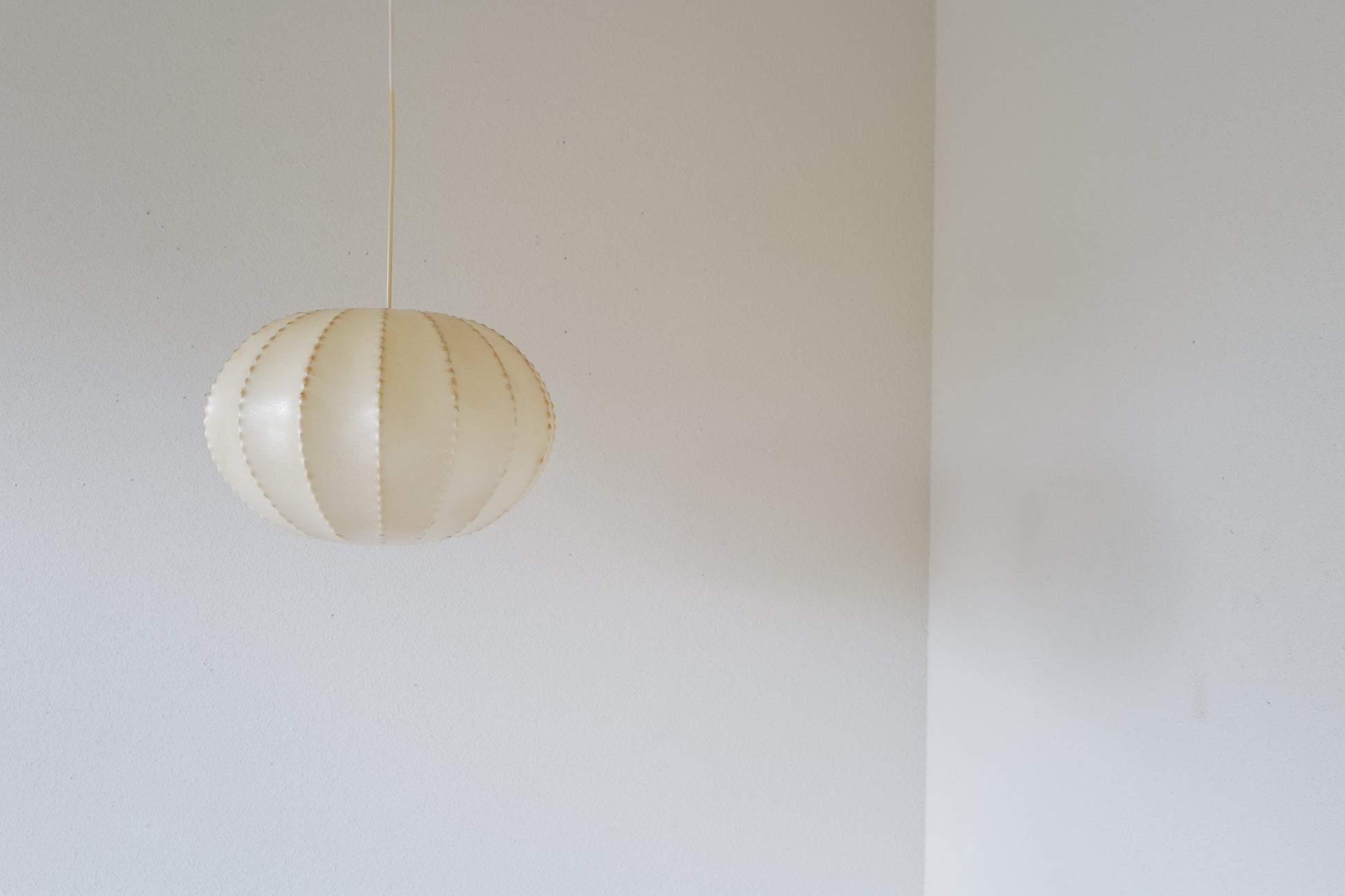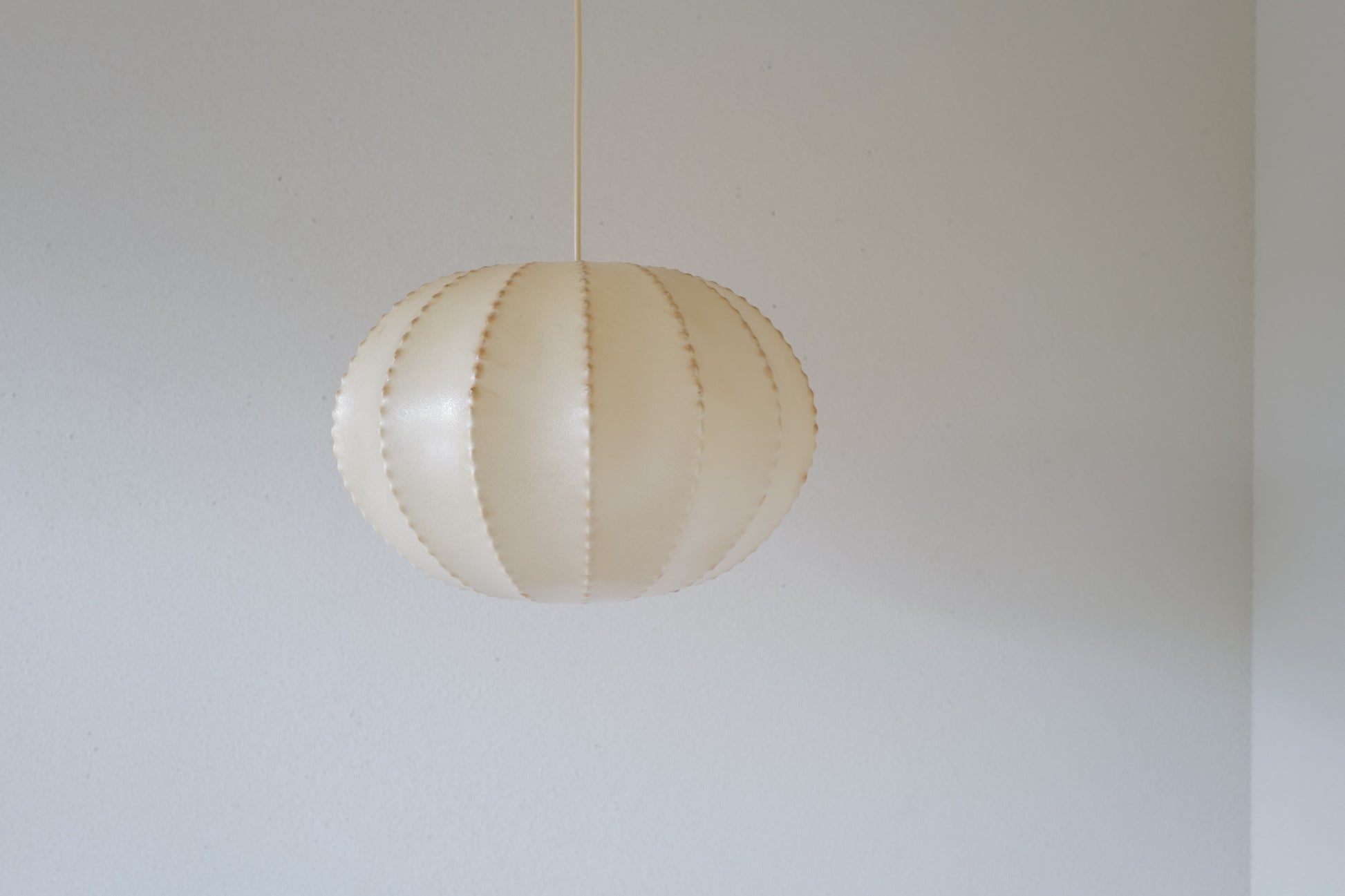 1960年代ドイツのゴールドカント社によって製造されたコクーンペンダントランプ。経年のやれ感となみなみワイヤーとの組み合わせがとても雰囲気のある作品になります。少し変わったコクーンシェイドをお探しの方に。状態は経年の使用感はあるもののシェードにキレ等なく雰囲気を十分に楽しんでいただける商品になります。