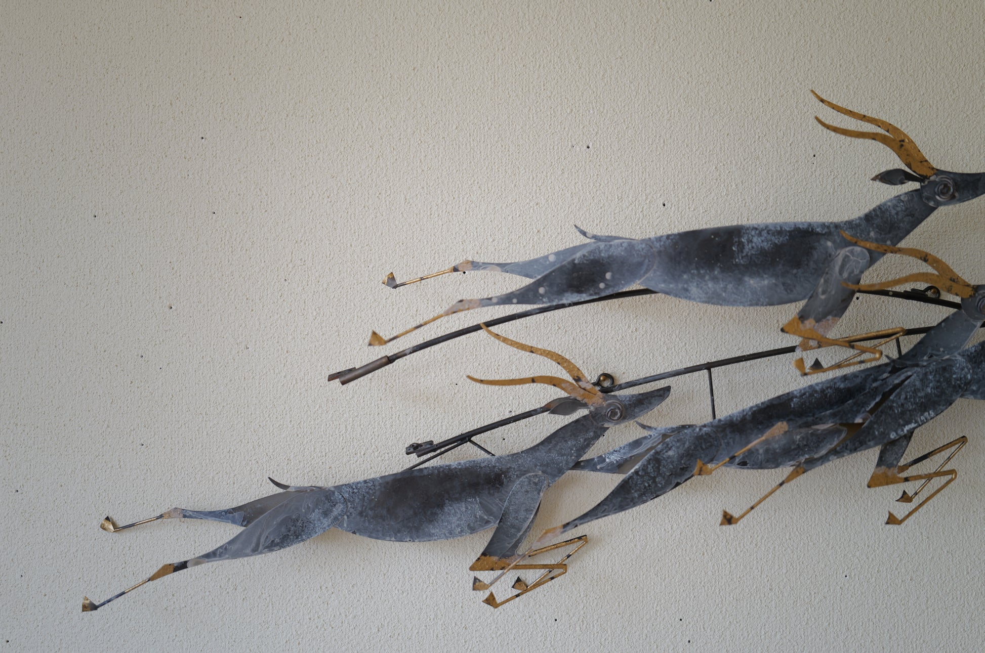 1995年にカーチス・ジュレ社によって制作されたウォールスカルプチャー。ジュレのメタルを使用した作品は世界中で人気が高く、その中でもこちらのガゼルをモチーフにした作品はとても珍しく、サイズ感から受注生産された作品かと思われます。ガゼルが疾走する姿がどこか切なく、そして美しい。不思議な雰囲気を醸し出すとても良い作品になります。