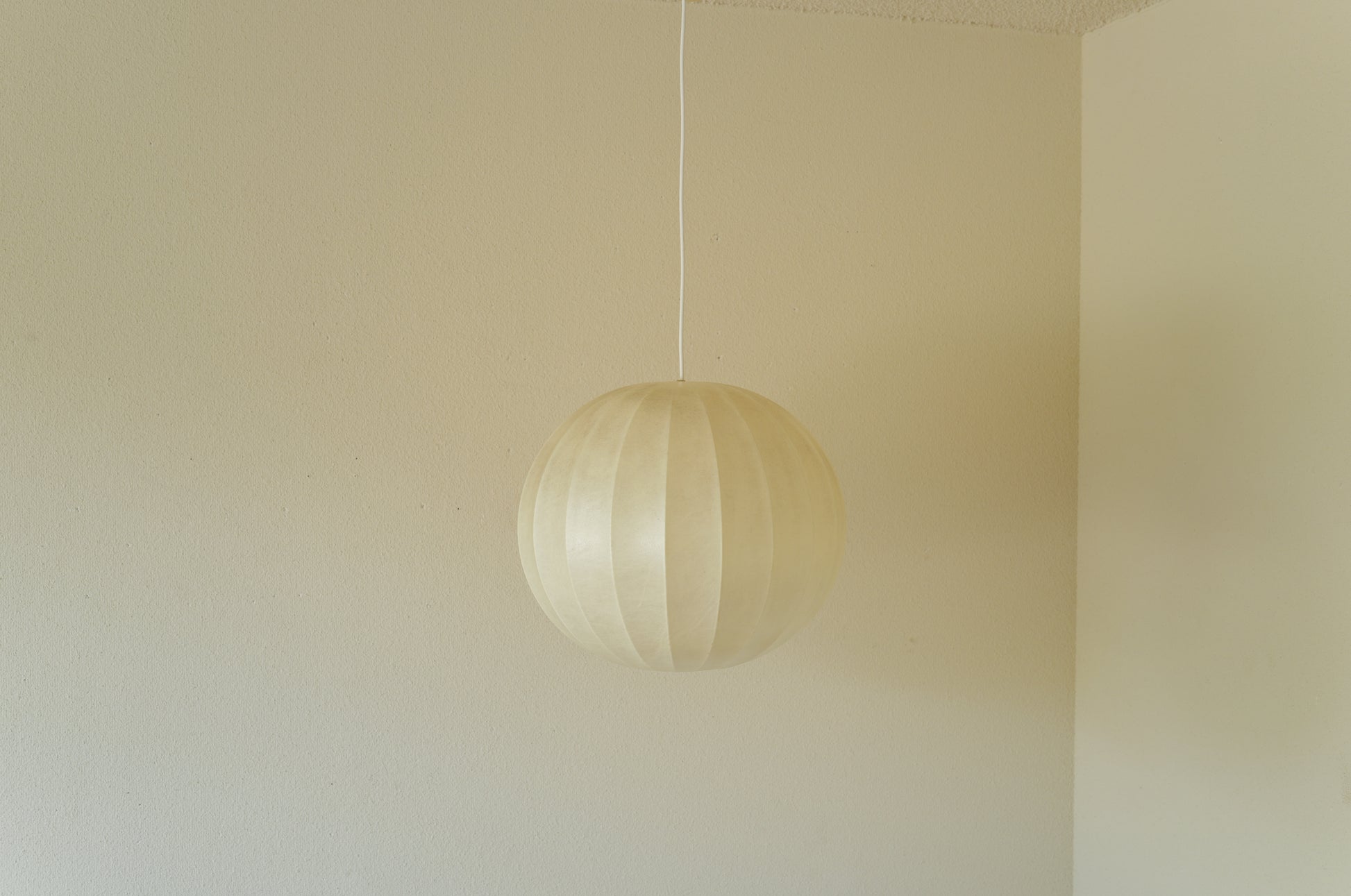 1960sドイツのゴールドカント社で製造された大きめの丸型コクーンランプ。状態は全体的なヤレ感と一箇所にキレがございますが50年前の物としましては良好な状態を保っております。丸型大きめサイズは本当にいい作品です。