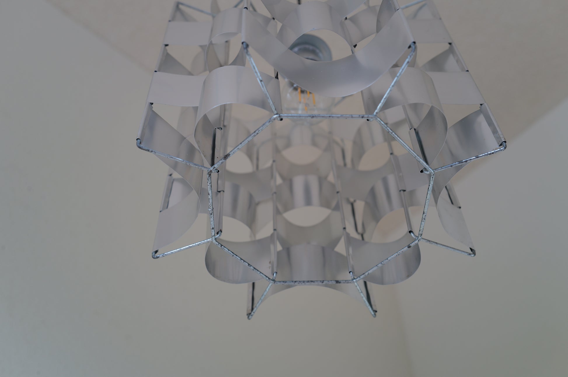 1970年代にフランス人デザイナーMax Sauze によってデザインされた作品になります。シェードの中から漏れる光が本当に美しいランプです。こちらの作品、当店で以前販売していたものよりも大きいサイズになっております。グレーや白を基調としたシンプルな部屋と相性が良さそうです。状態は細かなキズやサビ等ございますが、全体的にはとても良い状態かと思われます。