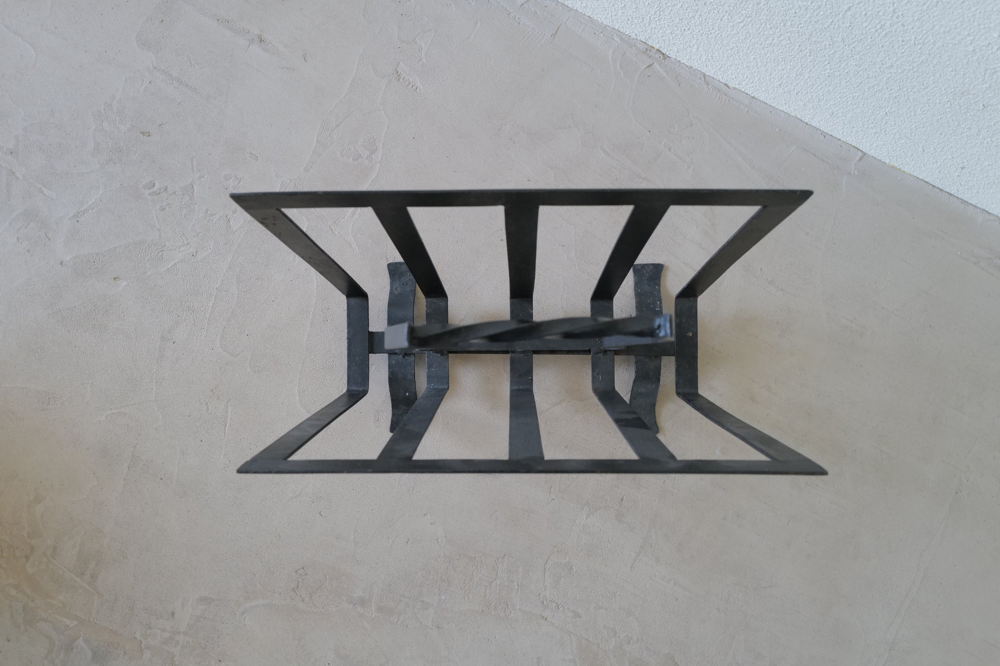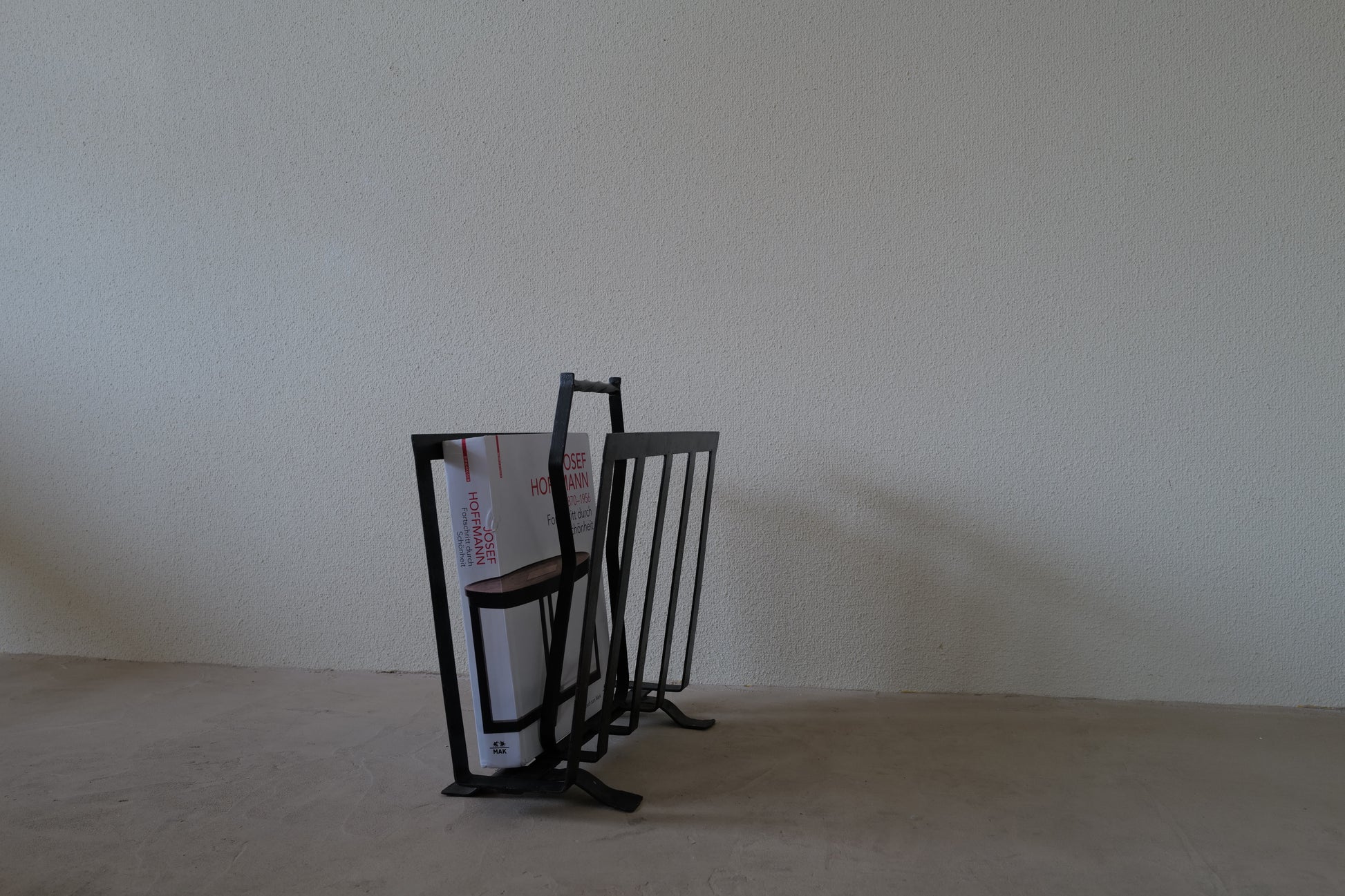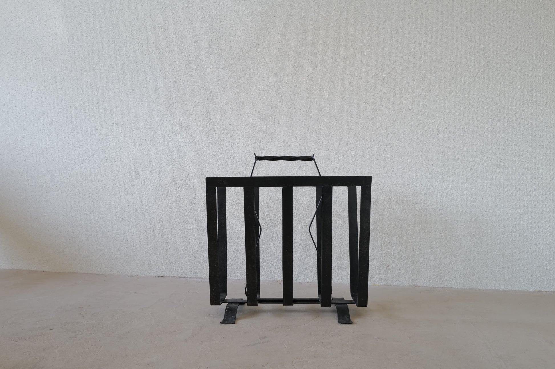 1960年代にフランスで作られたアイアンマガジンラック。素材の重厚感を打ち消すミニマルなデザインが素敵な作品。見る角度によって影に見える2次元的な作品。