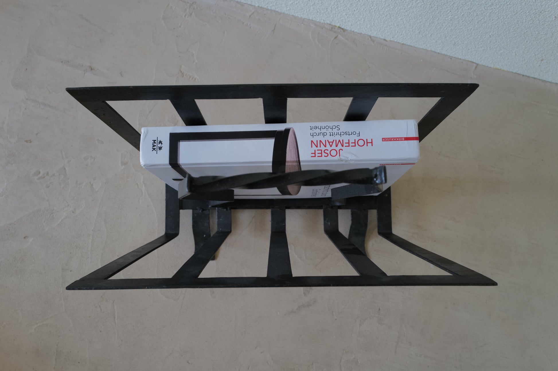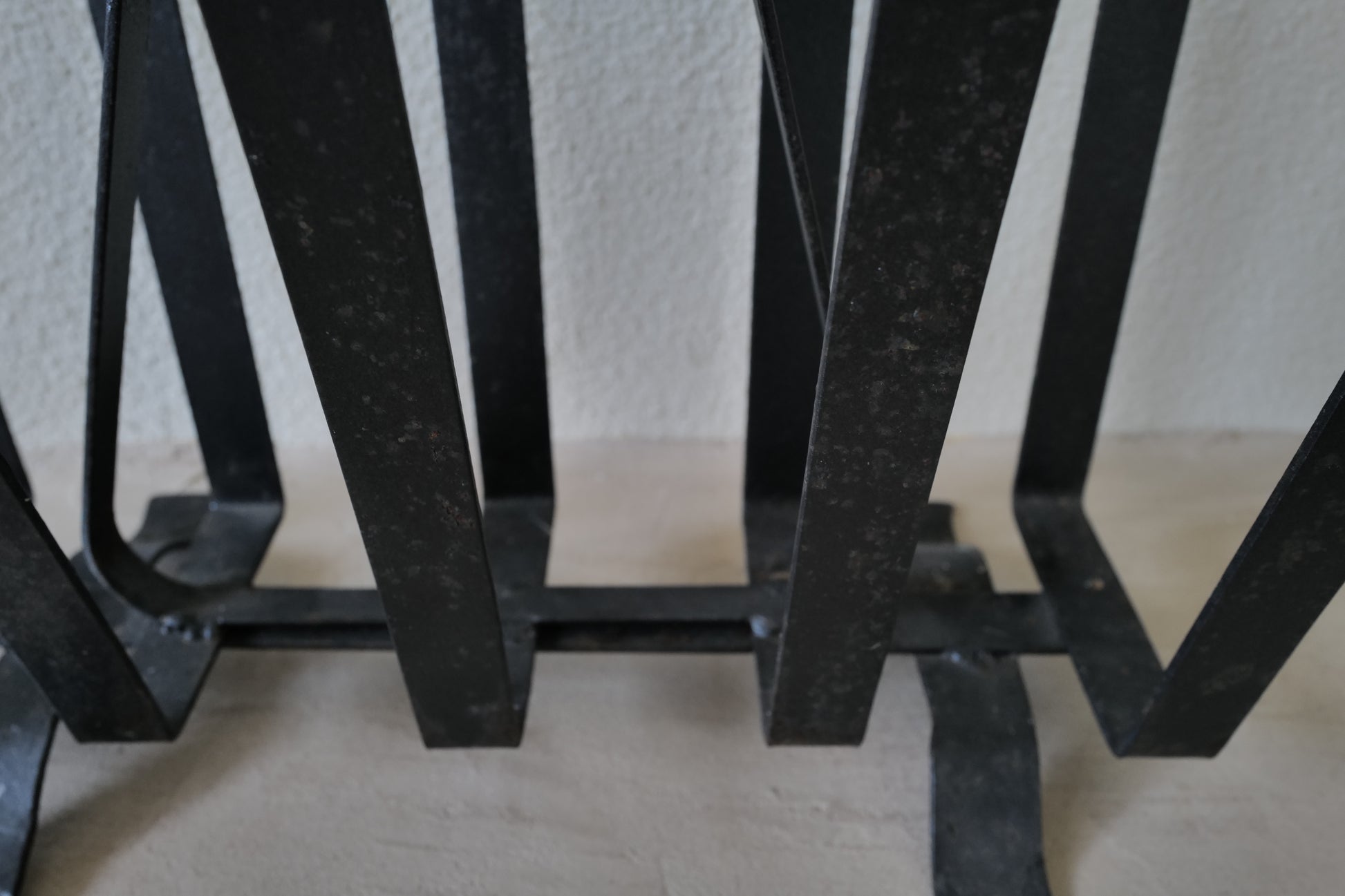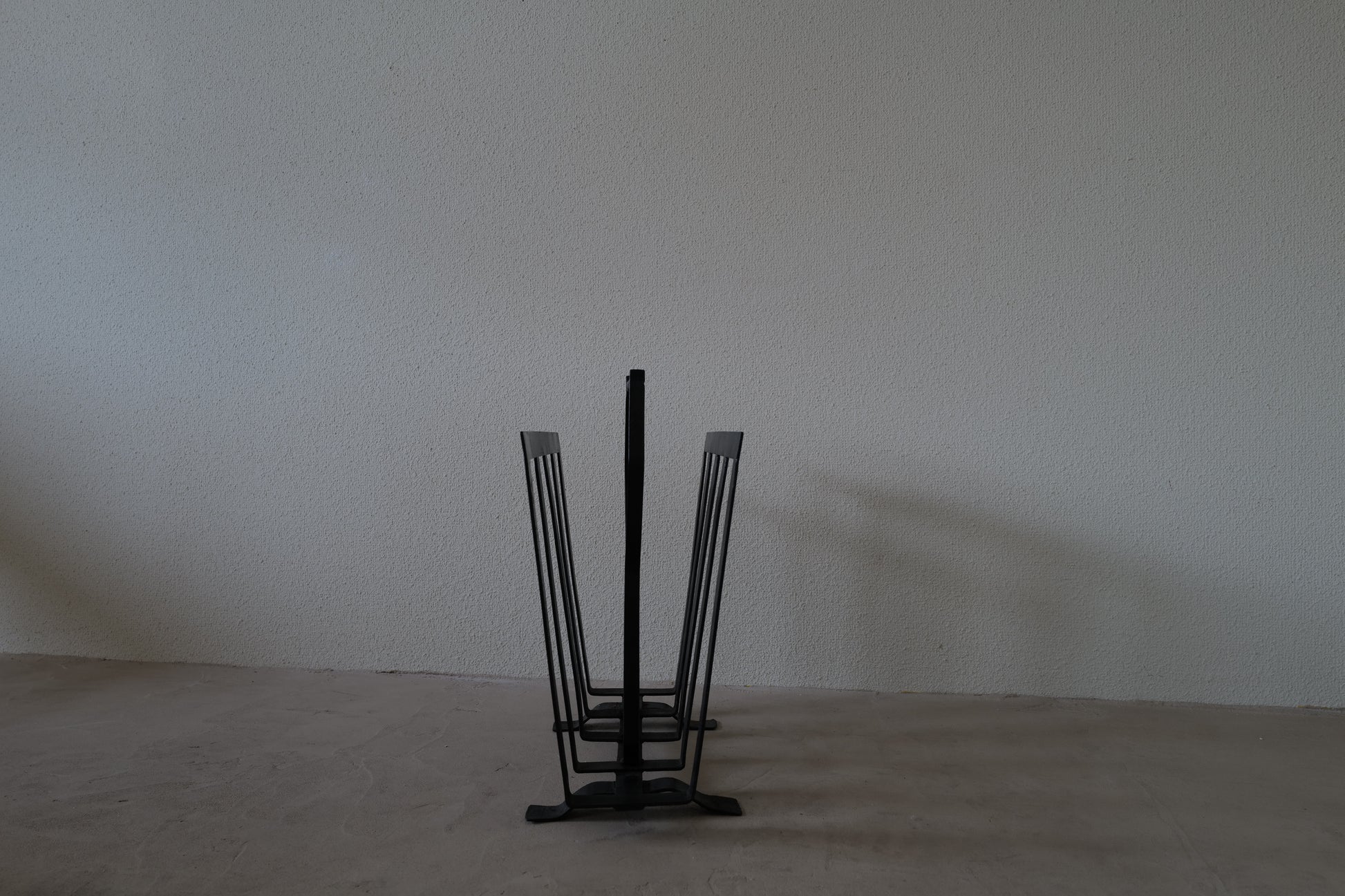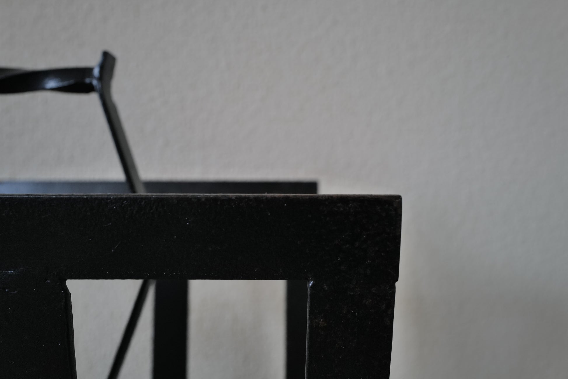 1960年代にフランスで作られたアイアンマガジンラック。素材の重厚感を打ち消すミニマルなデザインが素敵な作品。見る角度によって影に見える2次元的な作品。