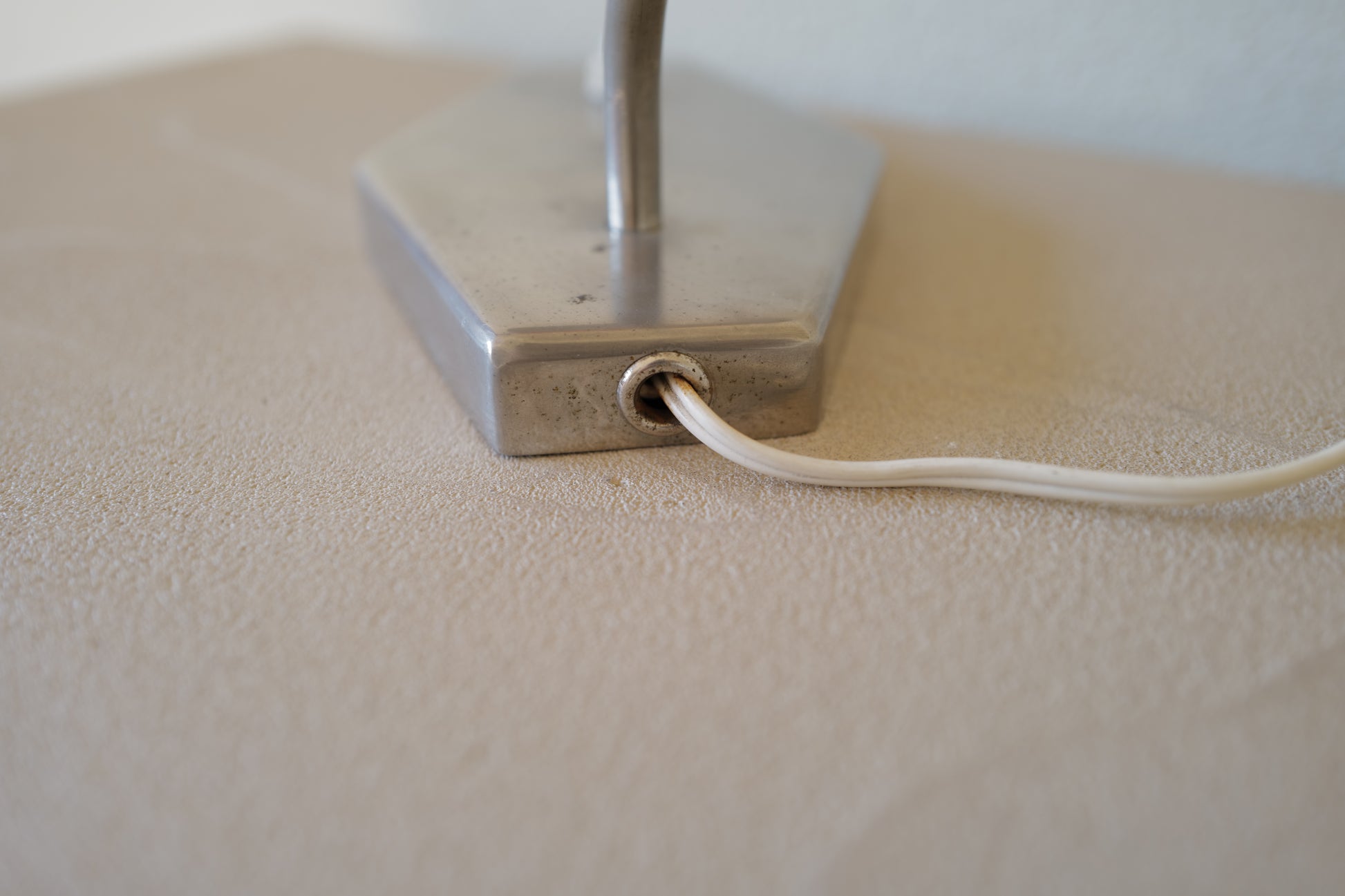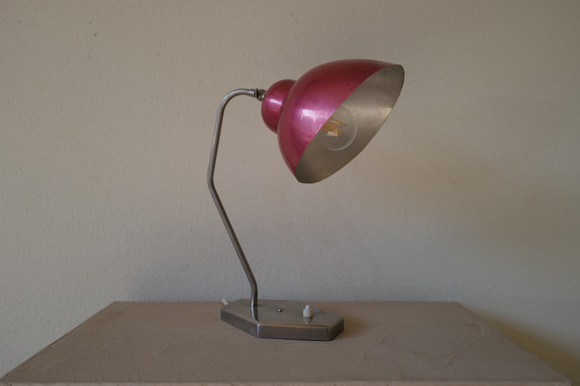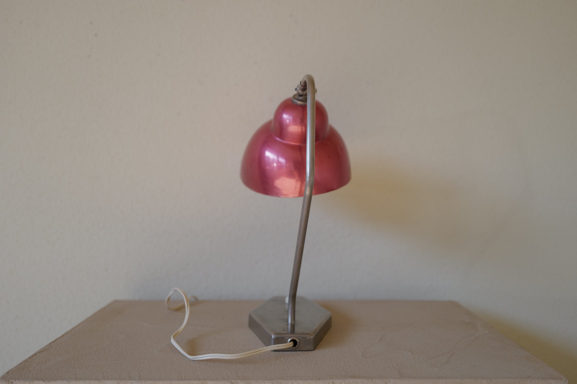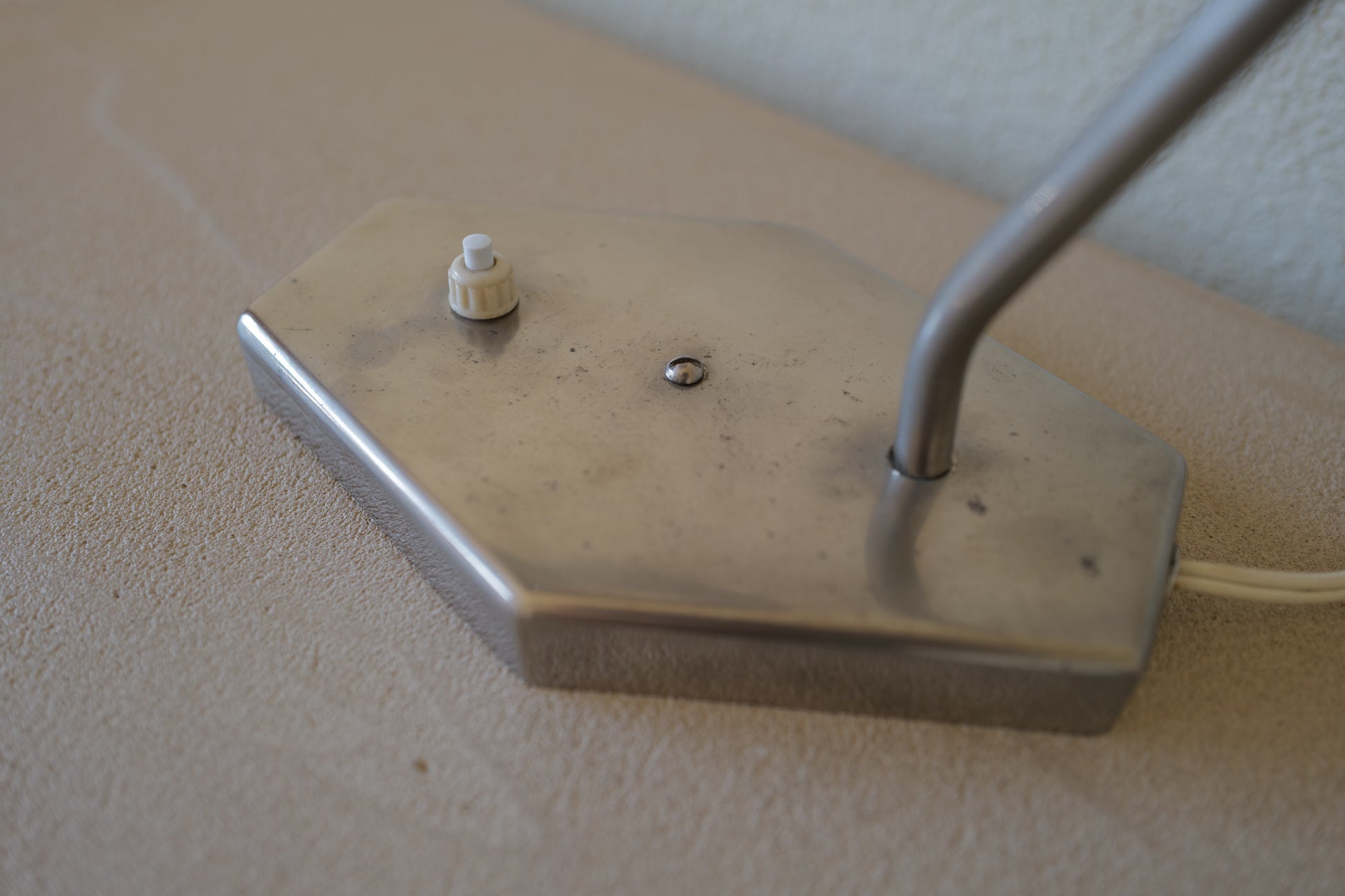 1960年代に製造されたアルミニウム製のデスクランプ六角形の台座からシェードまでビンテージの香り漂う雰囲気のあるデスクランプになります。