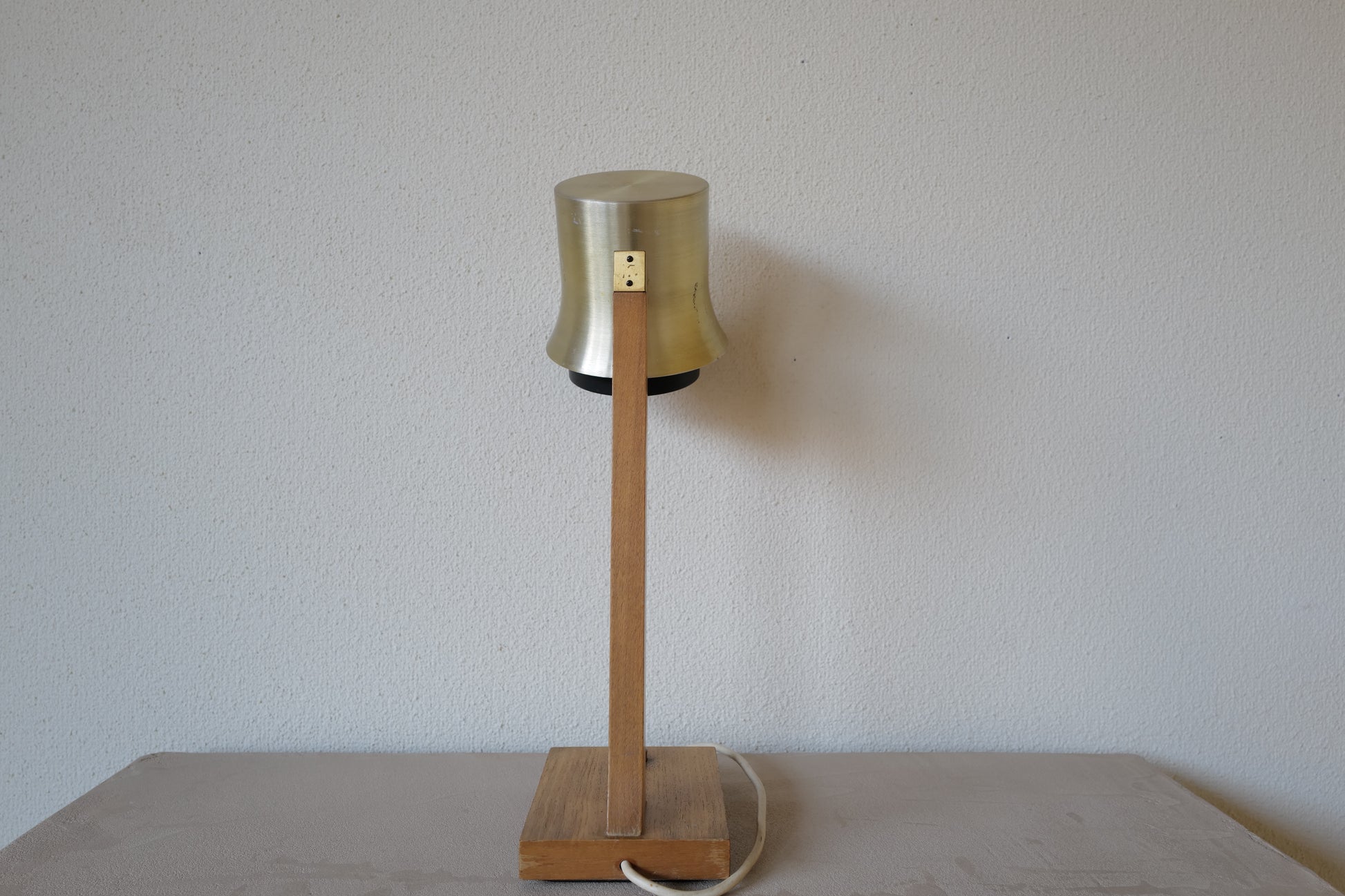 Mid Century table lamp made of teak, with aluminum shade 1950s Denmark
