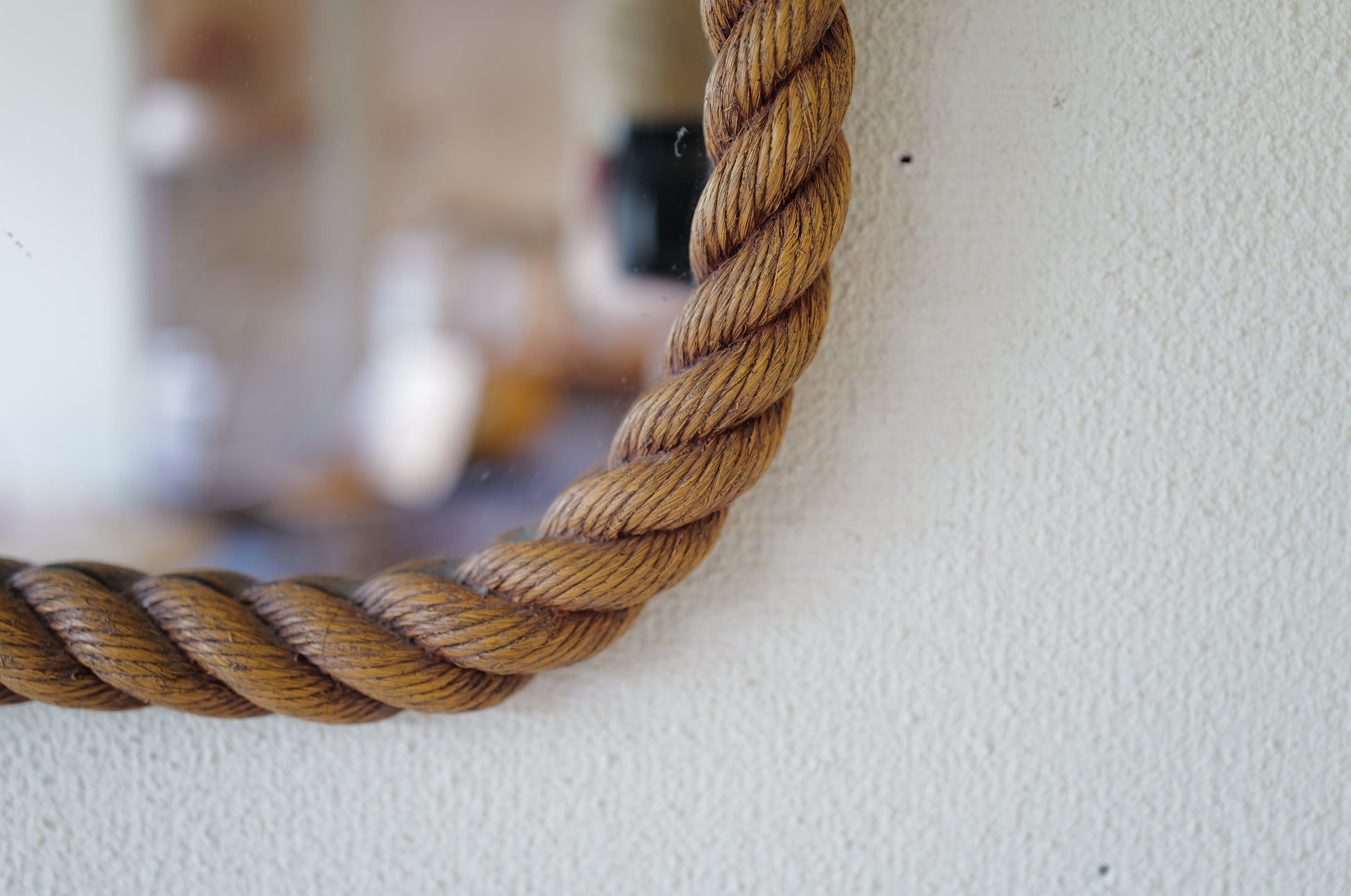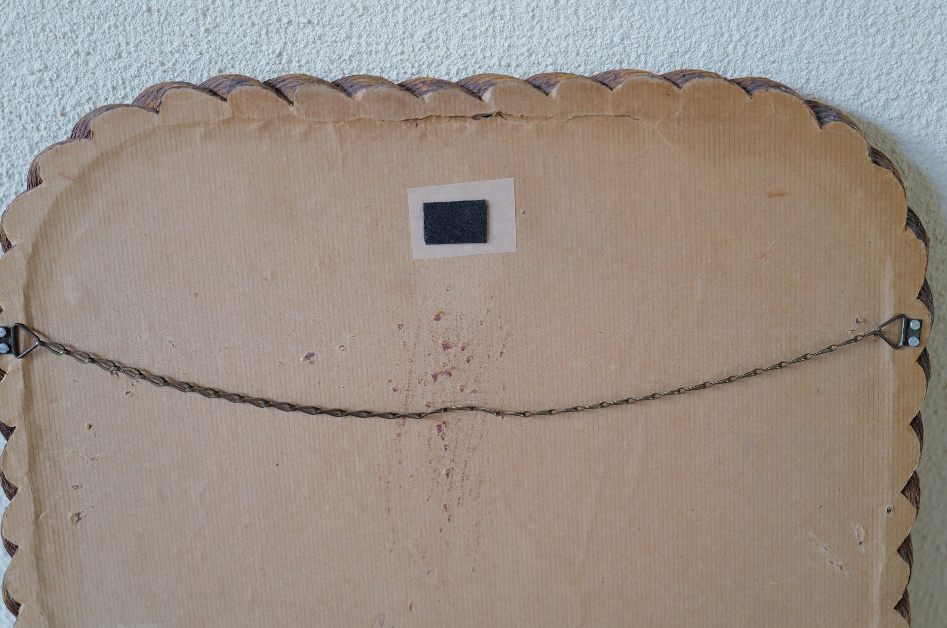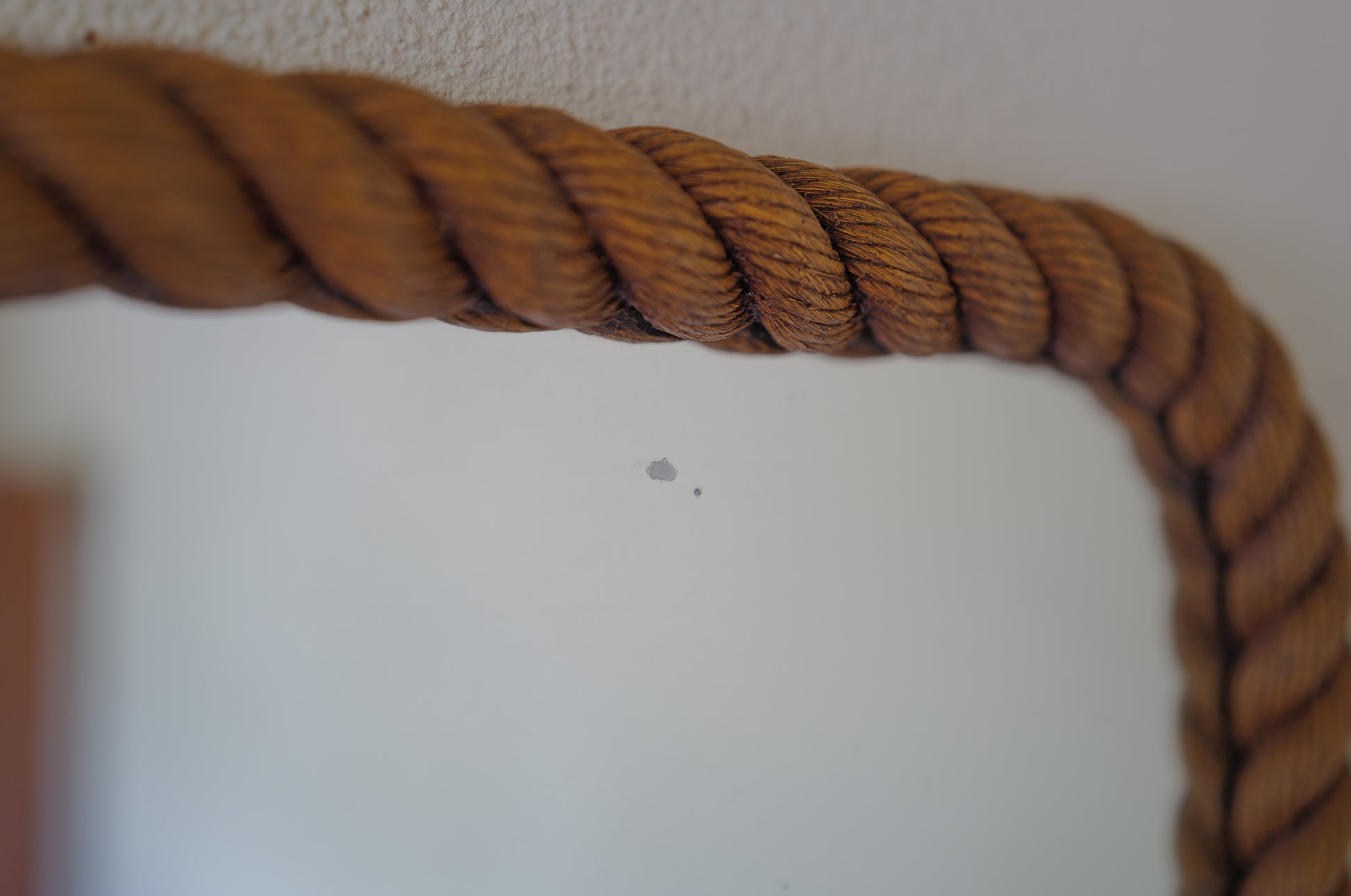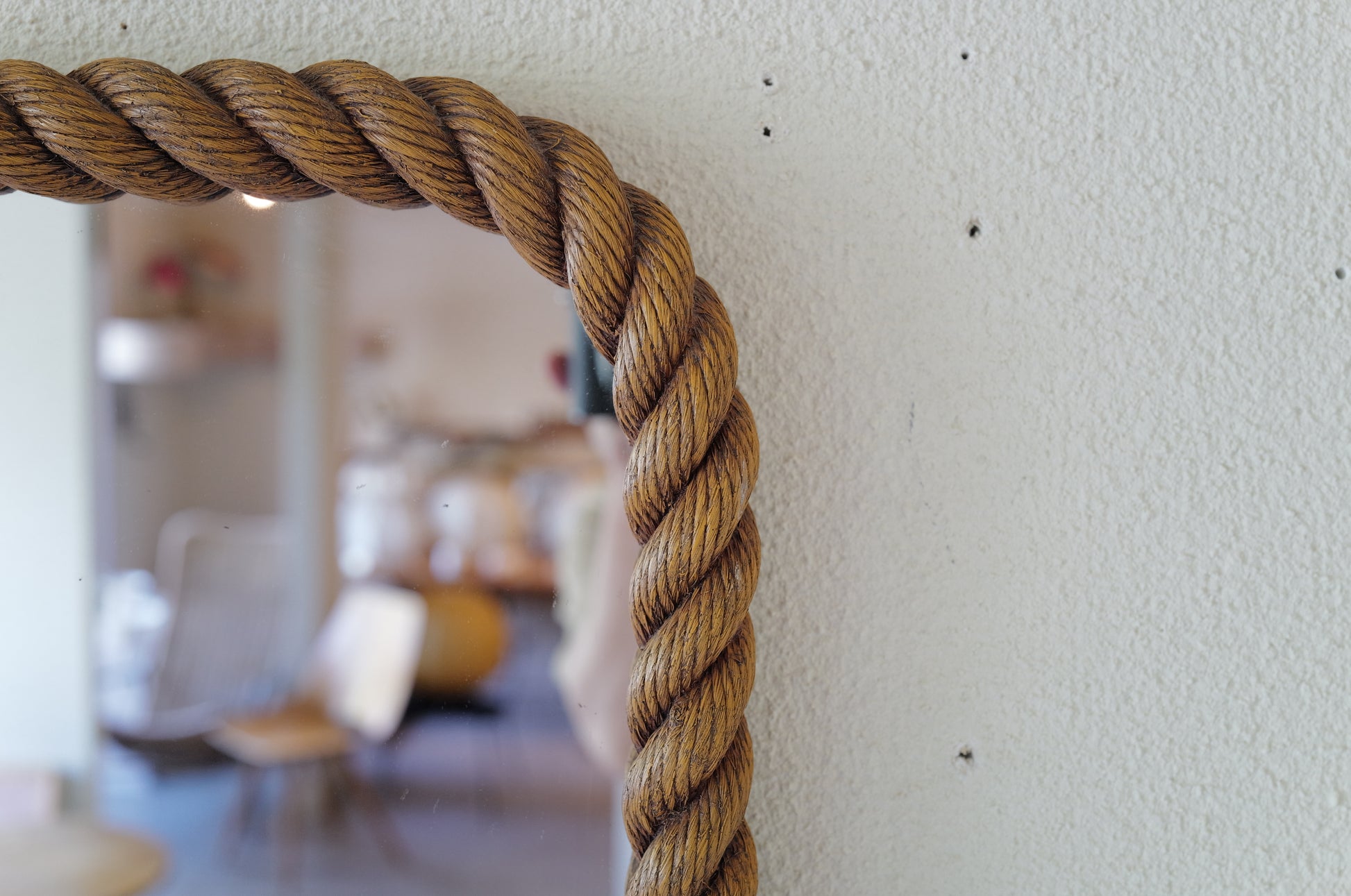 1960年代フランスで製造されたロープのような見た目の、美しいミラーになります。オードゥ・ミネの作品に興味がある方にオススメです。状態は鏡の上と下の方にダメージがございます。経年による劣化等ございますがとても雰囲気のある作品になります。