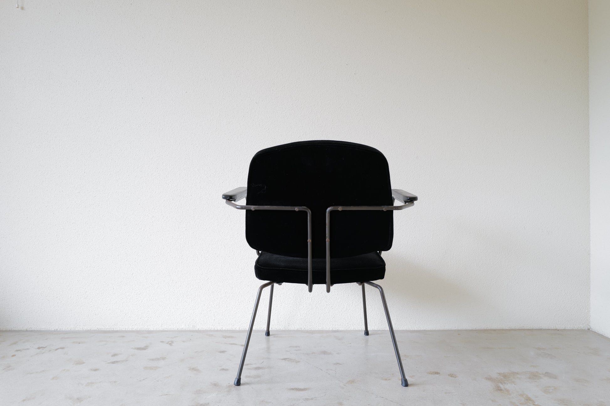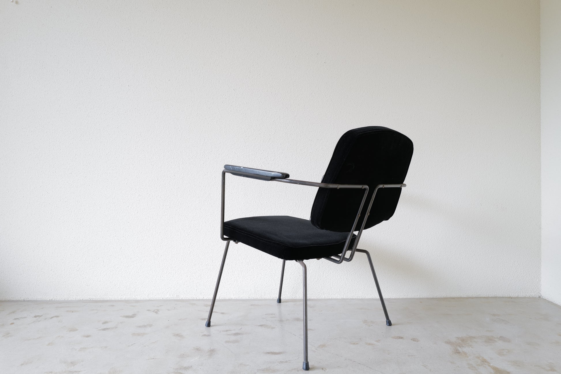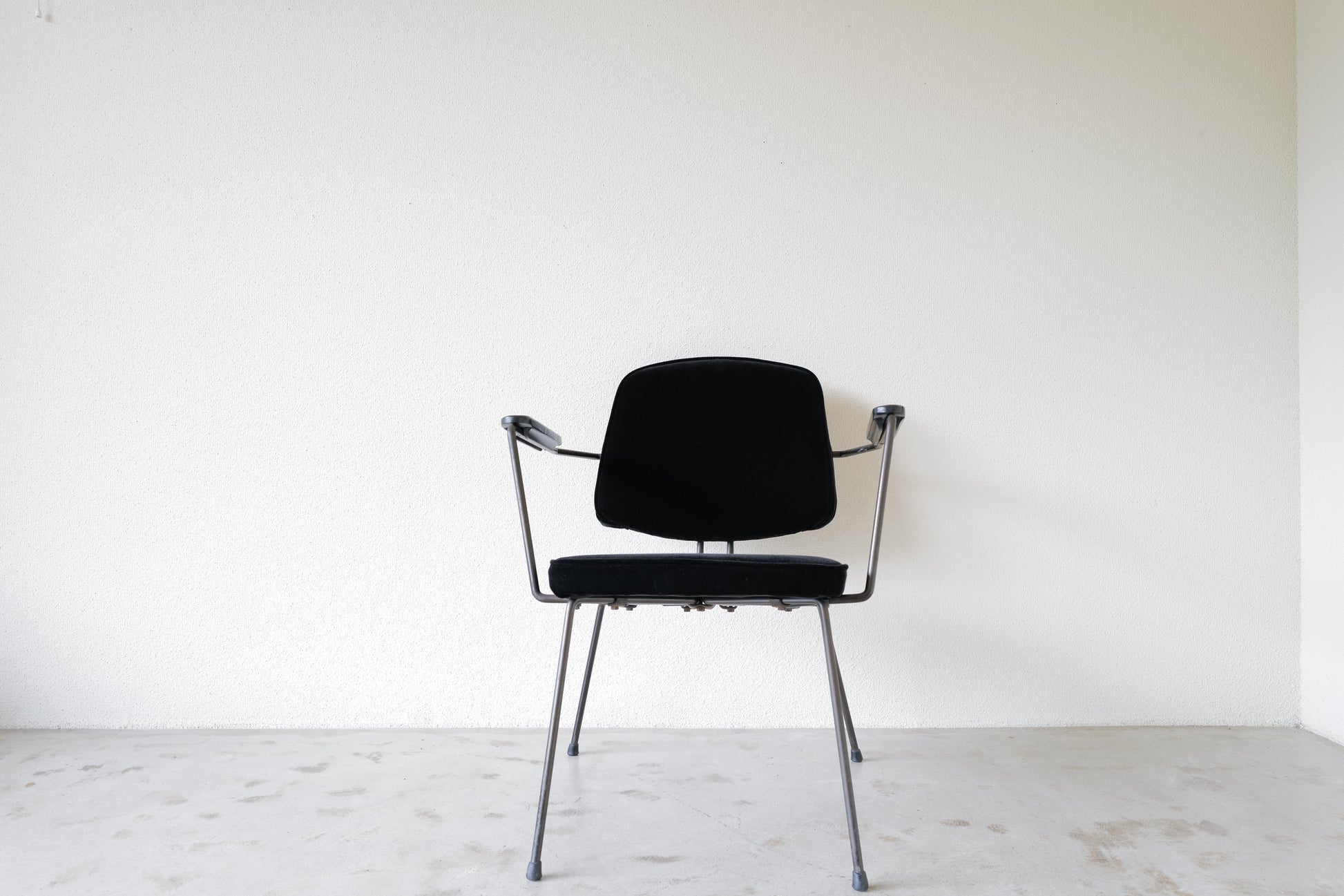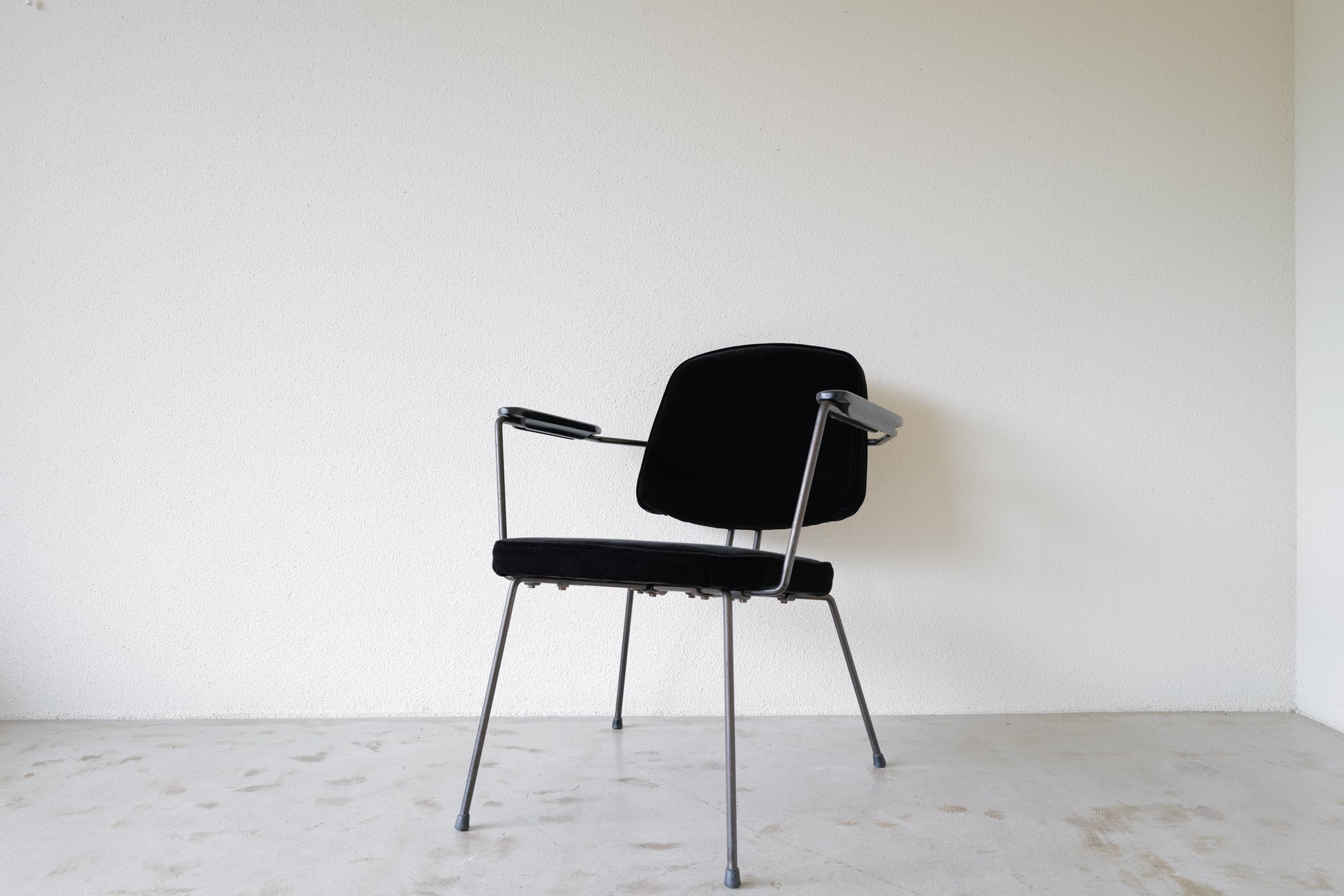 ベークライトの肘掛、ソリッドスチールのロッドフレームで構築された見た目とはうらはらに非常に重量感と安定感を備えたシンプルで美しい椅子です。