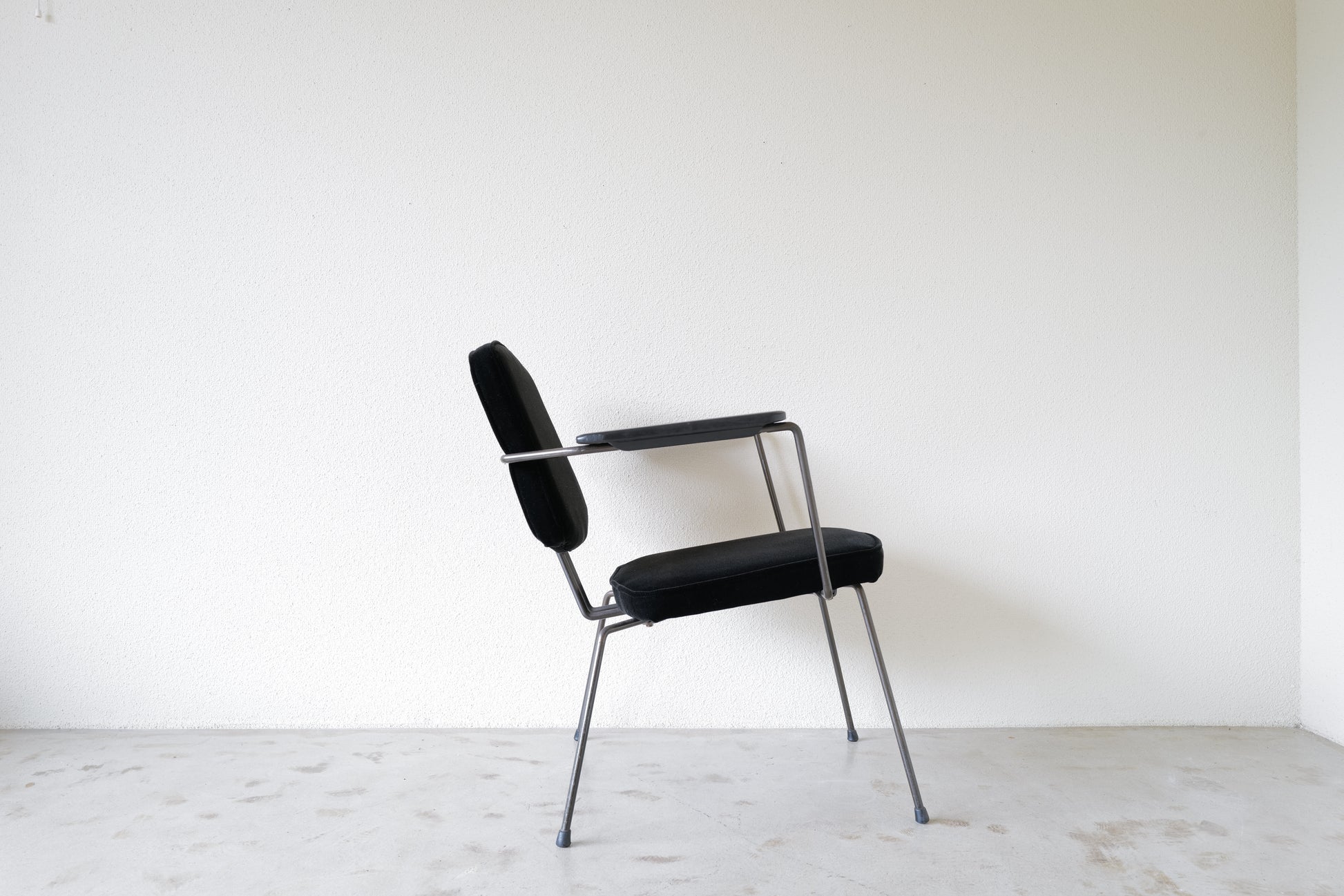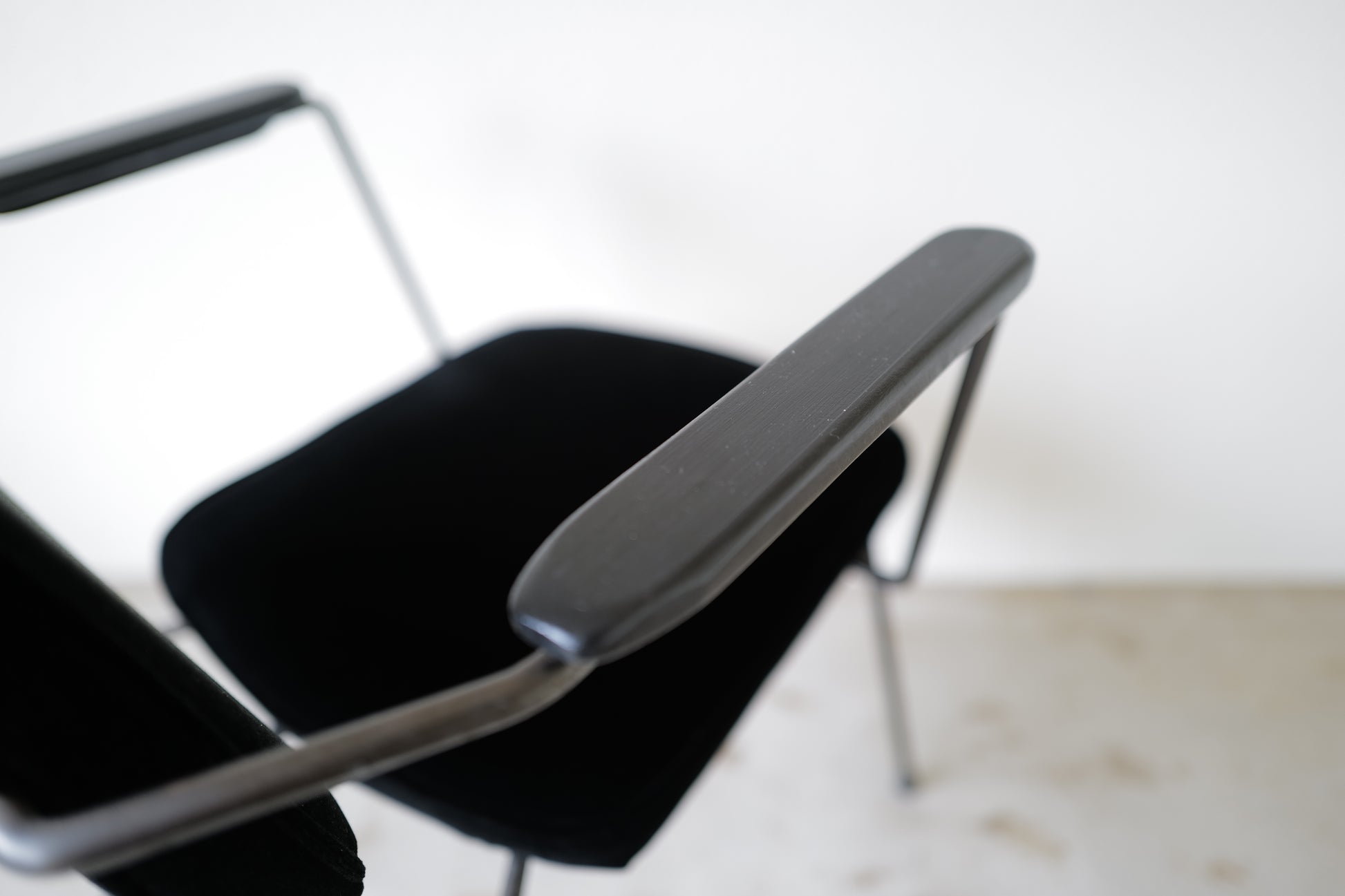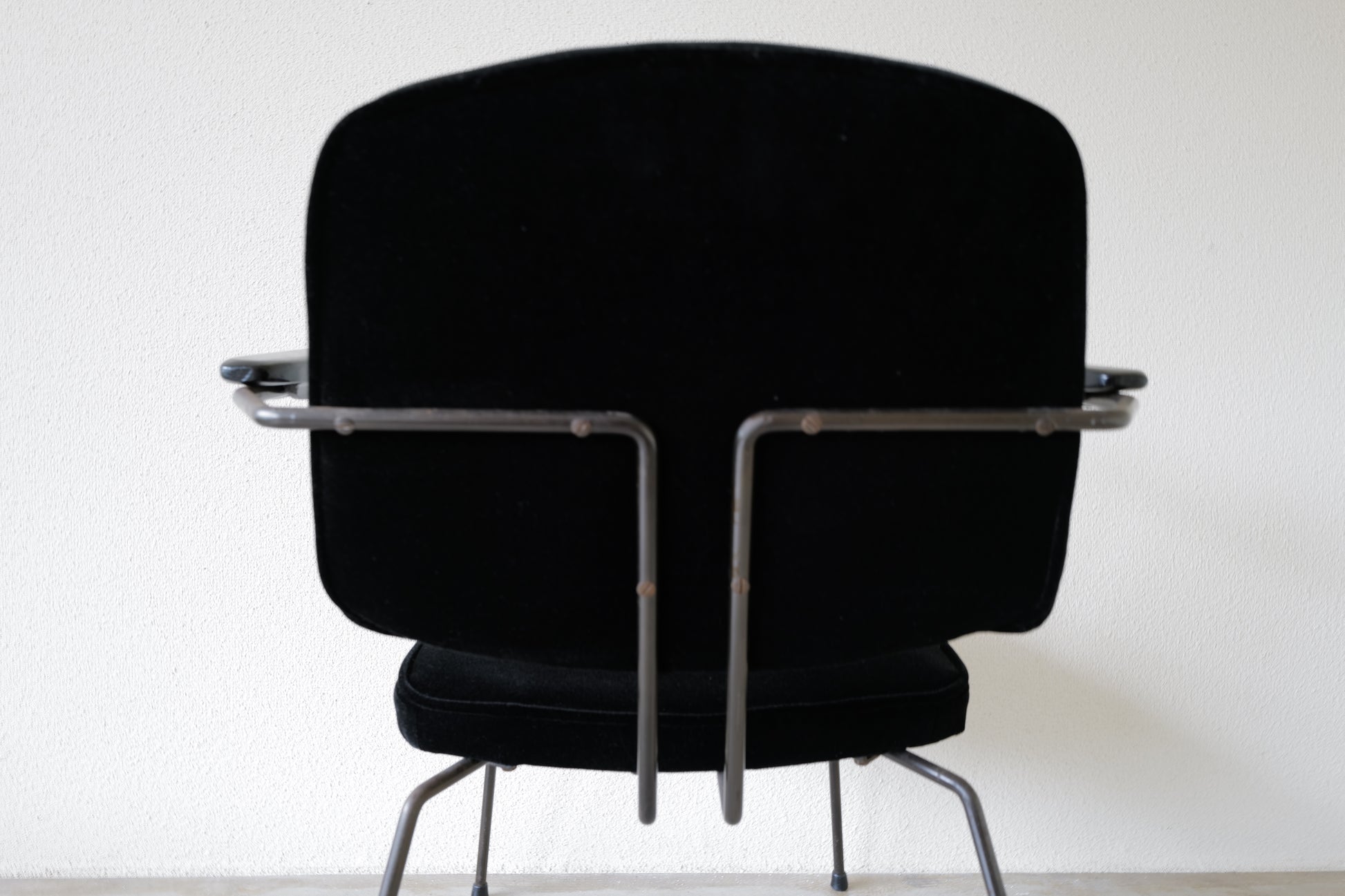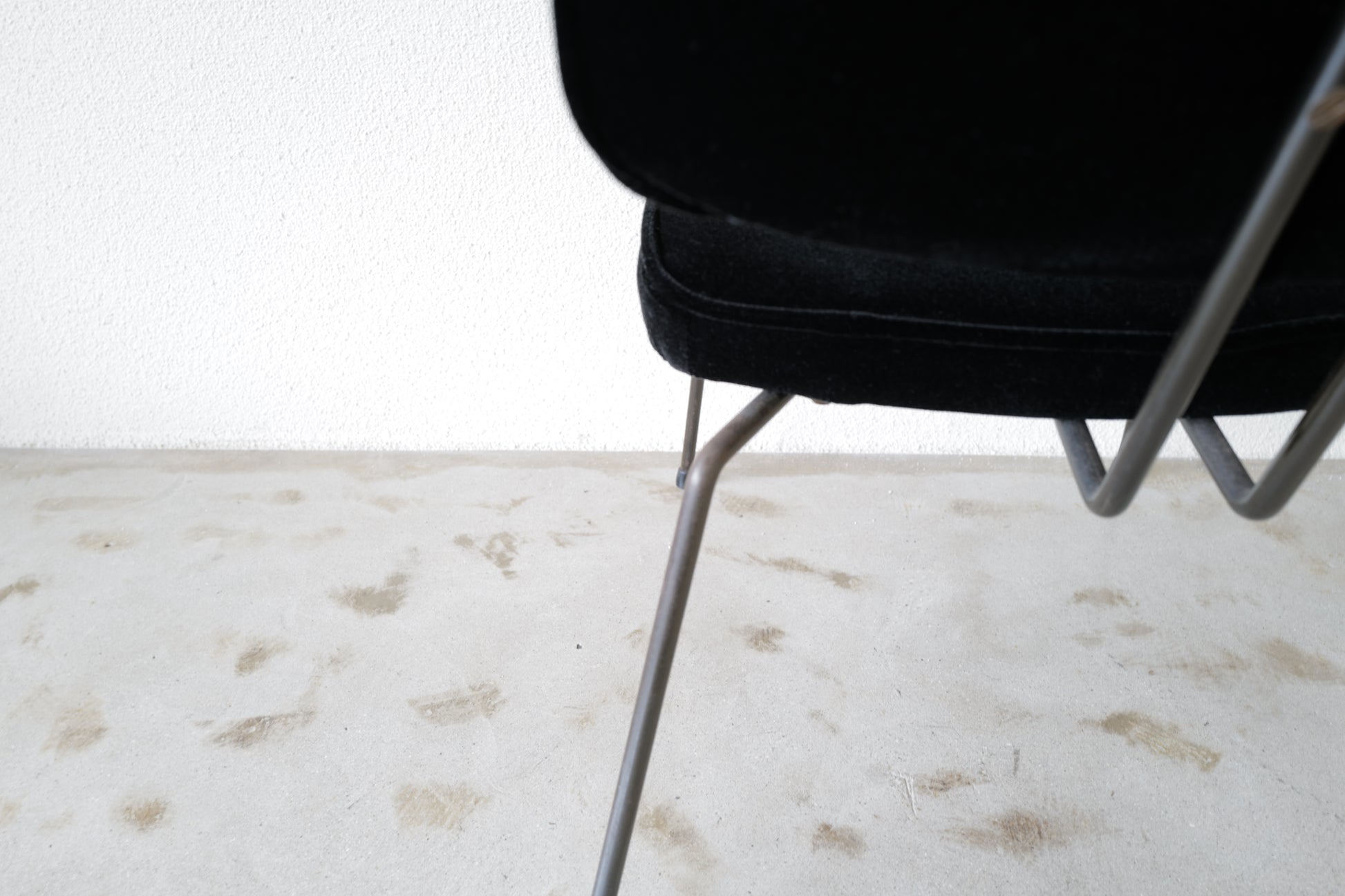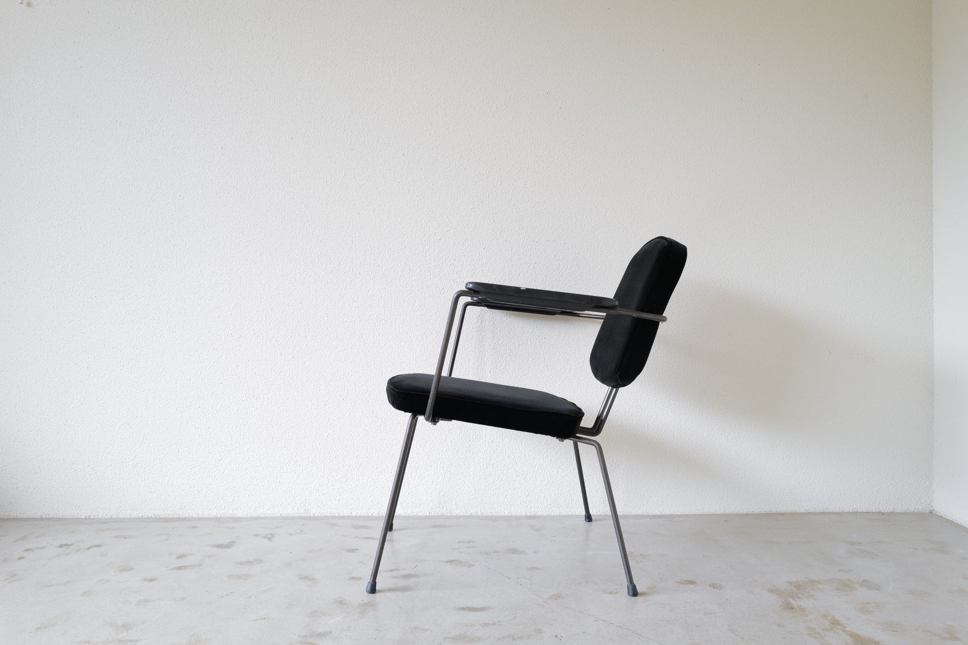 ベークライトの肘掛、ソリッドスチールのロッドフレームで構築された見た目とはうらはらに非常に重量感と安定感を備えたシンプルで美しい椅子です。