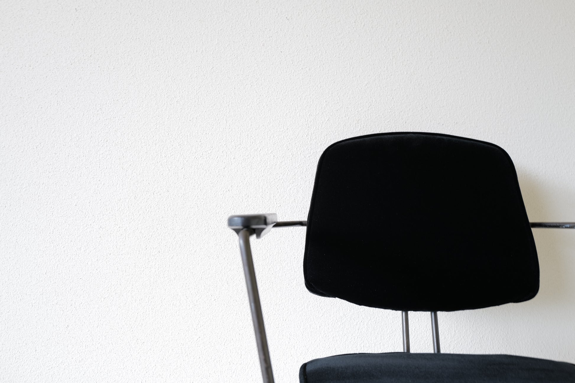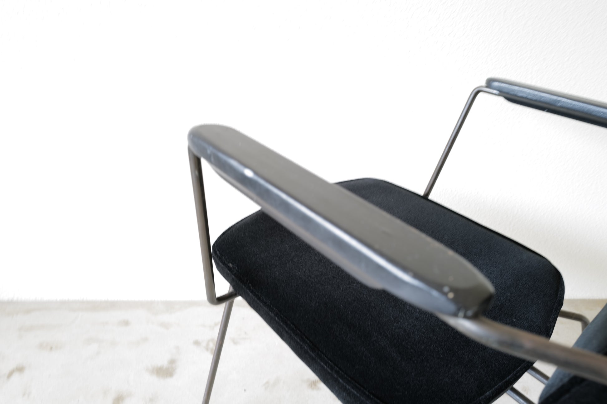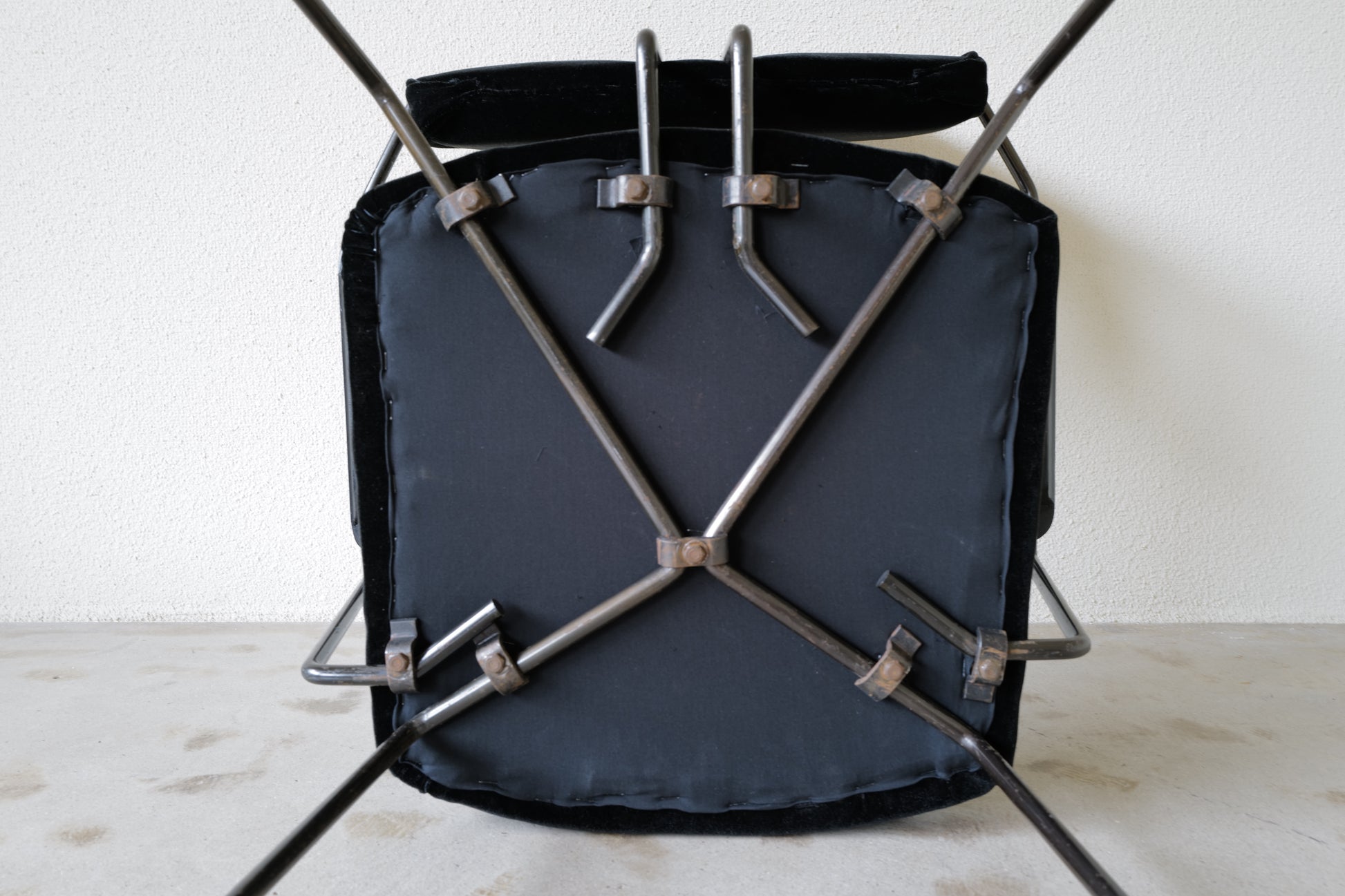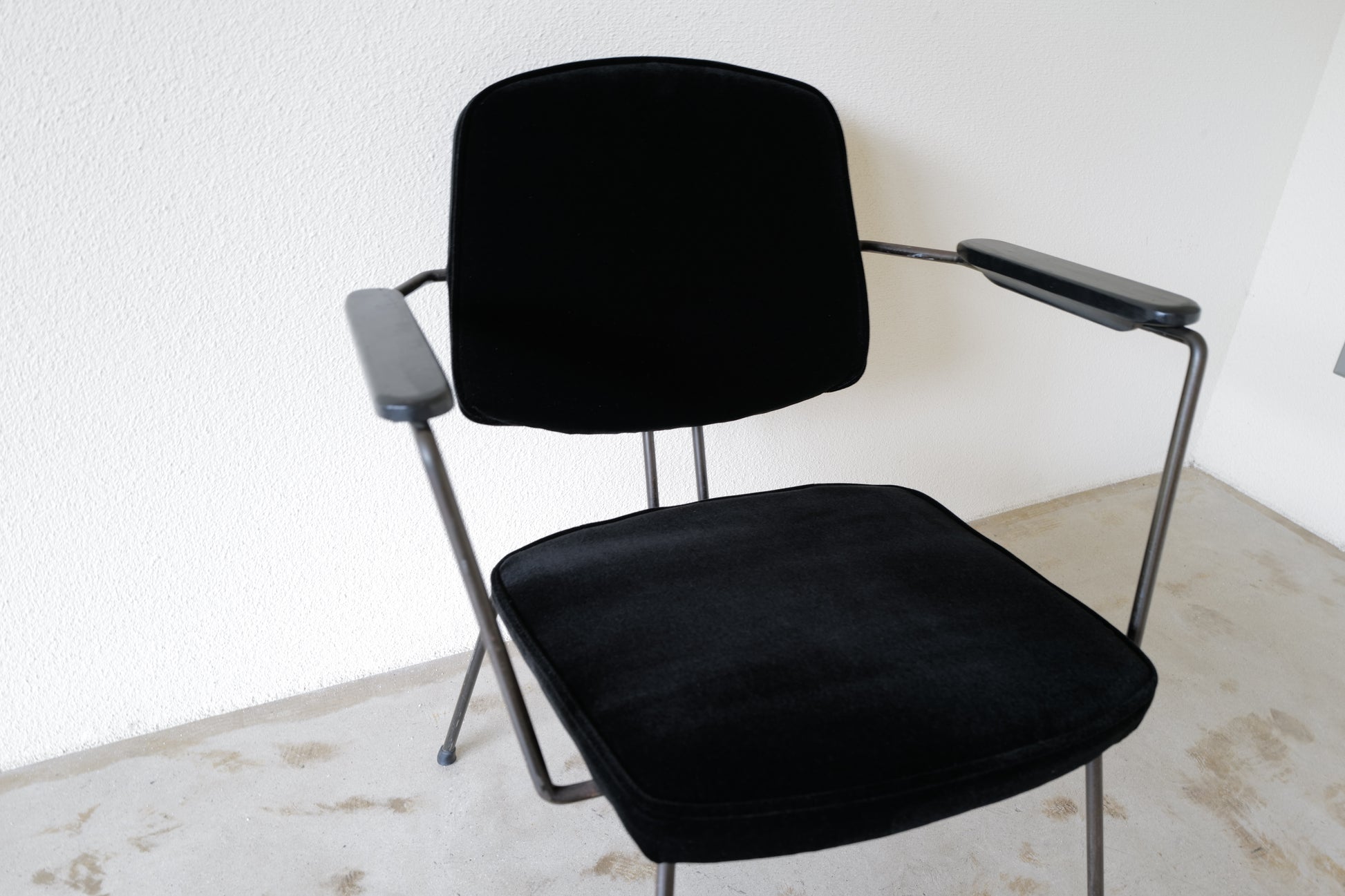 ベークライトの肘掛、ソリッドスチールのロッドフレームで構築された見た目とはうらはらに非常に重量感と安定感を備えたシンプルで美しい椅子です。