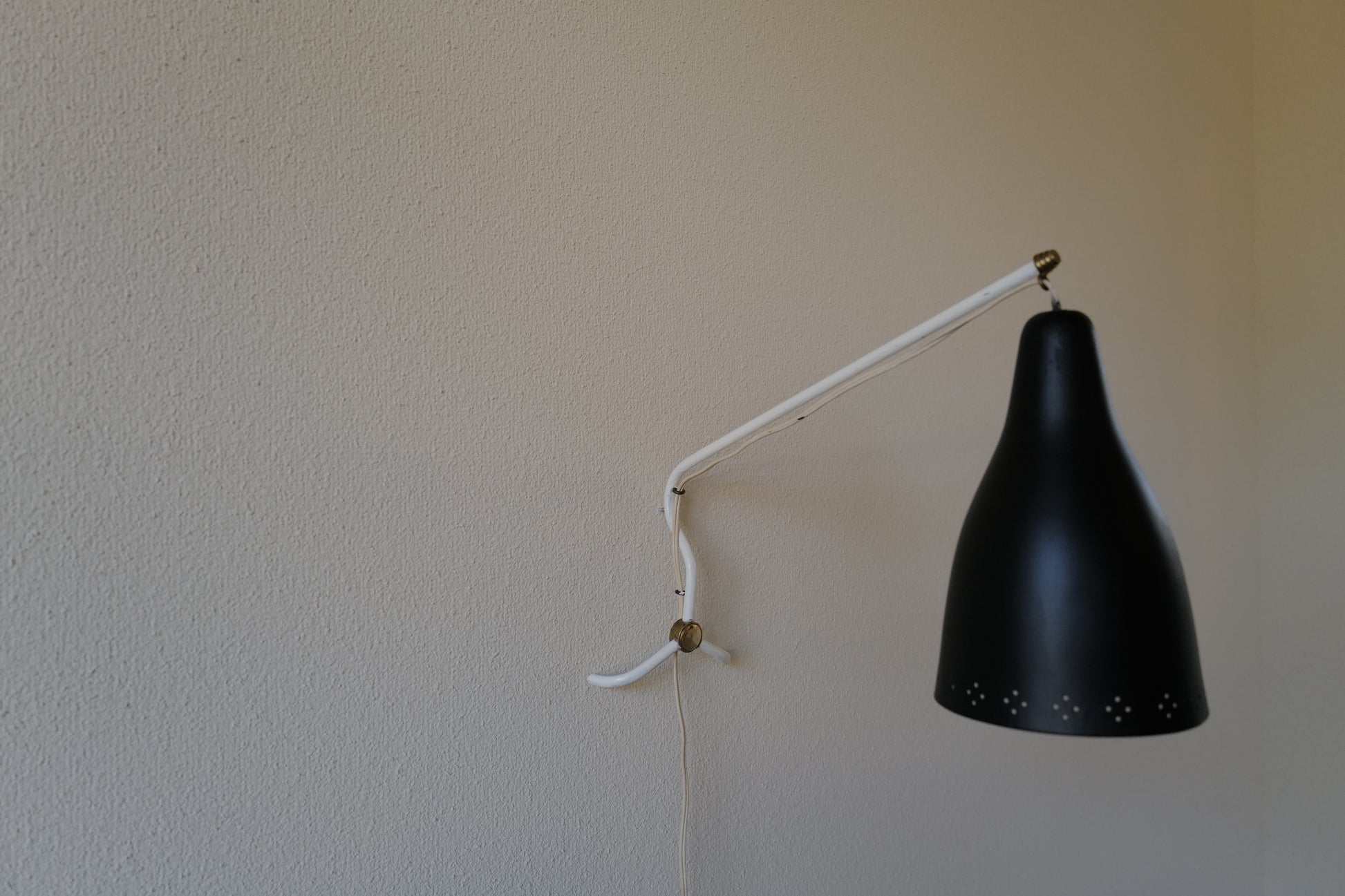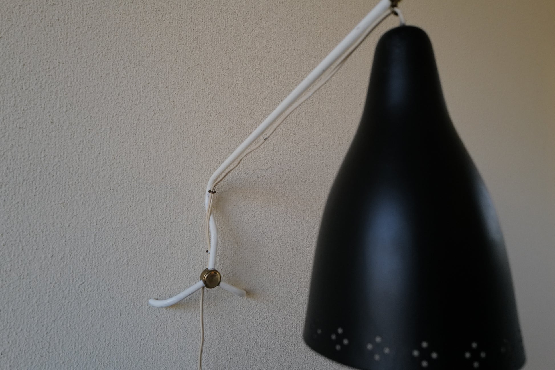 こちらのウォールランプは、1950年代のオランダのハゴートの作品に見られるようデザインでコードの位置を調整すことでシェードの高さを変える事が可能です。ダッチデザイのウォールランプの中でも非常に珍しいものになります。